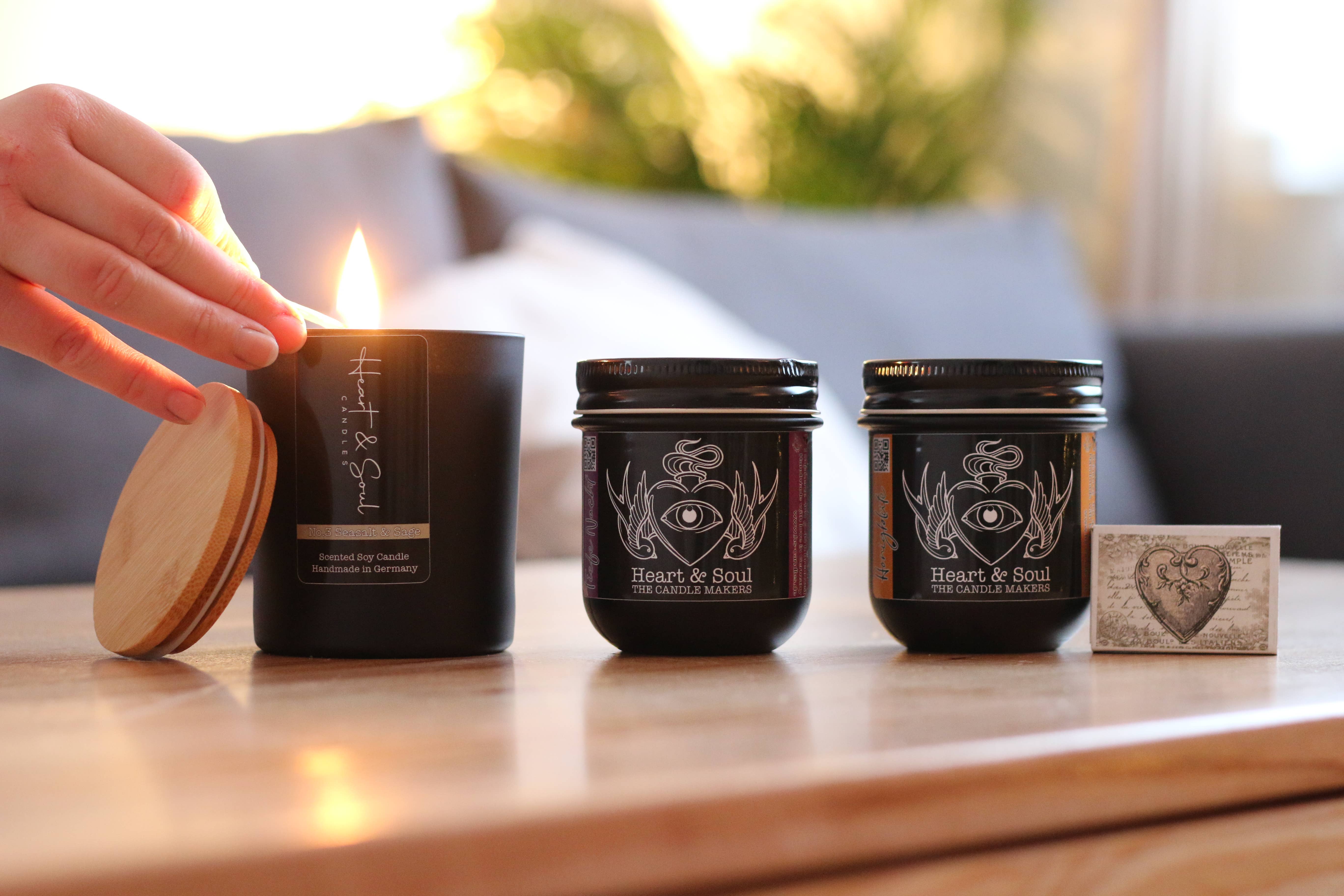 Somos un pequeño fabricante de velas ubicado en el centro de Alemania. Nos encantan las velas perfumadas y quemamos mucho en diferentes rangos de precios y variaciones a lo largo de los años. Ahora ha llegado el momento de que podamos producir pequeños lotes nosotros mismos y ofrecerlos a la venta. Creemos firmemente que nosotros, como seres humanos, debemos dejar todo en un estado mejor de lo que lo encontramos originalmente. Somos un pequeño fabricante de velas aromáticas de Rabenau (Hesse, Alemania). Nos encantan las velas aromáticas porque hacen de una casa un hogar y también han quemado algunas en todos los rangos de precios y variaciones de fragancias. Ahora finalmente ha llegado el momento de producir nuestros propios lotes pequeños de velas perfumadas y las ofrecemos a la venta. En Heart & Soul Candles, creemos que, si es posible, es mejor dejar todo atrás de lo que lo encontraste. Esto es especialmente cierto para nuestro planeta.