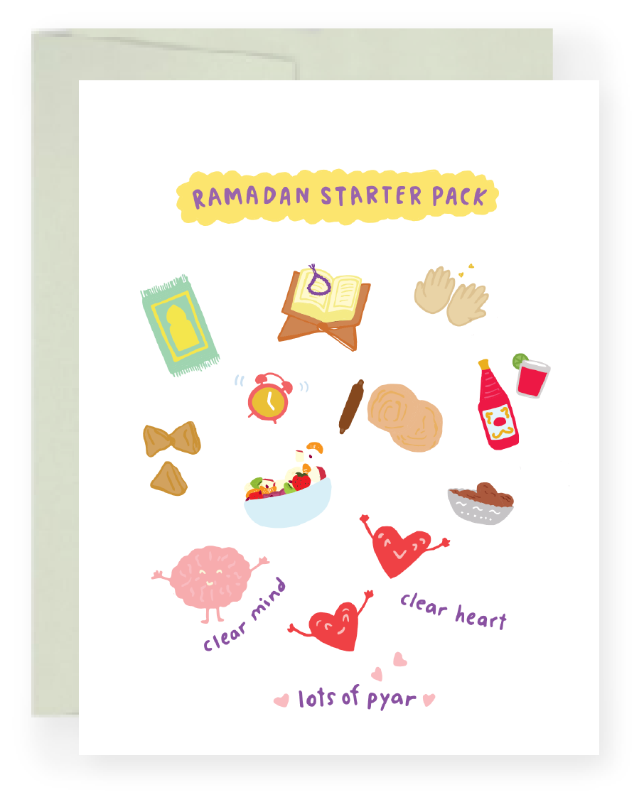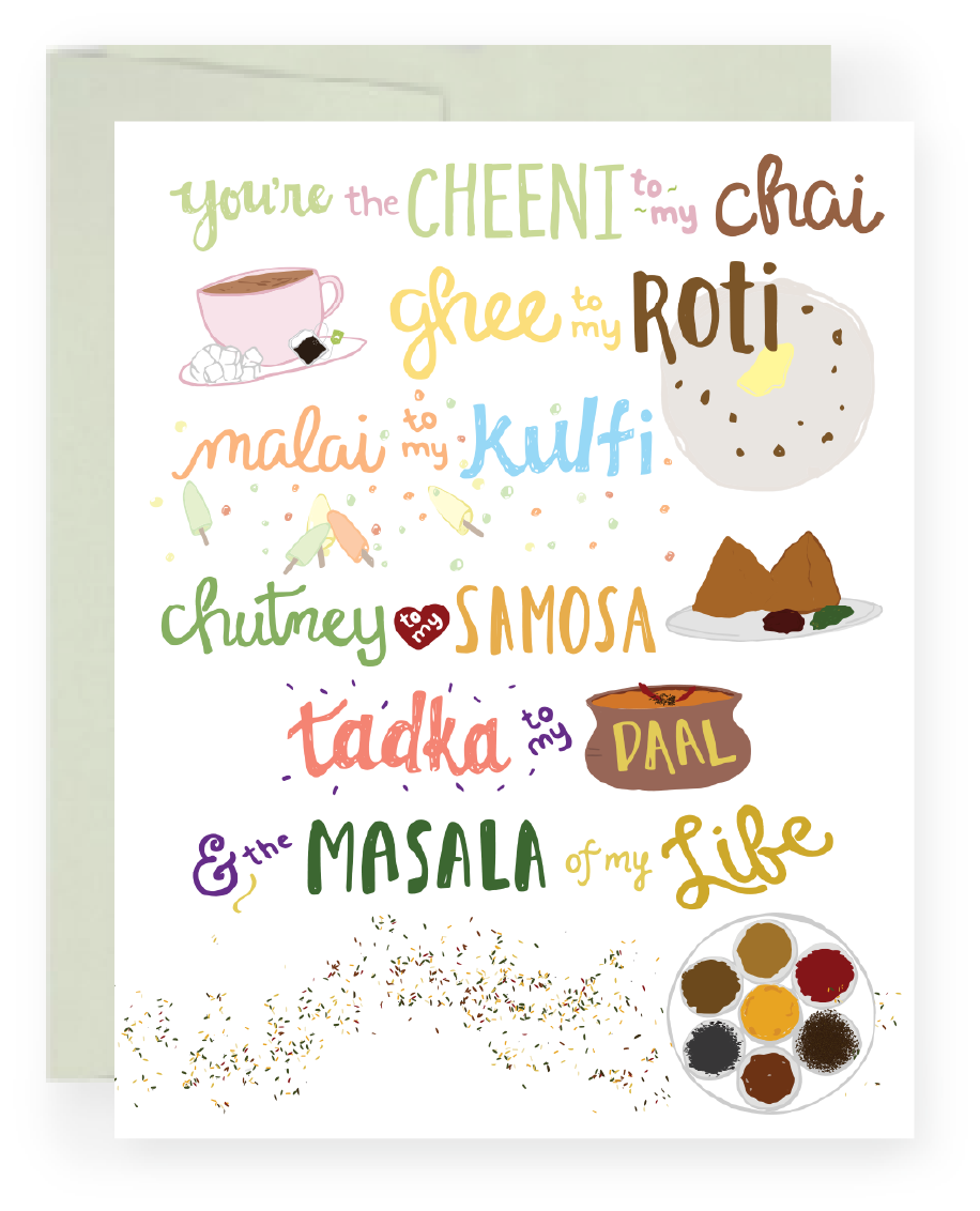Pyarful es una celebración de la cultura del sur de Asia, la identidad y todo lo relacionado con pyar. Nuestras tarjetas de felicitación, regalos y artículos de uso diario inspirados en el sur de Asia muestran las tradiciones, los recuerdos de la infancia, la comida (¡mucha comida!) , y todas las pequeñas cosas que nos hacen ser quienes somos. Cada uno de nuestros productos se elabora cuidadosamente con diseños dibujados a mano y se crean en asociación con proveedores locales, además de apoyar a organizaciones sin fines de lucro de la patria. Nos esforzamos por crear productos que brinden alegría al día a día, recordándonos a nosotros y a nuestra comunidad que cada día es una celebración de pyar.