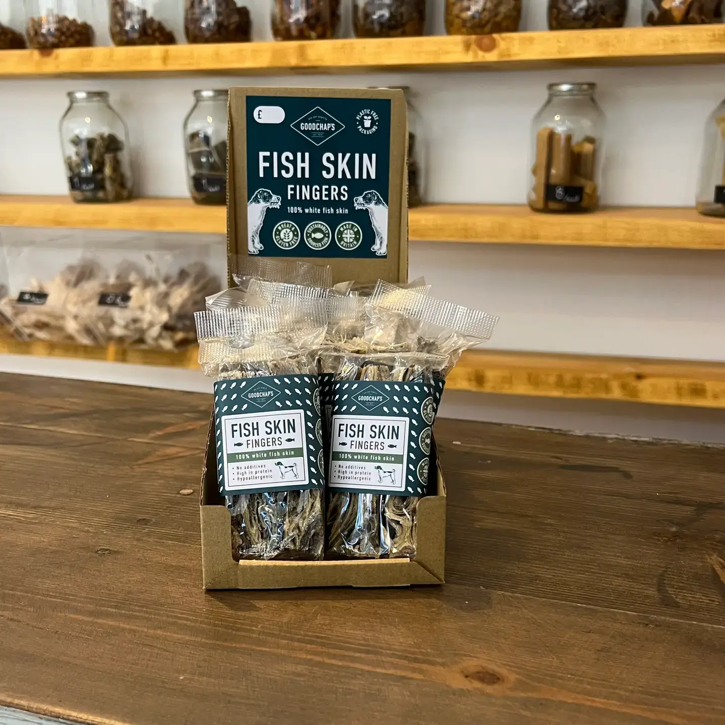 En Goodchap's, somos bastante fanáticos de dos cosas: las mascotas y el planeta. Con sede en la encantadora ciudad de Bristol, somos una marca británica galardonada y libre de plástico, en una misión para consentir a las mascotas en todas partes con nuestros excelentes premios y juguetes, todo mientras mantenemos a la Madre Tierra muy contenta. Creemos que los productos para mascotas deben ser naturales, saludables y absolutamente maravillosos; cualquier cosa menos simplemente no servirá. Es por eso que nuestros premios están hechos con pescado o carne de origen responsable, un humilde poco de patata y absolutamente nada más raro. Son nutritivos, deliciosos y tan buenos que hacen mover la cola. Para las travesuras de juego, nuestros juguetes de cuerda hechos a mano están elaborados con algodón 100% natural, sin tintes, sin blanqueadores, solo pura diversión honesta para patas y mandíbulas por igual. Y porque preferimos no dejar un rastro de plástico a nuestro paso, todo nuestro embalaje es compostable, reciclable y libre de plástico. Así que, ya sea que tus clientes estén buscando consentir a un perro mimado o premiar a un gato exigente, puedes estar seguro de que con Goodchap's, estás eligiendo los mejores productos británicos, aptos para las mascotas más nobles, y perfectamente adecuados para el planeta también.