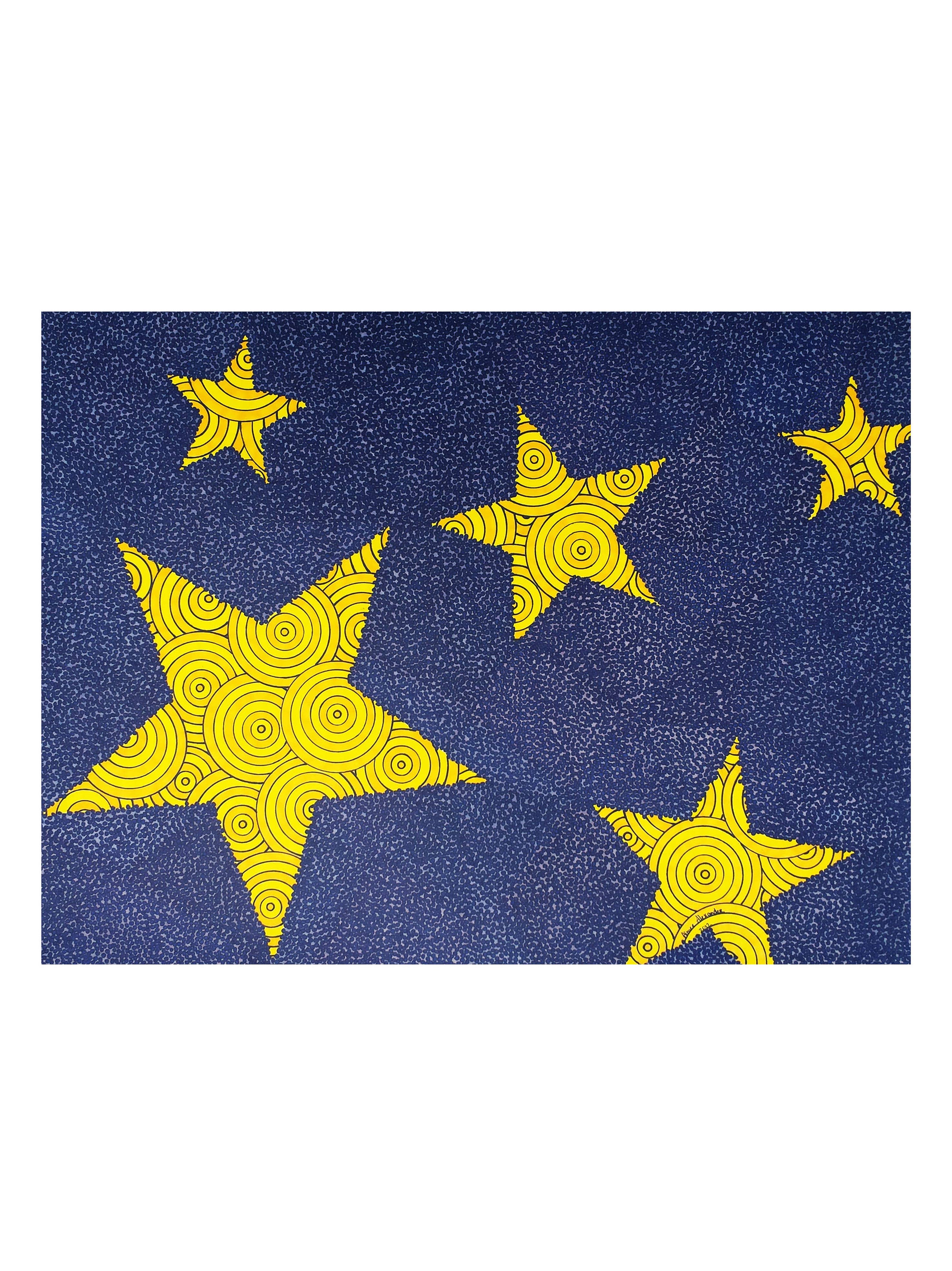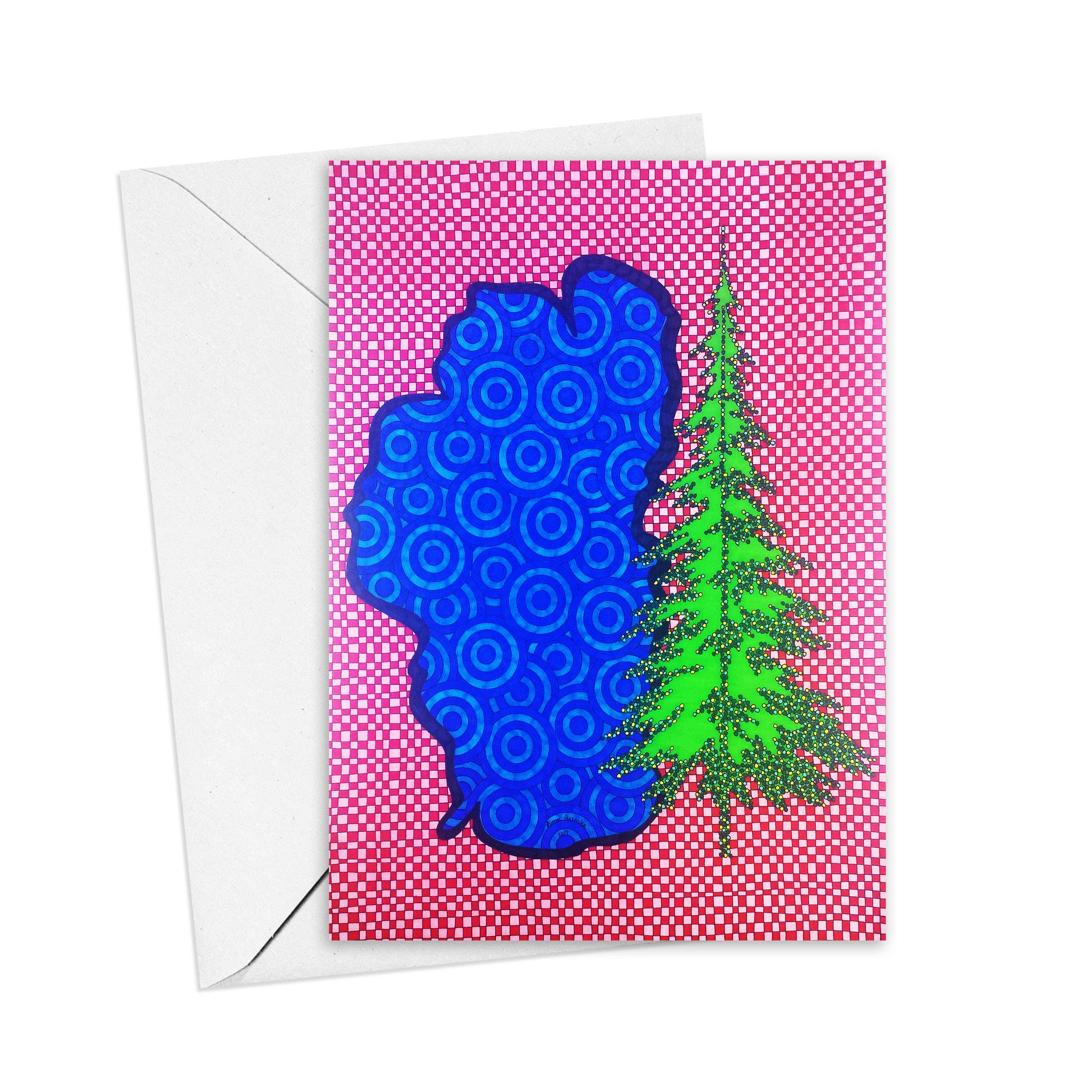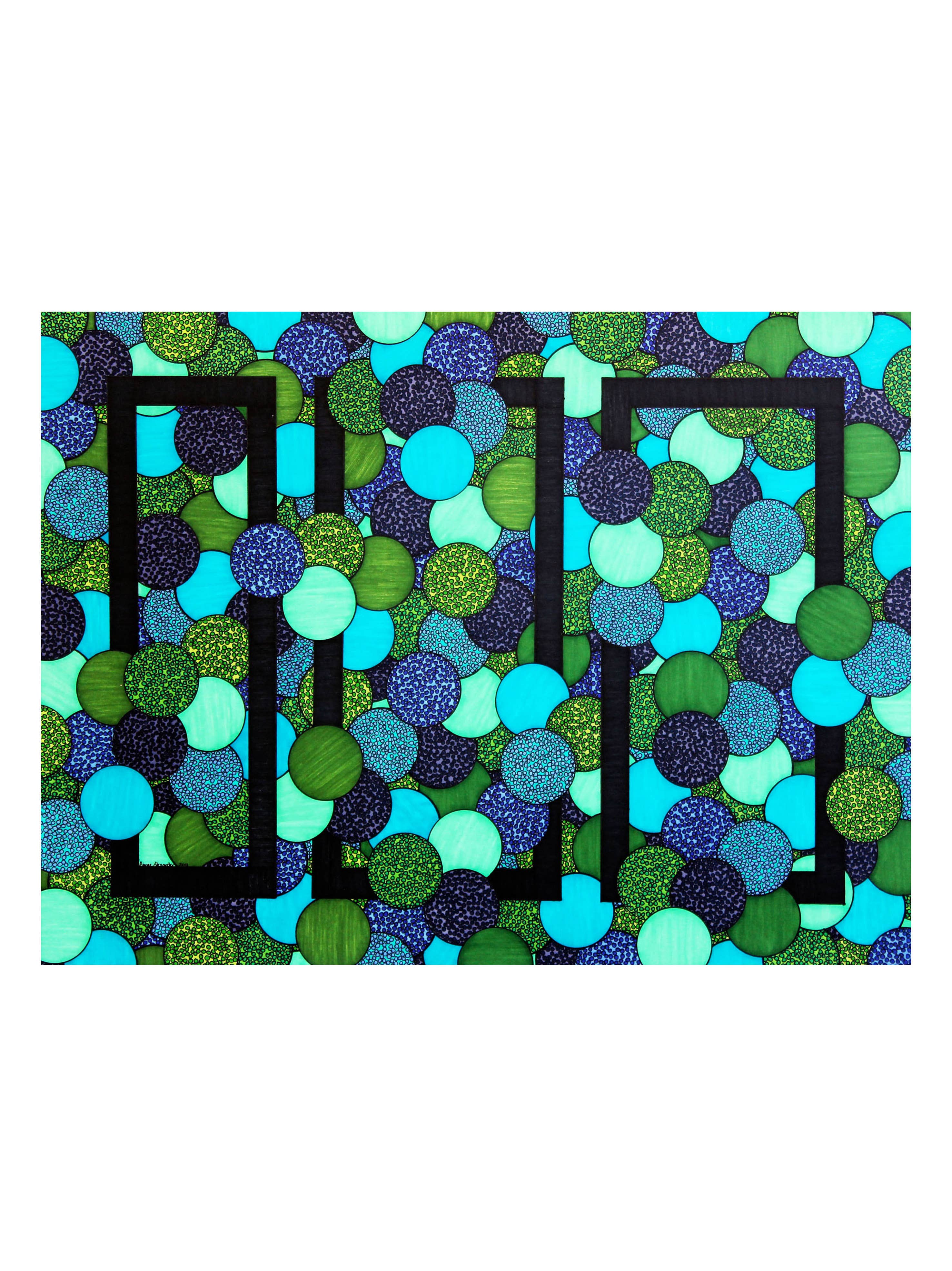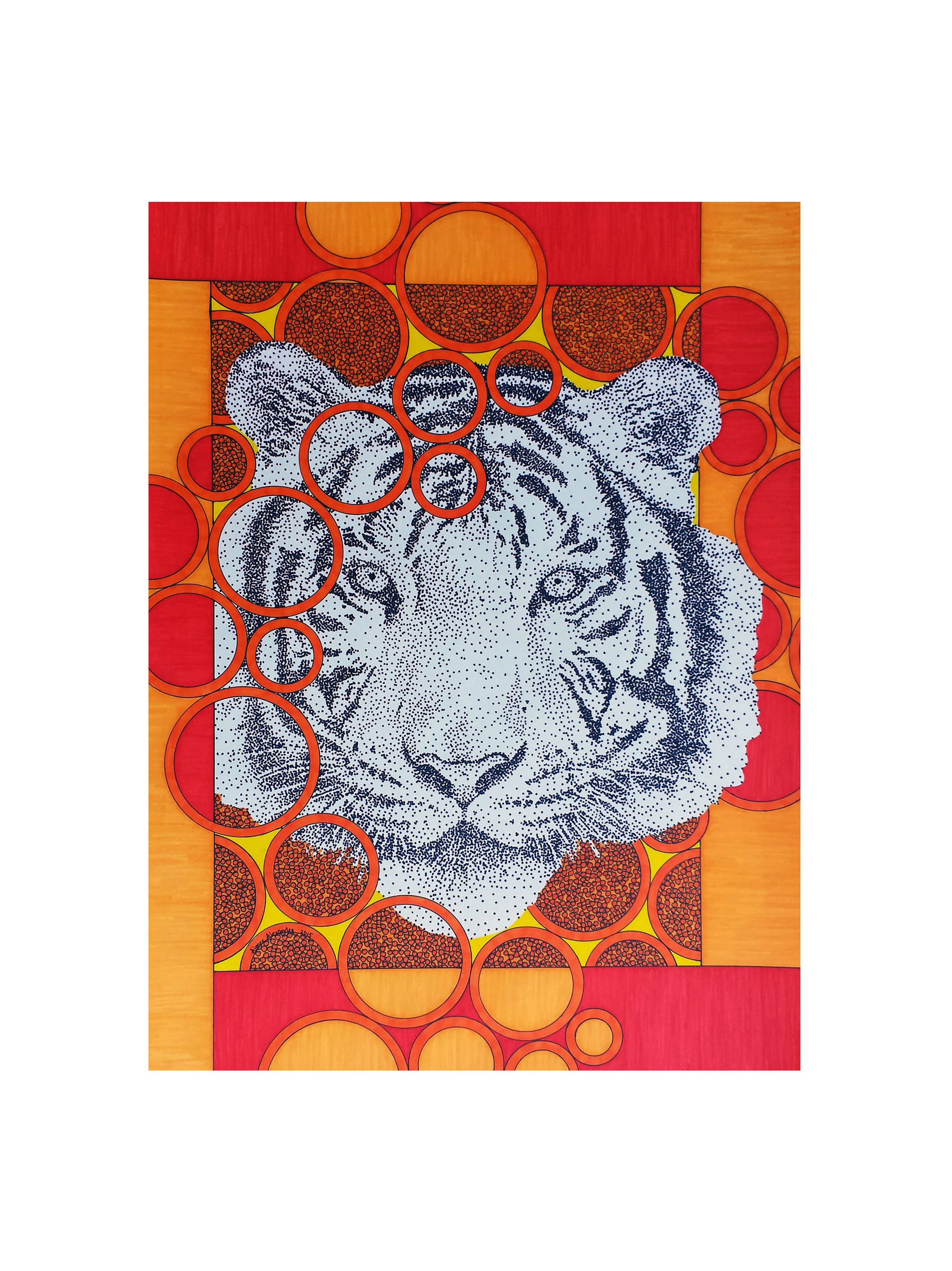 A los 3 meses de edad Aimee trazó el patrón de la camisa de su abuela con su diminuto dedo. A los 12 años descubrió el mágico mundo del arte y el diseño en un viaje a San Francisco para ver a un amigo graduarse de la escuela de diseño. Fue entonces cuando decidió que se iba a mudar al Área de la Bahía de San Francisco y convertirse en artista cuando creciera. Después de graduarse Sacramento State con una licenciatura en Arte de Estudio, empacó sus maletas y se mudó a la bahía. Todos los diseños de Aimee se crean con una regla, una plantilla de círculo, una regla y un número insano de puntos. Cada pieza es una explosión de color, felicidad y maravilla.