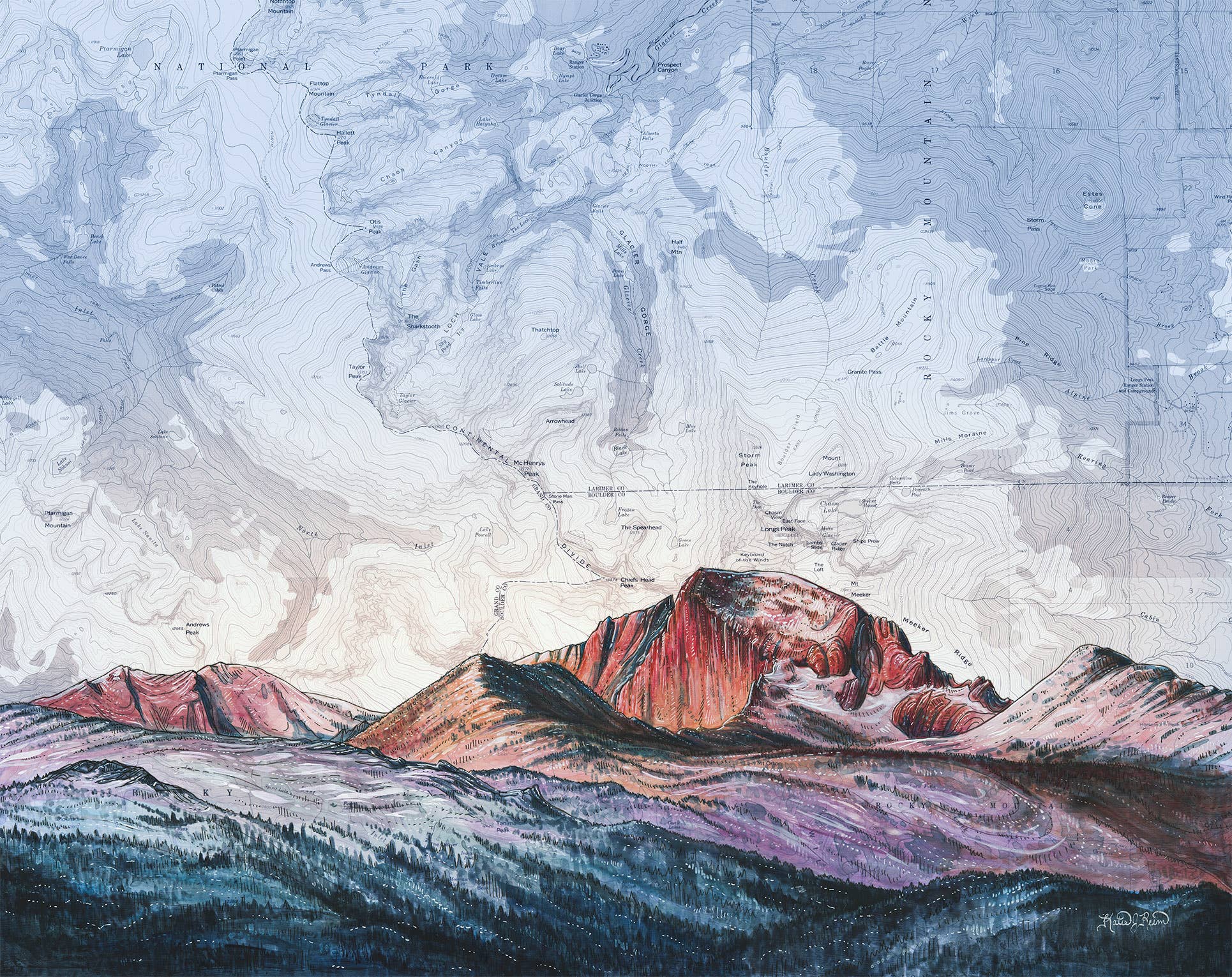 Con el objetivo de captar la conexión que las personas sienten con sus lugares salvajes favoritos, la artista de Portland Katie Reim ofrece sus pinturas como impresiones, tarjetas y artículos de calidad para actividades al aire libre. Fascinada por las líneas de los mapas topográficos, Katie las combina con las inspiraciones y aventuras que busca en la naturaleza.