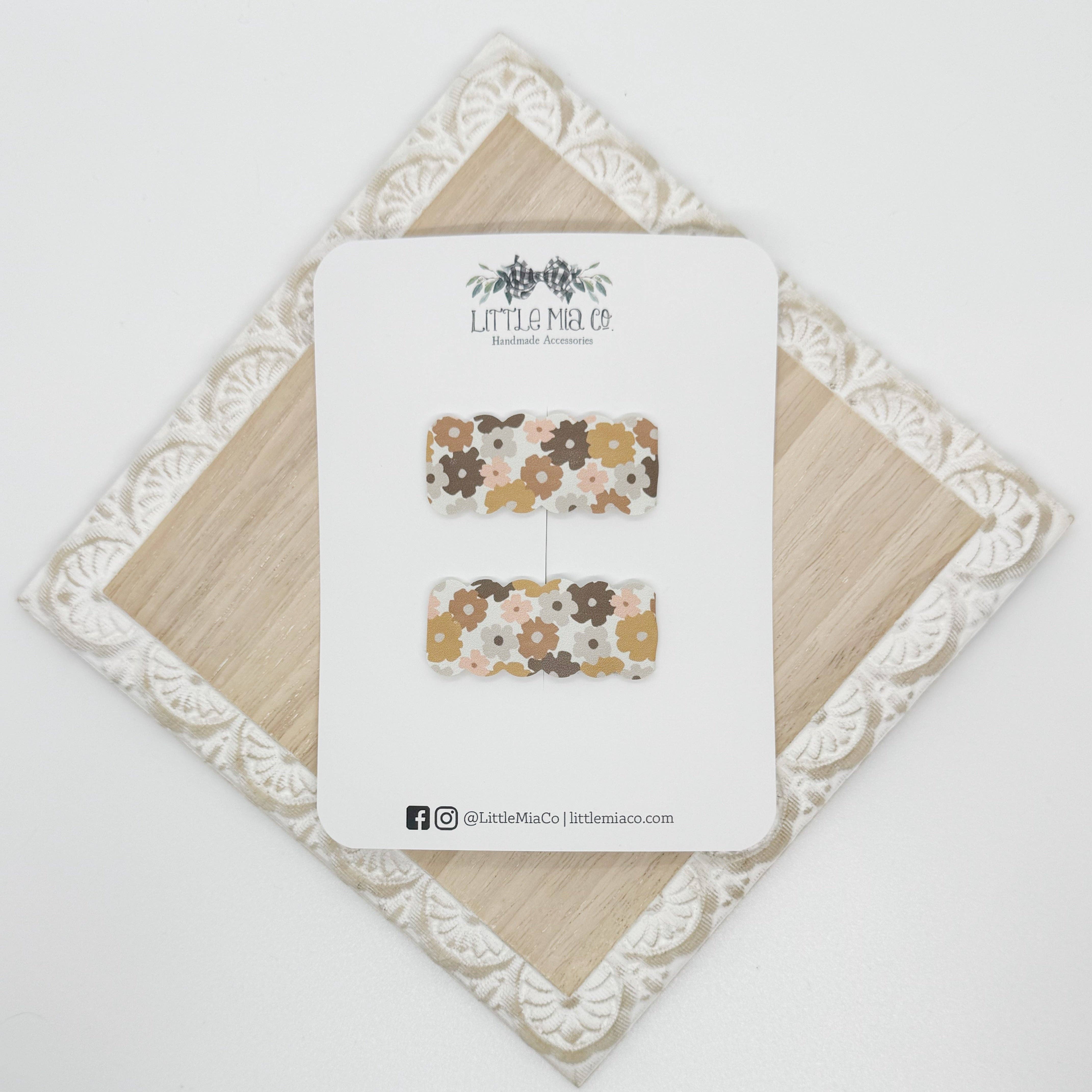 Somos una pequeña tienda dirigida por mamás que crea lazos y accesorios para recién nacidos y adultos. Todos nuestros lazos y accesorios están hechos a mano con pieles sintéticas. Ofrecemos una variedad de tamaños, estilos, colores y texturas. Después de tener dos niños, tuvimos la suerte de tener una niña y supe que los accesorios serían lo suyo y Little Mia Co. se hizo realidad.
