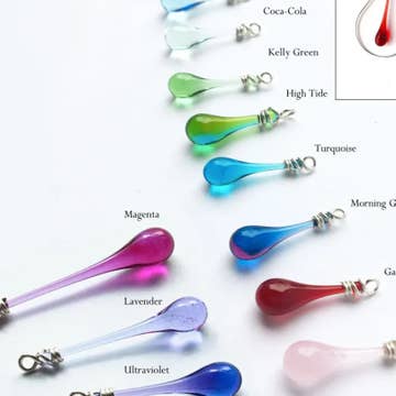 Las joyas ecológicas de Sundrop Jewelry van desde delicados pendientes minimalistas hasta joyas artesanales grandes y atrevidas, pero siempre conserva ese hilo vibrante de elegancia casual con un toque ecológico. Utilizando una lupa gigante de tres pies para enfocar la luz del sol, botellas recicladas y vidrieras se funden en gotas que fluyen, engarzadas en plata de ley reciclada de Argentium. ¡Almacene sus estantes con sol de California durante todo el año!
