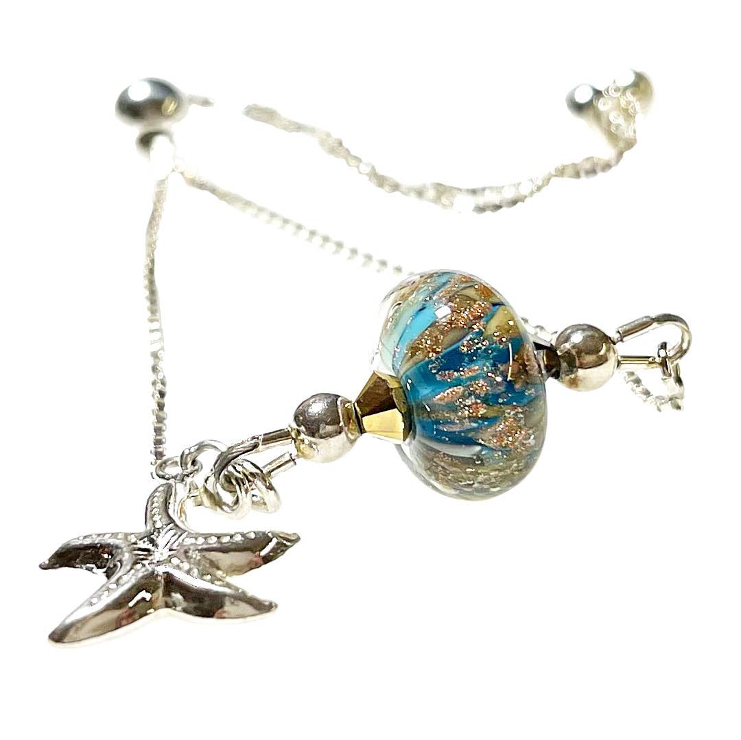 Beach Memories se dedica a producir su gama de productos de vidrio en los EE. UU. Empleando a artistas estadounidenses en vidrio, creamos minuciosamente cada pieza de nuestro trabajo con los más altos estándares. El servicio al cliente y la calidad son nuestro estándar de oro. Nuestras joyas con cuentas de vidrio son nuestro pilar principal, sin embargo, nuestra incursión en todo el arte en vidrio nos ha convertido en una fuerza notable en el mundo del arte. Todas las joyas están confeccionadas en plata de ley y cuentan con cristales de Swarovski y perlas de agua dulce. Las perlas están hechas de cristal de Murano y todos nuestros demás artículos están hechos con cristal Bullseye.