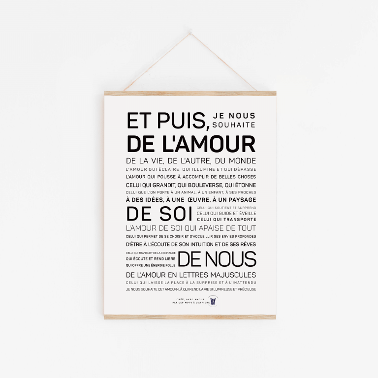 En diciembre de 2016, puse a la venta el póster «Live». Lo puse a la venta sin pensarlo mucho. Como siempre, escuché mi intuición. La escribí en México unas semanas antes, durante un período un tanto complicado, como promesa que me hacía a mí misma. Lo ofrecí a la venta antes de pedir la versión impresa, diciéndome que si nadie lo pedía, simplemente tendría que no hacer el pedido. Finalmente, y unos días después, imprimí 250 ejemplares, temblando mucho, sí. Vendí todas las copias en unos meses. Después de eso, me pregunté mucho qué quería hacer, qué me hacía realmente feliz y si quería seguir promocionando este póster o incluso crear nuevos pósters. Me di unos meses para pensarlo. Hoy sé que quiero mostrar las palabras: qué escribir, darles formato y decirme que mis palabras cobrarán vida y acompañarán los sueños de otras personas y quizás también las harán un poco felices: eso, a su vez, me haría muy feliz. Tenga en cuenta que los pósteres se venden sin suspensión. Se pueden pedir por separado.