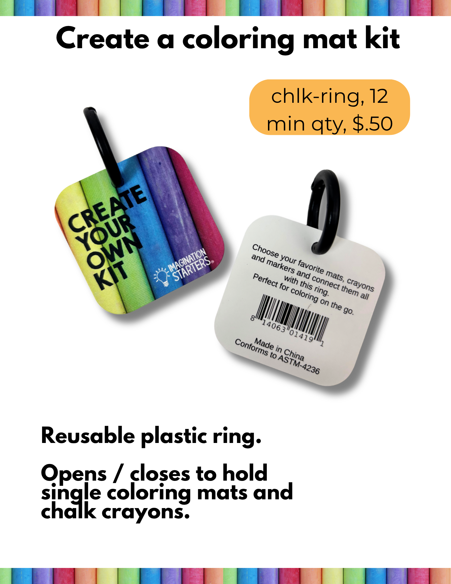 Encuéntranos: Americas Mart Atlanta - Nuevo showroom de Annabelle Noel Designs -B2 #1229 Cómo comenzó: Érase una vez dos mamás que hacían manteles individuales de pizarra para niños. Ambas pensaban que sus productos no eran del todo correctos. En lugar de competir entre ellas, colaboraron y crearon el mejor mantel individual de pizarra de todos los tiempos. Desde ese momento, nació Imagination Starters. Nuestros manteles individuales más vendidos se venden en más de 700 tiendas en todo el país y han sido presentados en el menú infantil de un popular restaurante de pollo. Cuando compras de nosotros, estás comprando directamente de una de esas mamás inventoras originales (más otras 4 mamás que ayudan a dirigir el espectáculo). Tenemos 15 hijos entre todas y de alguna manera aún dirigimos esta empresa. Gracias por comprar de nosotros. Marca una gran diferencia en nuestro día. ¡Experimenta el PODER de Colorear! Por favor, ten en cuenta: si recibes un artículo dañado, presenta una reclamación con Faire. No enviamos reemplazos valorados en menos de $20 al por mayor debido a los costos de envío, pero reembolsaremos tu factura por cualquier daño. Gracias -Anne, Leah, Kelly, Allison, Shannan y Monica