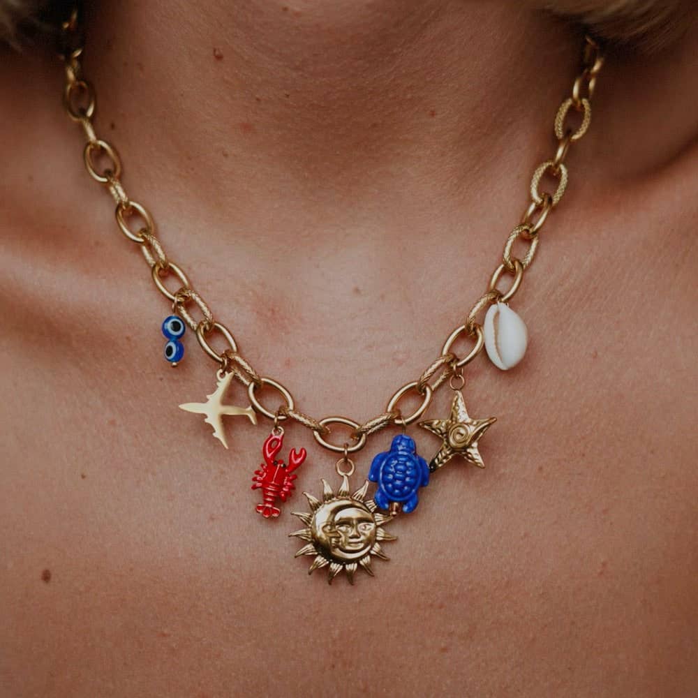 Creada en 2020 después de un viaje a Australia, las creadoras: Noémie y Fantine quisieron imaginar joyas tan resistentes como sus aventuras, hechas para vivir, viajar y durar (incluso después del mar, la crema solar y las maletas demasiado llenas ✈️). De sus viajes nacieron colecciones inspiradas en los cuatro rincones del mundo... hasta el momento de inspiración 💡: transformar sus charms "dormidos" en joyas personalizables, para que cada uno cuente su propia historia. Siempre en busca de inspiración, continúan buscando su inspiración en todo el mundo, para creaciones únicas y llenas de buenas vibras. 💭 En febrero pasado, durante un viaje a Nueva York, tuvieron una revelación: sus collares estaban ocultos por sus pañuelos, el drama. ¿Resultado? Una nueva idea un poco loca: pañuelos adornados con charms. Y qué más simbólico que crearlos a partir de bandanas Made in USA (100 % algodón), un guiño a la ciudad donde todo comenzó.