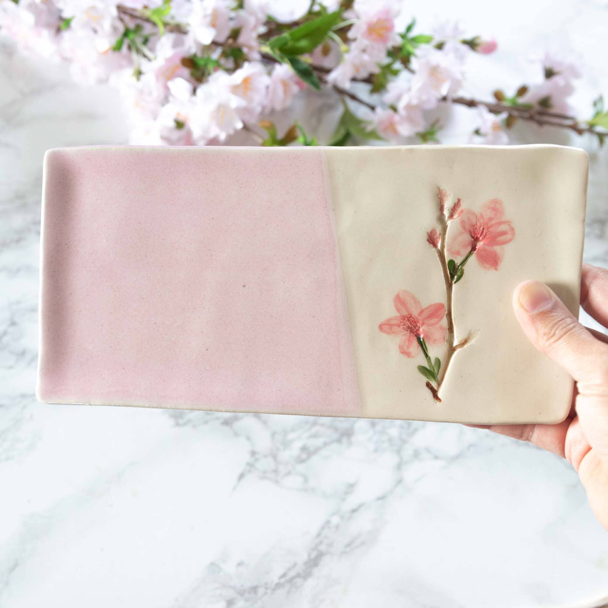 Presionar las flores en arcilla me ayuda a entender los cambios de estación a mi alrededor. Trabajar con flores y plantas de temporada me ayuda a adaptarme a mi vida en el noreste de Estados Unidos. Mi trabajo consiste en prensar hojas y flores reales en arcilla. Una vez que se queman, pinto cada fósil con colores y esmaltes para devolverlos a la vida. Muchas veces incorporo juegos de palabras e ilustraciones en mi trabajo que representan mi amor por el lenguaje y/o los lugares en los que he estado. Cada pieza aspira a darle alegría a la vida de alguien, similar a la que se paseaba por un sendero de montaña en una mañana de primavera y de vez en cuando se asomaba a un claro para ver una flor especial que probablemente estaría en un jardín bien cuidado.:) Vamos... recorre el sendero con mi trabajo. Permítete detenerte y disfrutar de las flores silvestres, el sonido de las hojas susurrantes y sonríe por las cosas que normalmente pasarías por alto.