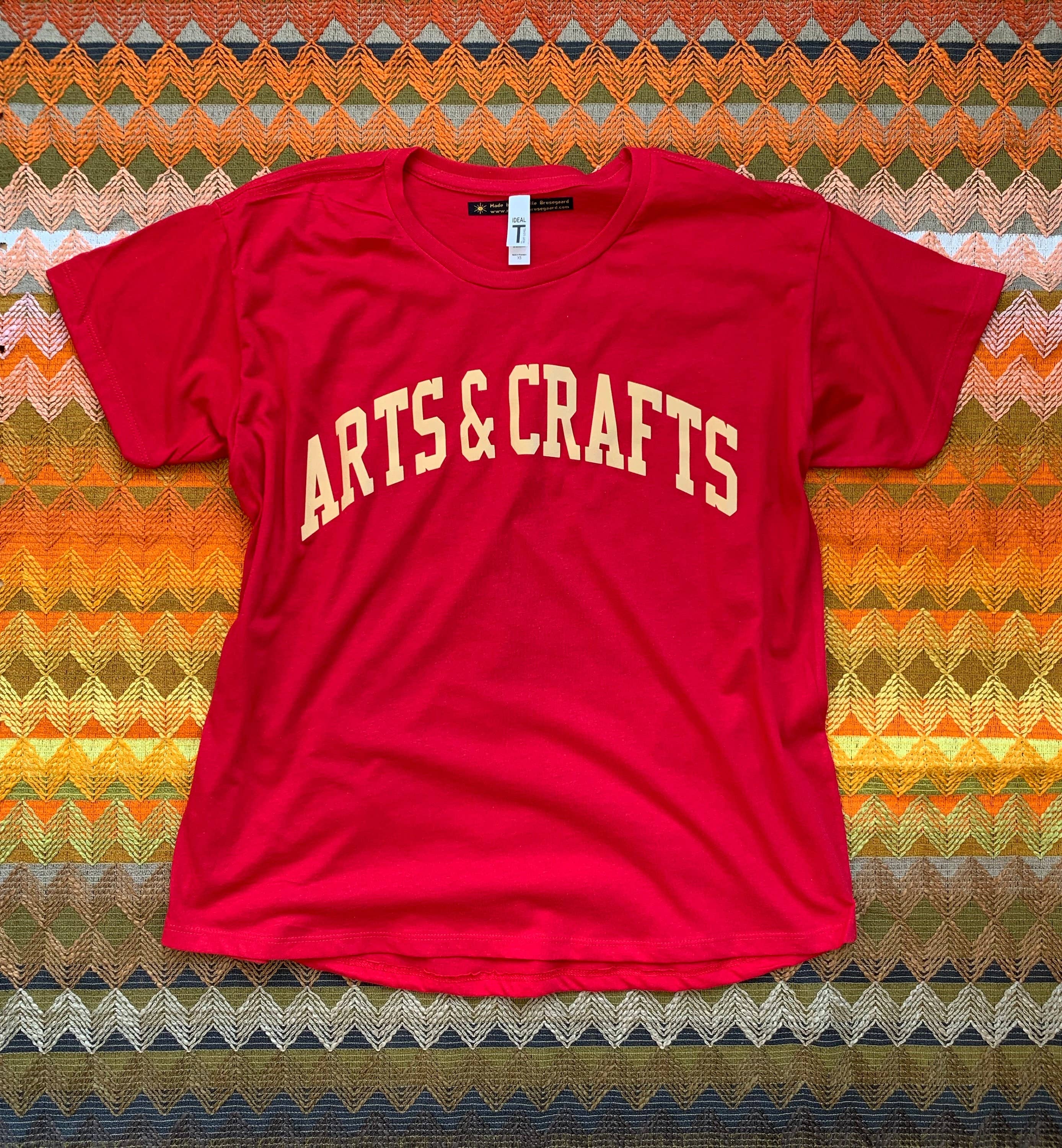 Michelle Brusegaard es una artista de medios mixtos que vive y trabaja en el noreste de Minneapolis. Recibió su licenciatura en pintura y fotografía en la Universidad de Dakota del Norte en 2005. Después de mudarse a Minneapolis, comenzó a vender sus pinturas en ferias y galerías, enseñándose a sí misma a la serigrafía en el lateral. En 2008, dejó su trabajo diario vendiendo suministros de arte para lanzar su propio negocio de impresión y diseño. Hoy trabaja en el edificio Northrup King, donde pinta y produce una línea de ropa serigrafiada, textiles para el hogar, tarjetas de felicitación y más. Su trabajo se basa en gran medida en su amor por los adornos y los patrones y en su irreverente sentido del humor.