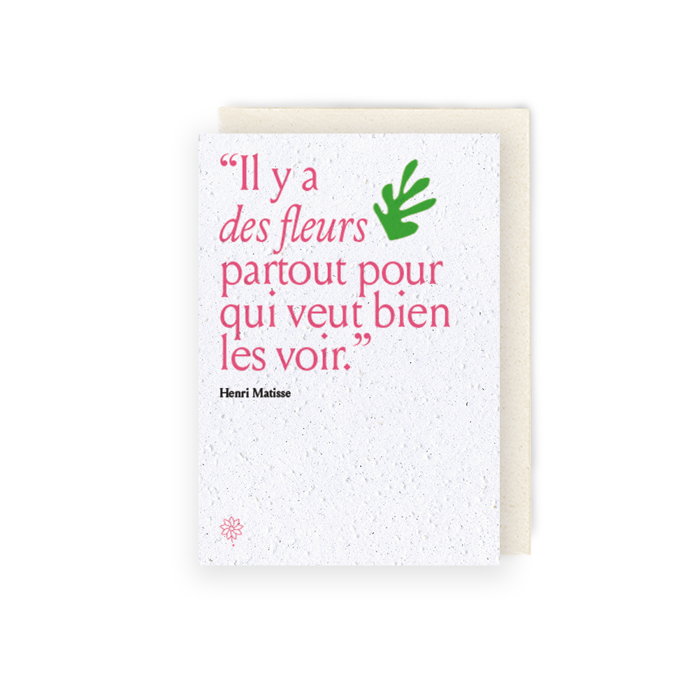 Papierfleur es un taller parisino especializado en papel para plantar. Reinventamos la papelería de una manera contemporánea y respetuosa con el medio ambiente con creaciones de alta gama que florecen para transformar cada palabra en una memoria viva y poética. ¿Conoces el papel con semillas? Papel reciclado al que se han incorporado semillas de flores o hierbas durante su fabricación. ¡No produce residuos, pero se puede plantar, germinar y florecer! Nuestro papel de plantación se imprime en nuestro taller parisino con tintas ecológicas y métodos que respetan las semillas.