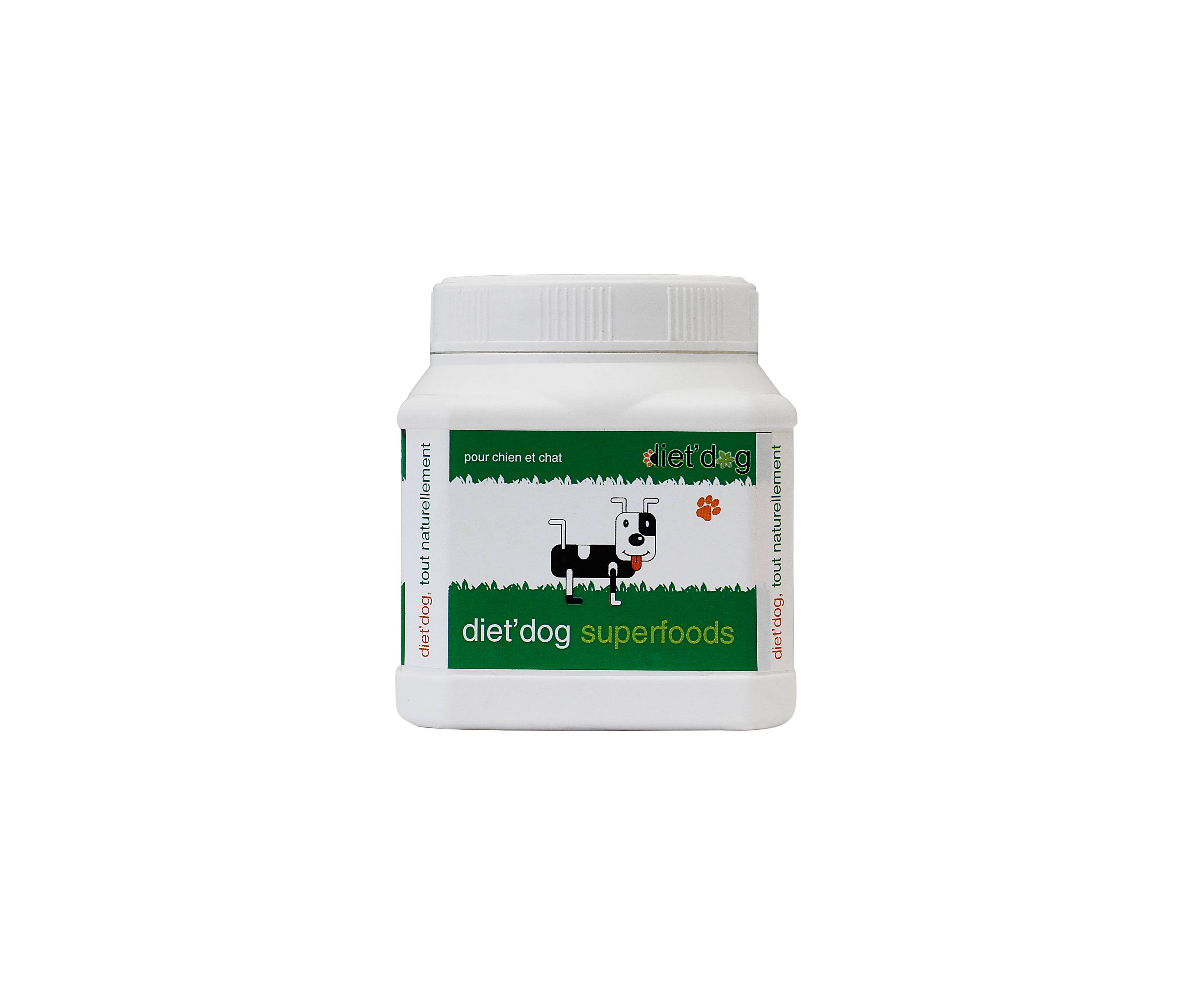 diet' dog se dedica a elaborar sabrosos suplementos dietéticos naturales y productos para el cuidado de la piel y las patas para perros y gatos para mantener y mejorar la salud y el bienestar de su mejor amigo y ayudarlo a brillar de salud. Nuestros suplementos naturales están hechos con hierbas de la más alta calidad, superalimentos de grado humano y alimentos integrales y están llenos de nutrientes esenciales, vitaminas, minerales, ácidos grasos, antioxidantes y enzimas para mejorar el impacto de los alimentos en su mascota y ayudarla a mantenerse en óptimas condiciones de la parte superior a la cola. Cada fórmula única se ha preparado cuidadosamente de acuerdo con los principios de fitonutrición y los requisitos nutricionales de la mascota para ayudar con las condiciones cotidianas de su mascota, así como con problemas más graves como artritis, alergia, mala digestión, articulaciones dañadas, inmunidad. Los perros y los gatos necesitan una dieta bien equilibrada para mantenerse sanos, vibrantes y resistentes a las enfermedades.