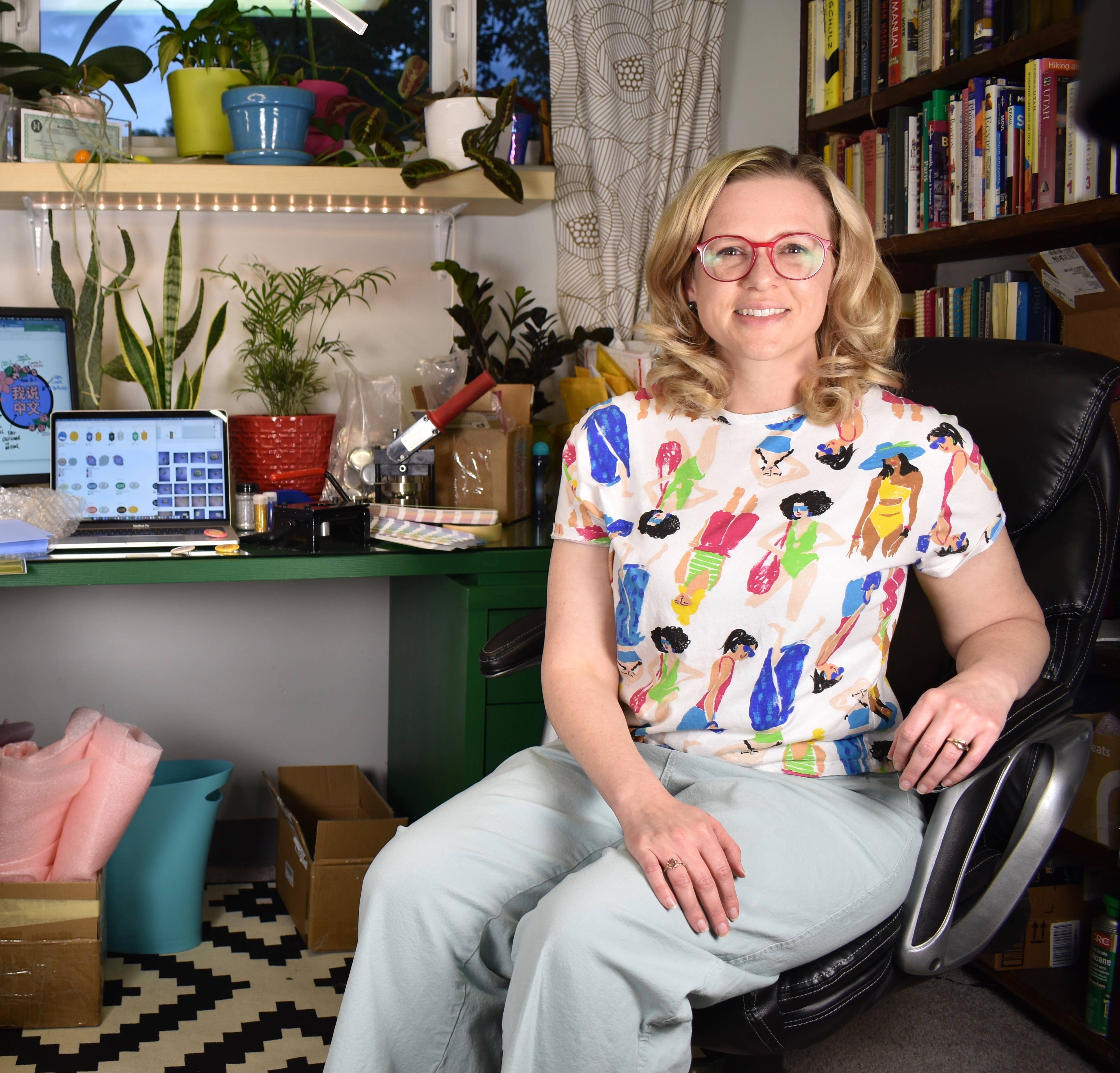 Hola, soy Carrie, y me encantan los idiomas y los lugares donde se hablan. Comencé a diseñar cosas para mi aula mientras enseñaba francés y español a estudiantes de secundaria. Esto se convirtió en mi pequeño negocio, Blue and Gold Language. Aunque ya no enseño, todavía me encanta diseñar regalos y otros artículos relacionados con los idiomas y los lugares. Personalmente diseño cada artículo que vendo, y luego trabajo con socios de producción en Estados Unidos y China para que los produzcan, tras lo cual inspecciono cada artículo para asegurarme de su calidad. Prioritizo crear artículos pequeños y usar el mínimo embalaje posible hecho de materiales reciclables, e incorporar materiales reutilizados durante el proceso de envío. Hoy en día, puede ser difícil identificar productos que realmente sean originales y creados a pequeña escala. Puedo asegurarles que eso es lo que ofrezco. Por favor, descubran más sobre mí y mi negocio en las plataformas de redes sociales bajo el nombre de mi negocio, BlueAndGoldLanguage.