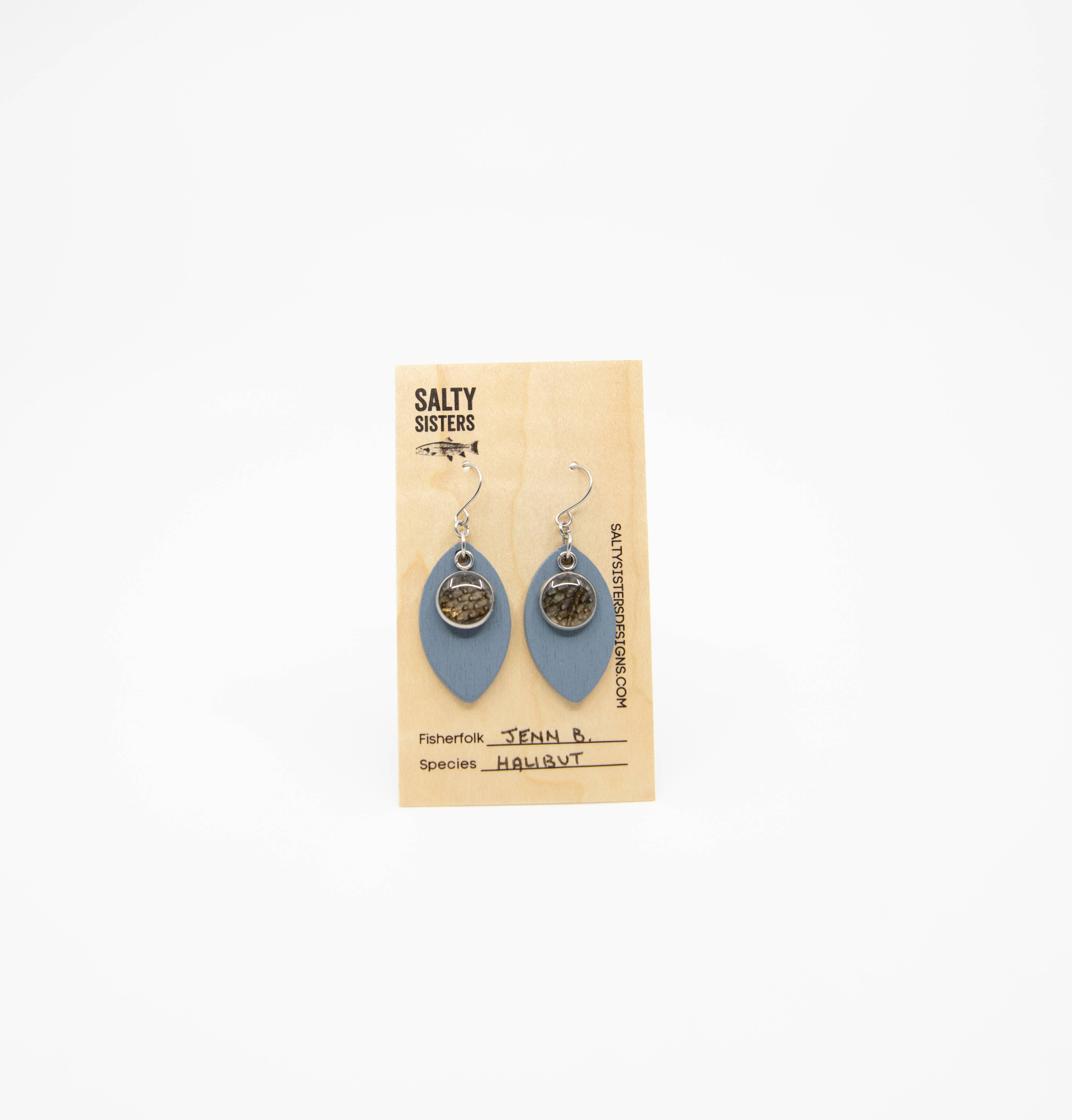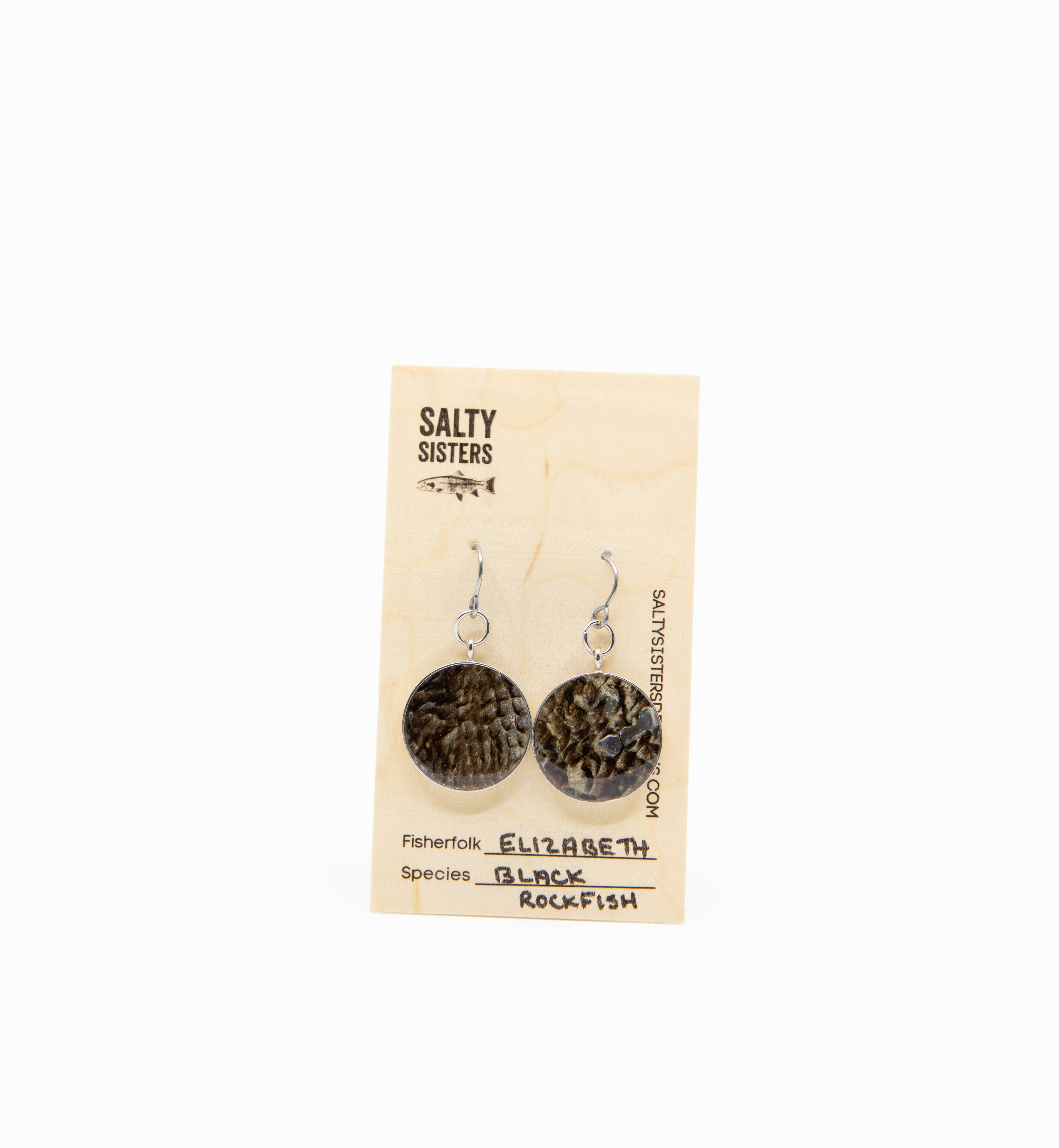 ¿Qué es Salty Sisters Designs? En primer lugar, capturamos peces de manera responsable. (O lo hacen nuestros amigos). A continuación, se limpia y cura la piel del pescado. Por último, hacemos lo que siempre hemos hecho: hacer joyas. Cada pieza única de joyería sostenible viene en una cartulina con las especies de peces y los pescadores contribuyentes responsables en la lista. Búscanos en Instagram @saltysistersdesigns o visita nuestro sitio web para obtener más información sobre nosotros, saltysistersdesigns.com. ¡Salud!