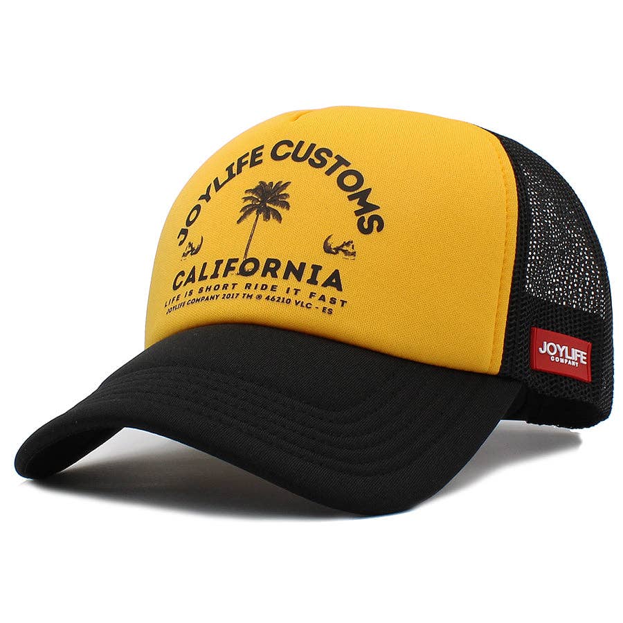 Atardece en la playa de Venice Beach, California. El sol se pone sobre las palmeras en el horizonte mientras el cielo se torna rojizo. Un grupo de jóvenes camina por el paseo. El pelo rubio quemado por la sal y el sol, los pies llenos de arena. Se dirigen con sus tablas de surf hacia una furgoneta mientras disfrutan de la sensación única de tomar un zumo de frutas fresco después de un largo día de sol. Una sonrisa en sus labios. Sus carcajadas resuenan… ¡Bienvenidos a Joylife! Joylife Company © American inspired caps