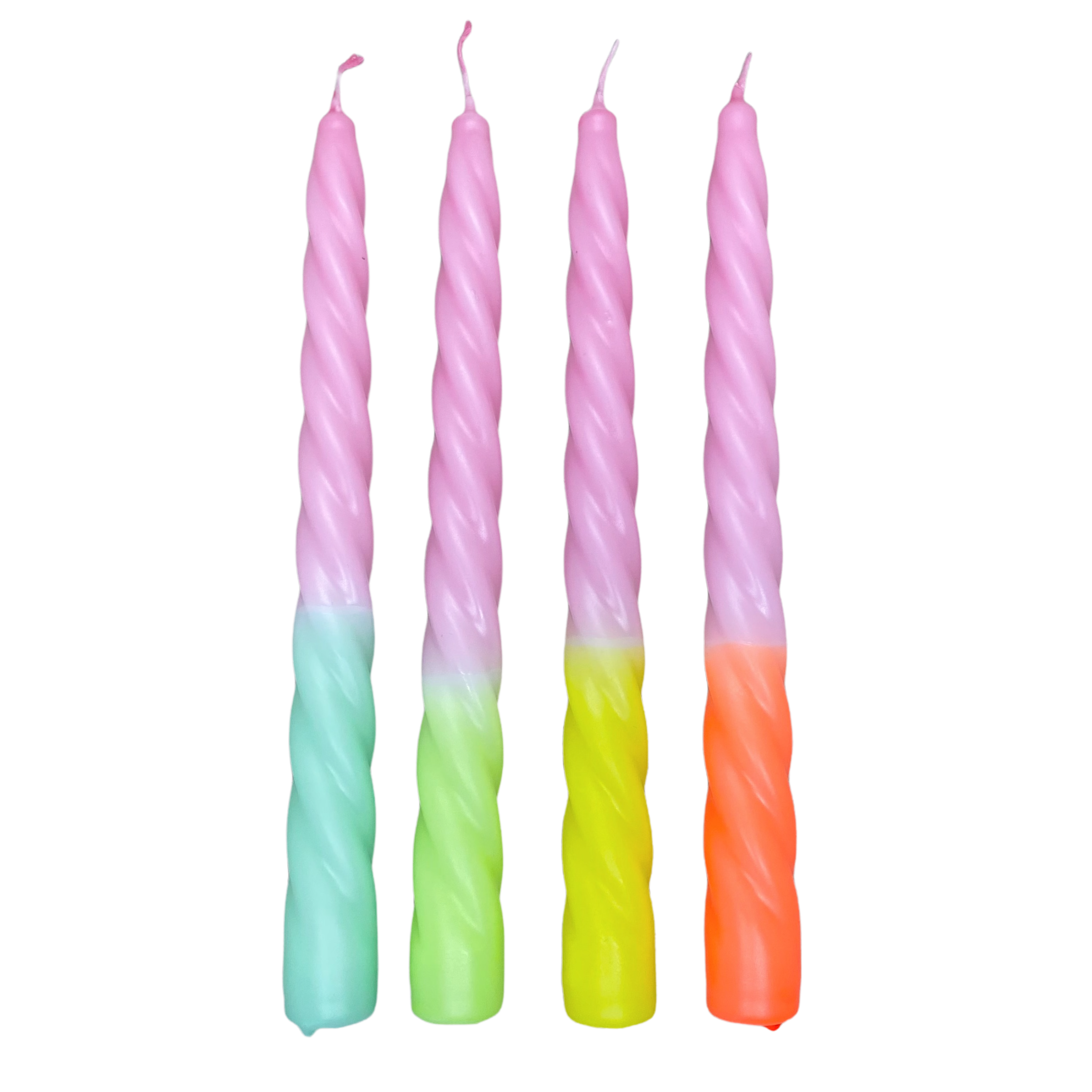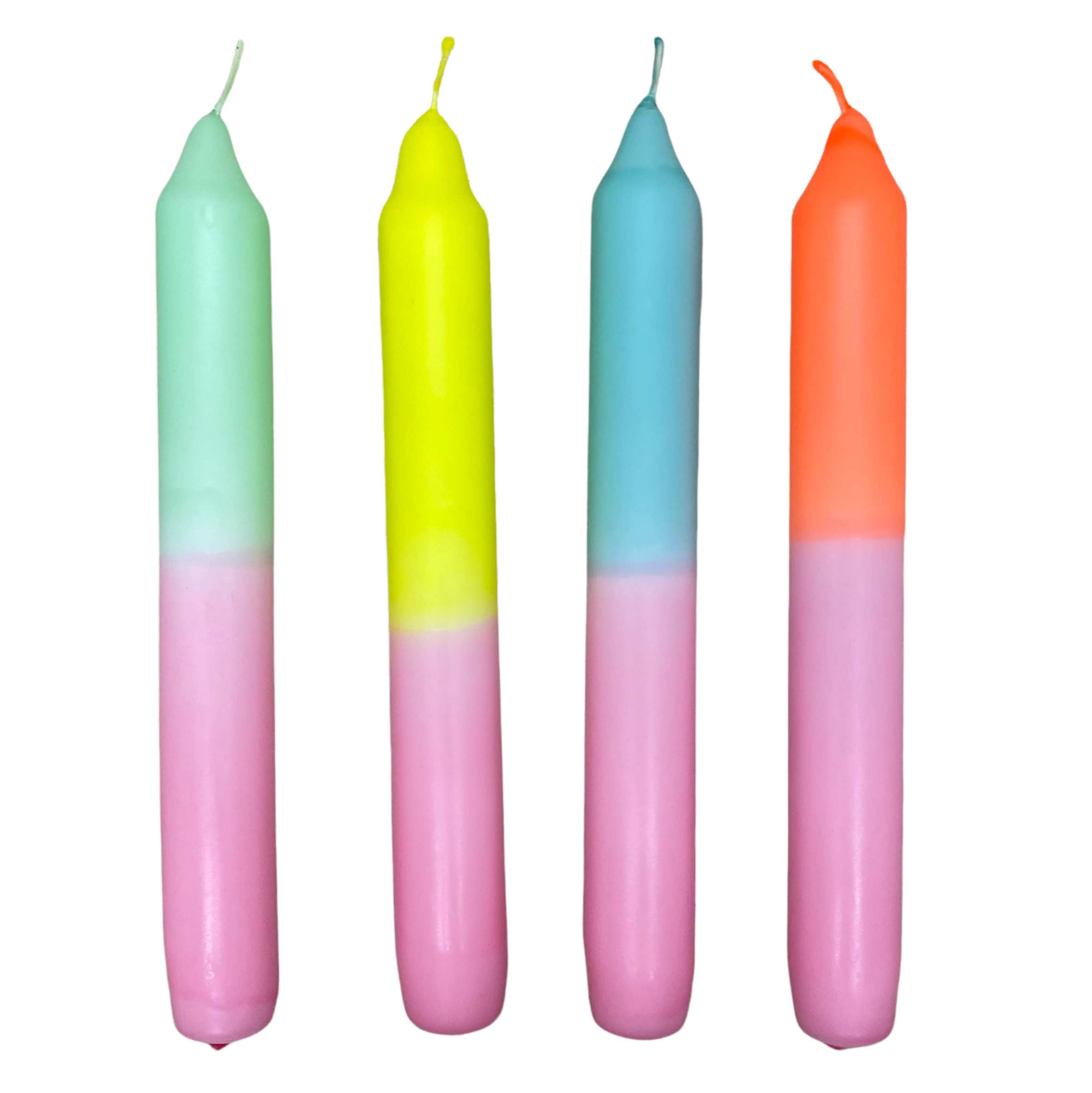 Velas teñidas a mano desde 2020 en combinaciones siempre cambiantes coordinadas estacionalmente velas de columna, varilla y remolino dipdye en neón o pastel