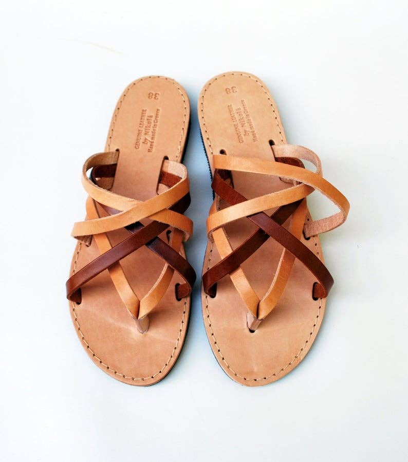 Nikola Sandals es un taller independiente de propiedad familiar ubicado en la isla de Corfú, Grecia. Producción de artículos de cuero artesanales de alta calidad con énfasis en las sandalias. Cada artículo está hecho a mano para ordenar internamente por nosotros. Para las suelas de sandalias, utilizamos piel de vacuno de alta calidad de la isla de Creta y para las correas de cuero de grano completo de Creta o Italia.