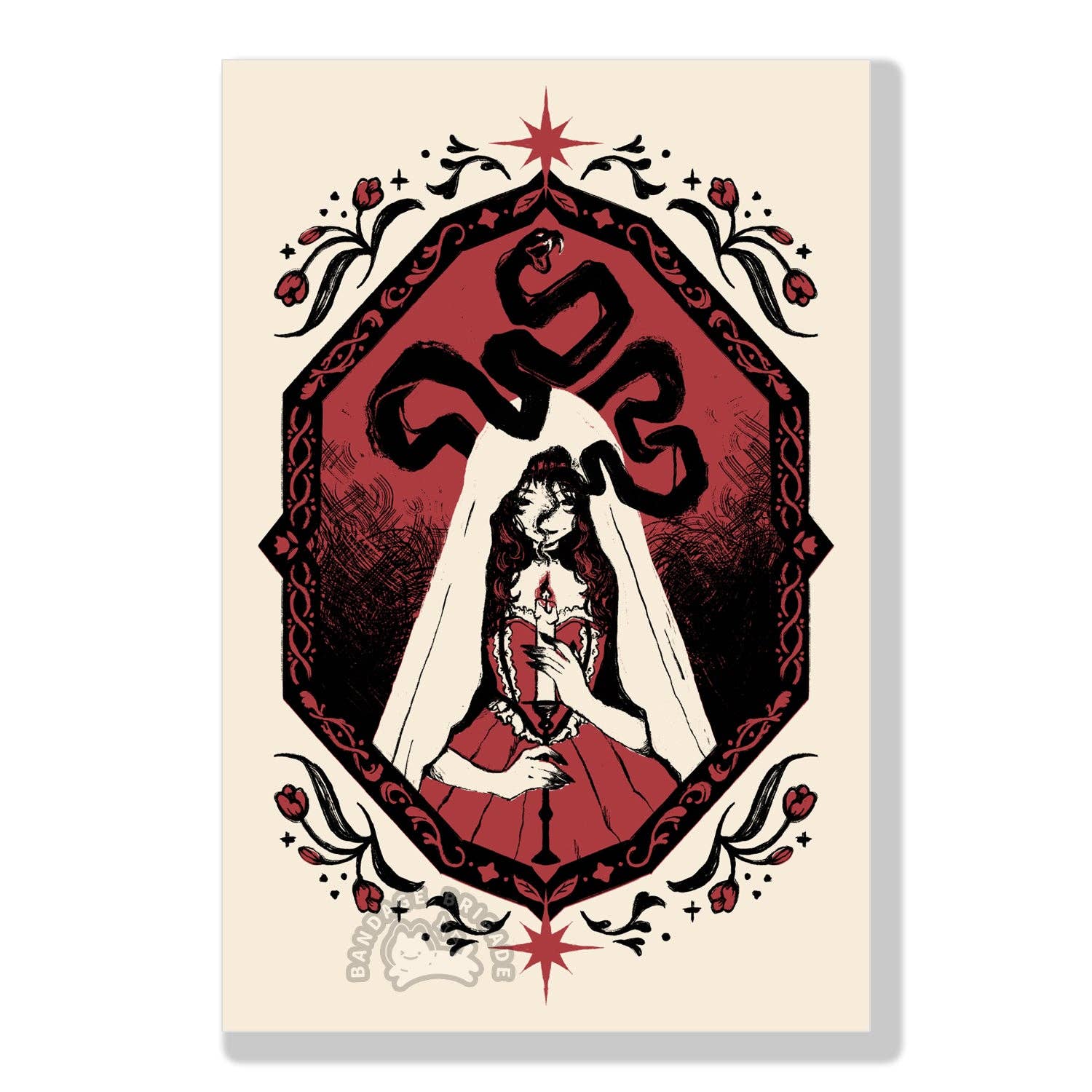 BANDAGE BRIGADE es una marca de ropa y estilo de vida propiedad de artistas que se especializa en crear prendas y artículos serigrafiados originales y tontos, como camisetas, mangas largas, suéteres, chaquetas, sombreros, bolsos, calcetines, además de ofrecer artículos de papel como pegatinas, alfileres esmaltados, calcomanías y dijes. Sus diseños están inspirados en gatos negros, perros largos, plátanos demasiado maduros, fantasmas adorables y comida con formas extrañas.
