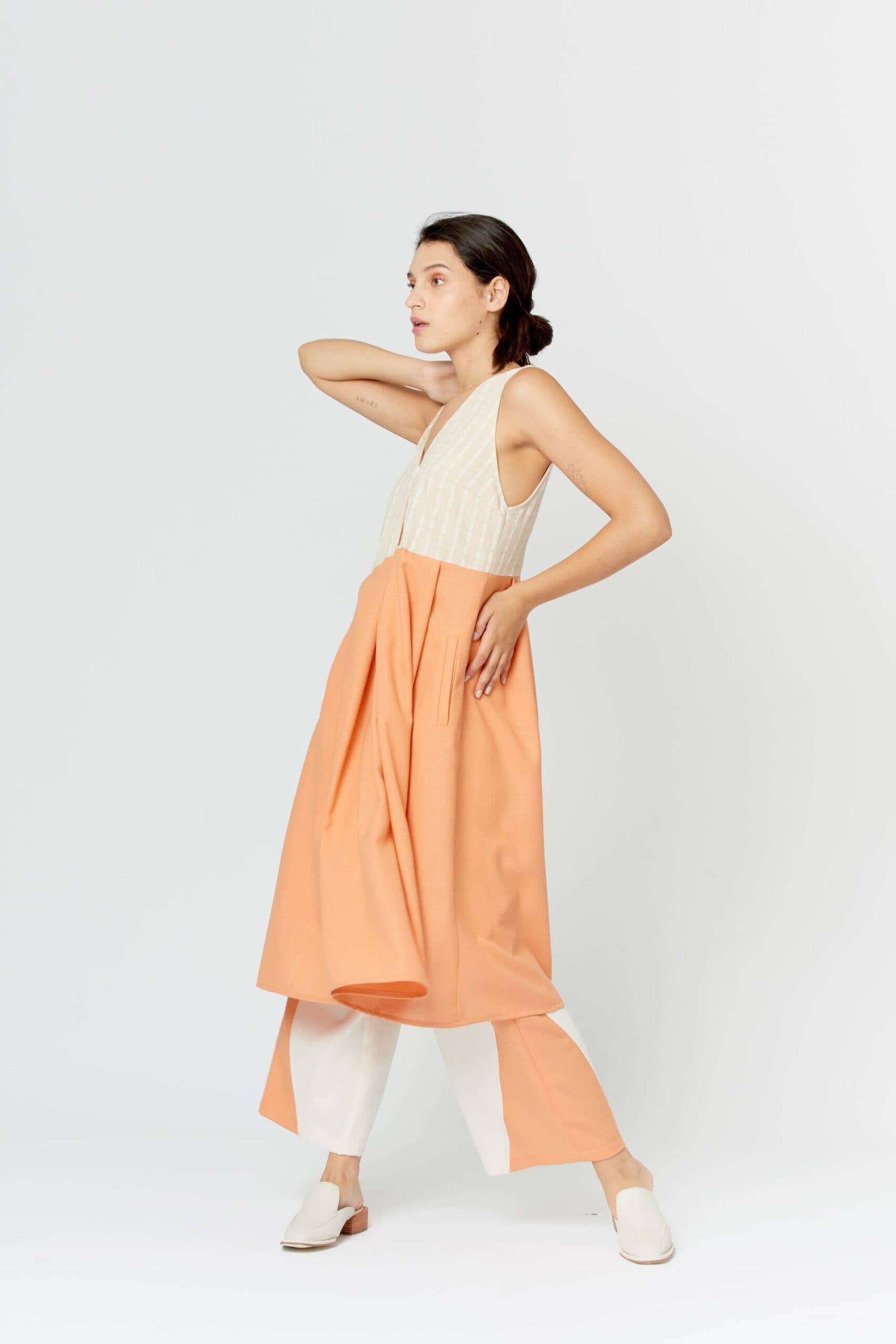 Veplen is a contemporary Peruvian fashion brand founded in 2015 by Pia Velarde Plenge with the desire to present her own vision of women’s wear. It emerges with the aim of sharing her vision of fashion: a raw and natural style with movement and fluidity that takes you directly to a natural beauty without the need of artificial elements. In Veplen, garments are the center of everything and speak for themselves. Each piece of clothing is crafted to be unique and practical, with no need for the artificial and standing out natural beauty in tune with the everyday lives of women for whom it is designed. Sophistication, sustainable materials, details and timeless modernity are our major characteristics and our goal as a brand is to empower women giving them joy in dressing. “You can wear it, effortlessly and show your own coolness by combining pieces” Veplen’s aesthetics are clean, elegant and responsible by working with local certified organic GOTS cotton fabric from Perú, thus contributing to reduce the enviromental impact of the fashion industry in nature. We are commited to: RE-WEAR: our garments with in a versatile way. RE-CYCLE: garment waste works to create a new and beautiful pieces. There is nothing more sustainable than using the materials you already have. RE-FASHION: our pieces with accesories to achieve a new look. RE-STYLE IT: from day to night to seize your closet. RE-COOL IT: simplicity is always the right way to go.