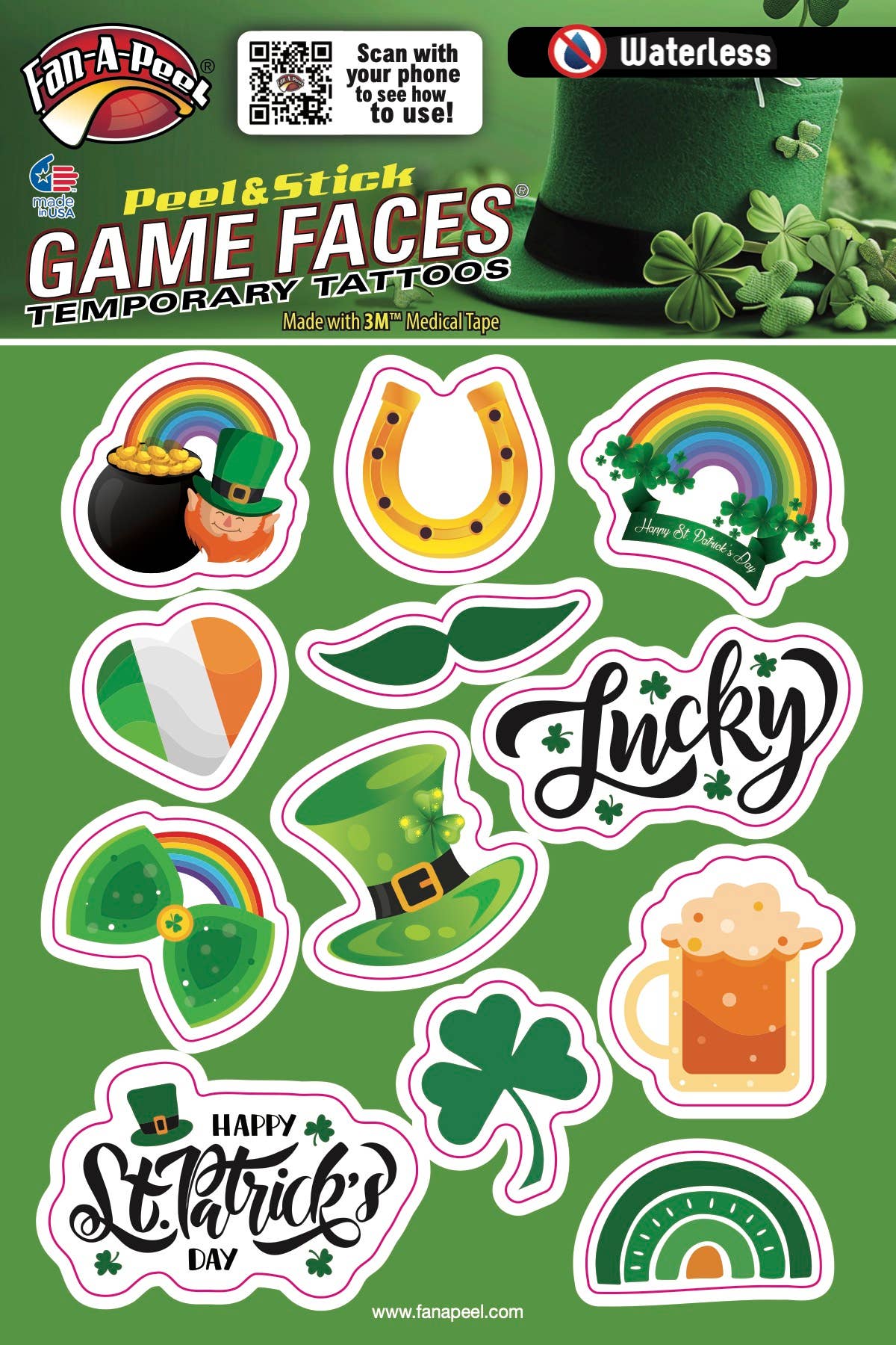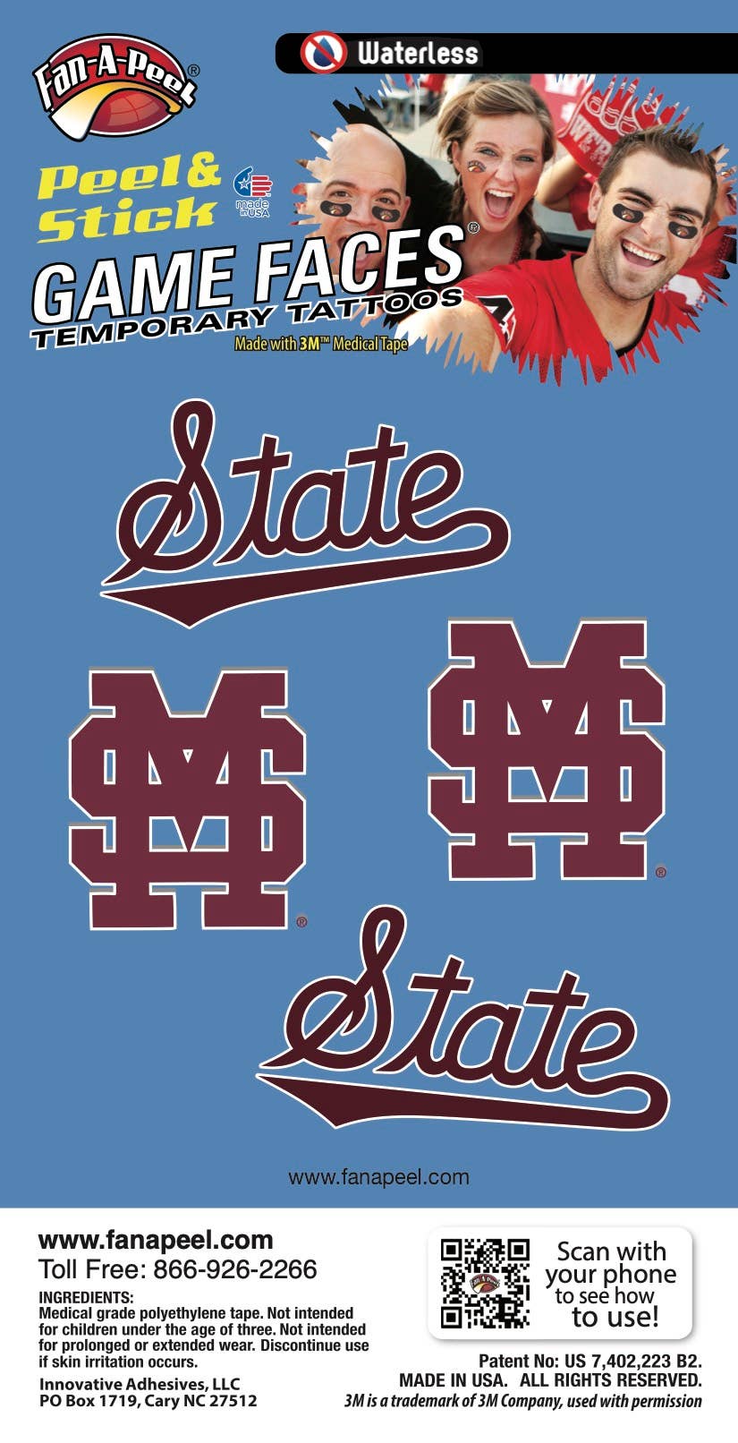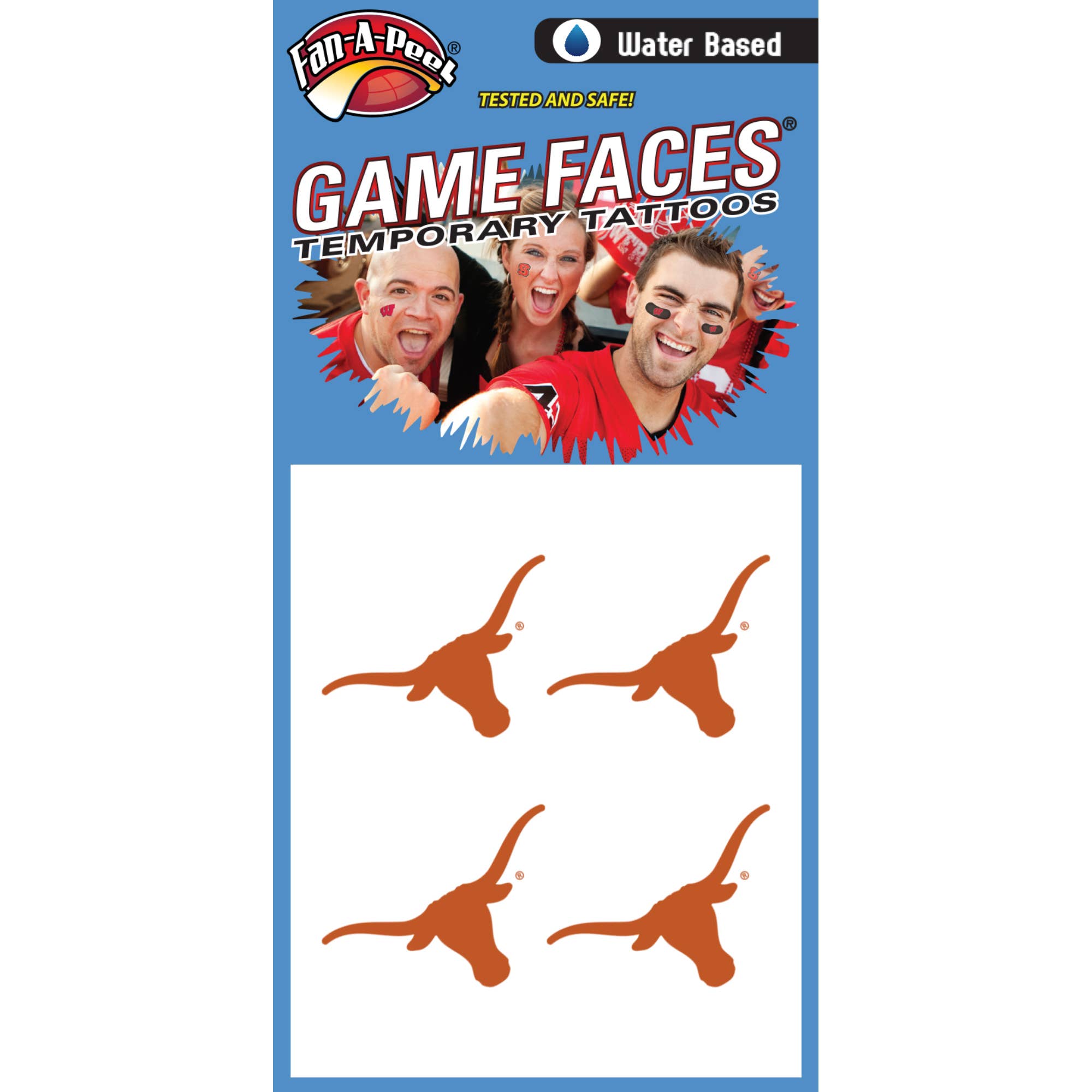 Fan-A-Peel/Gamefaces han sido durante mucho tiempo un elemento básico en el mundo deportivo. Introducido por primera vez hace más de 25 años como un tatuaje aplicado al agua en los deportes colegiados ahora se ha convertido en una declaración de moda para aficionados, animadoras y jugadores. Nuestros productos han adoptado las tendencias de la moda, así como el impulso de compra y uso inmediato introduciendo hace varios años un tatuaje que se puede utilizar sin agua y se utiliza en casi cualquier superficie. Como inventor y titular de patentes para los tatuajes temporales Peel & Stick, hemos revolucionado el mercado y facilitado a cualquiera usar y quitar su «GameFace» a voluntad. Utilizamos los adhesivos 3M Medical más seguros en nuestros productos y hemos ampliado nuestras líneas para incluir metal y purpurina. Un día de juego no pasa sin ver nuestros productos en la televisión, en la impresión y en las gradas. Además de nuestro mantra para la seguridad y la conveniencia, hemos adoptado la sostenibilidad mediante el uso de materiales reciclados en nuestros envases. Todo lo que queremos es que te diviertas y «pongas tu juego en»!!