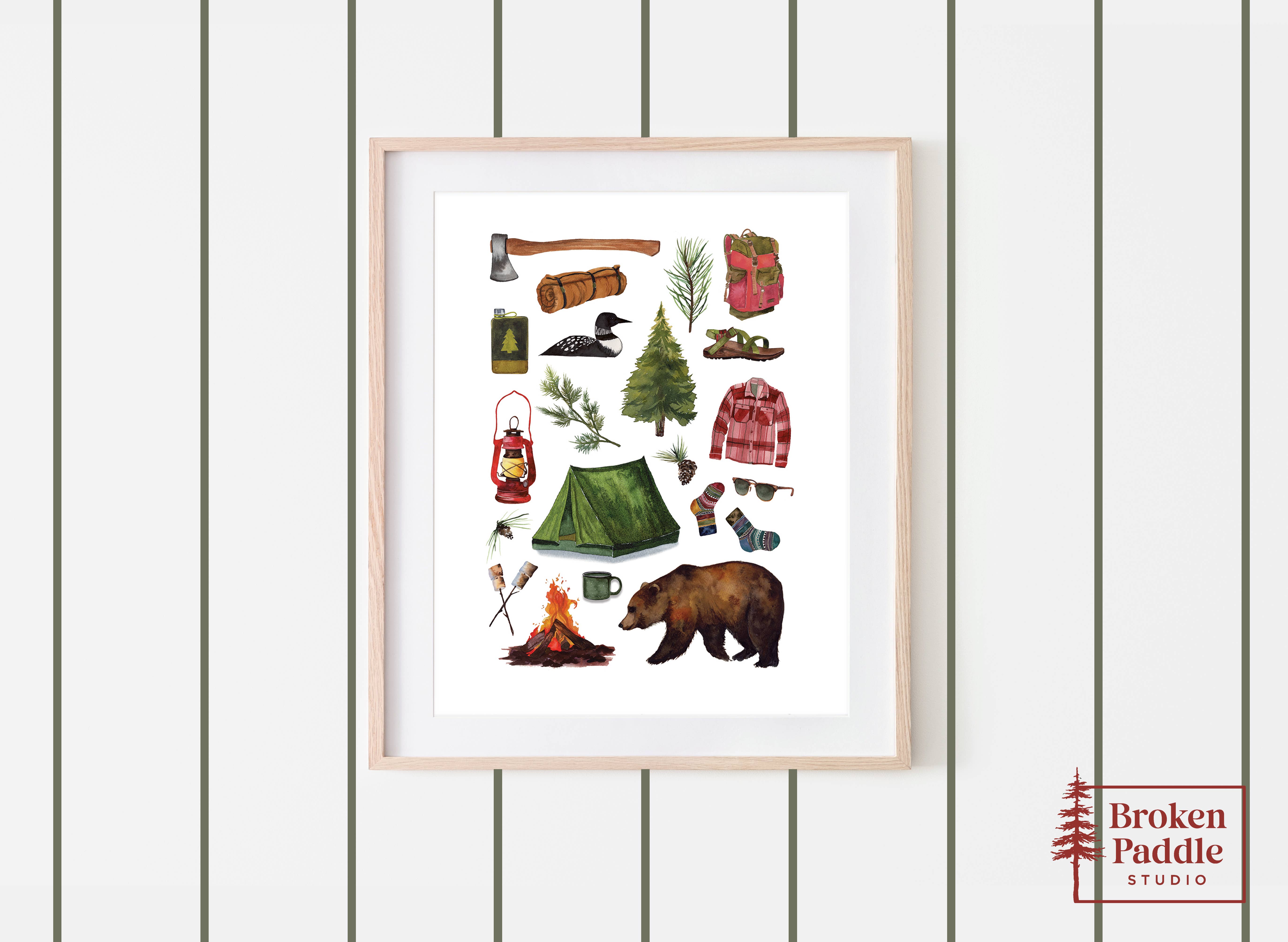 Shelby Oredson es la artista detrás de Broken Paddle Studio, una casa de arte y papelería especializada en impresiones artísticas al aire libre, tarjetas de felicitación, pegatinas y obras de arte personalizadas. Actualmente vive en Maryland, pero pasó los tres años anteriores en Sitka, Alaska, donde su esposo pilotaba helicópteros para la Guardia Costera de los Estados Unidos. La formación académica de Shelby es en escritura en inglés y educación secundaria, aunque incursionó en clases de acuarela durante sus años de licenciatura. Su transición a la maternidad durante la primavera de 2019 jugó un papel fundamental en su trayectoria profesional como creativa, ya que fue durante esos preciosos momentos de soledad (la hora de la siesta) cuando se encontró en la mesa de la cocina, practicando un pasatiempo largamente olvidado y moldeándose en la artista que es hoy. El trabajo de Shelby está fuertemente influenciado por su afinidad con la naturaleza salvaje y su tiempo pasado en los lagos del norte de Minnesota, así como en las montañas de Alaska.