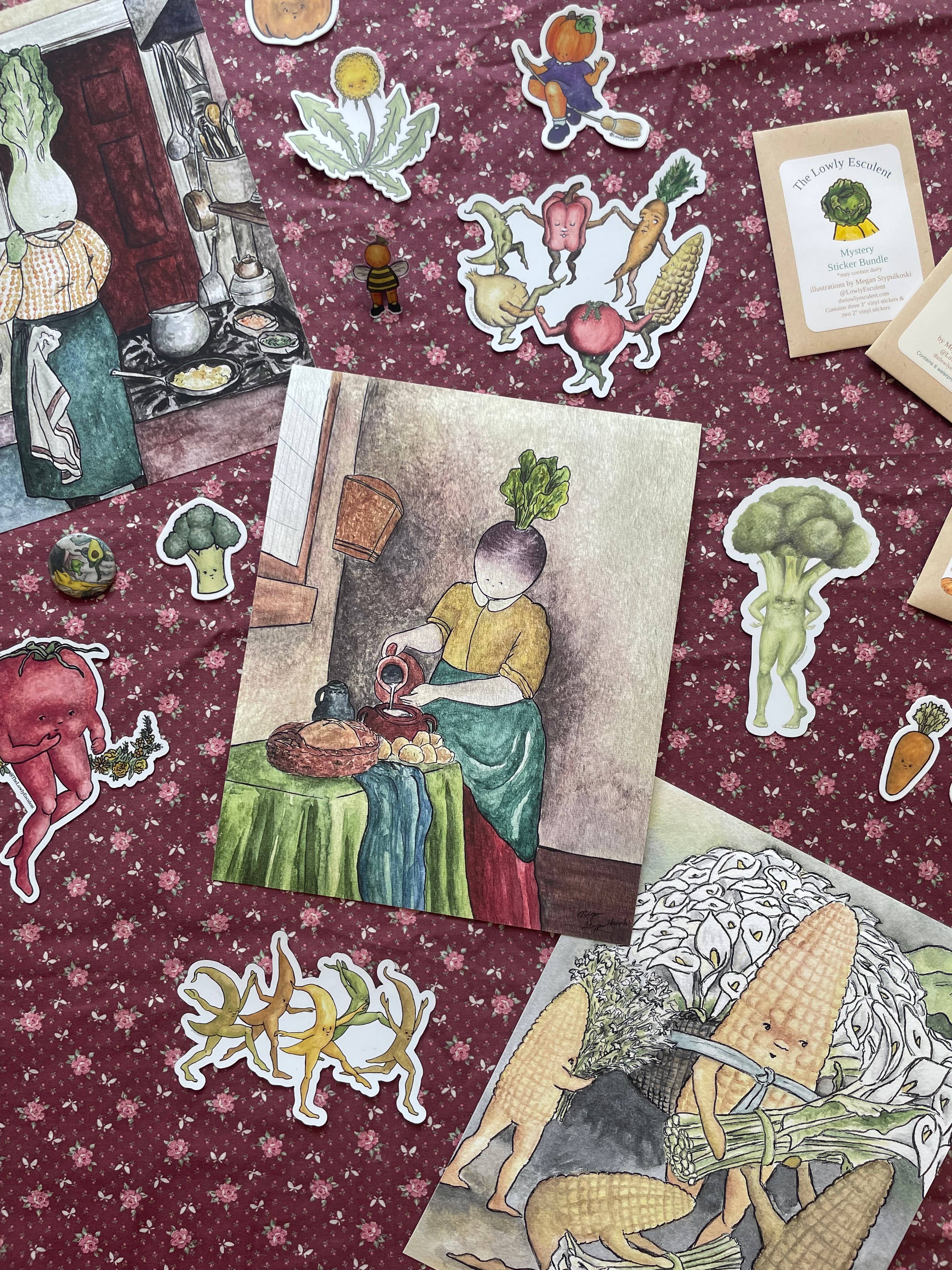 The Lowly Esculent es mi serie de ilustraciones creada para compartir mi amor por las plantas, la jardinería y la comida. Trabajo en acuarelas y técnica mixta, y cada diseño es una obra de arte original. El abastecimiento ético es importante para mí, y todos mis productos se fabrican en los Estados Unidos o son de comercio justo.