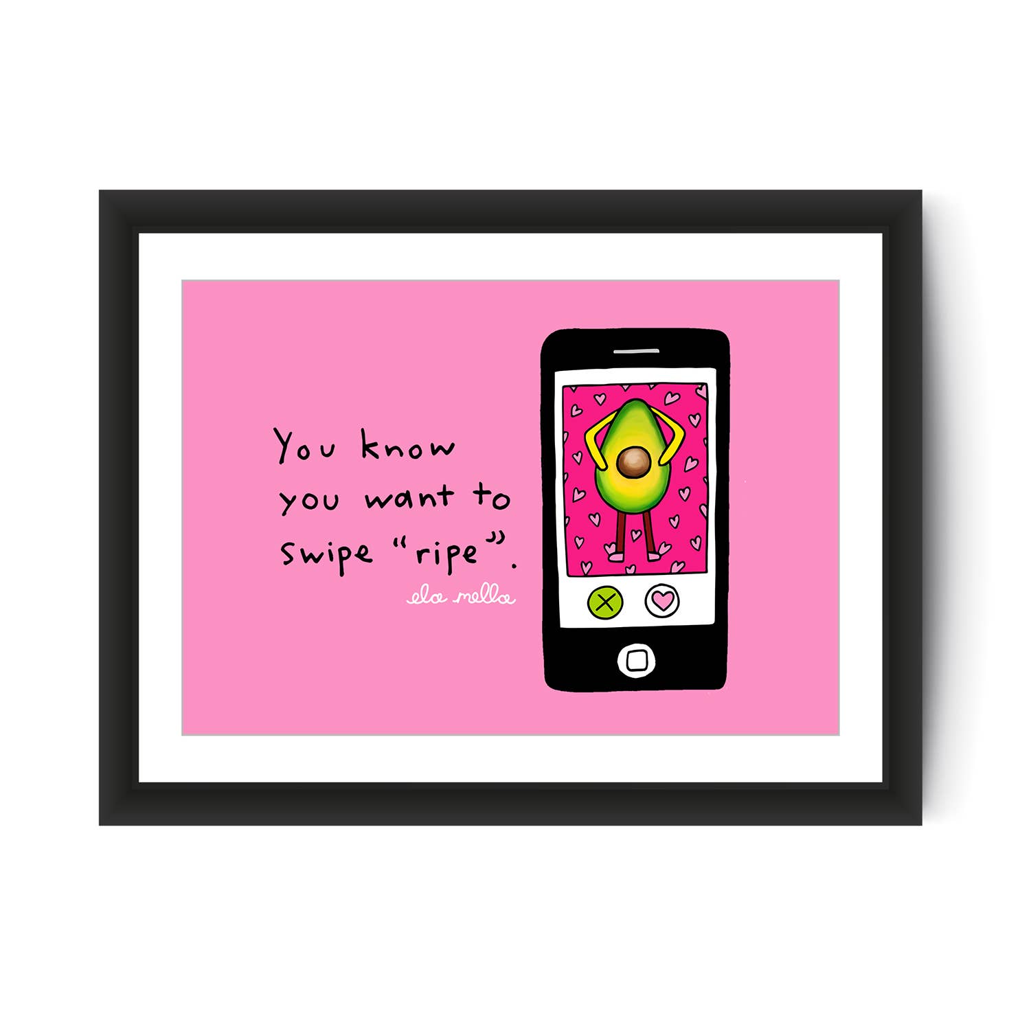 Ela Mella es una artista con sede en Brooklyn, NY, especializada en ilustración, murales y juegos de palabras. Su línea de firma cuenta con una serie de ingeniosos retratos de aguacate.