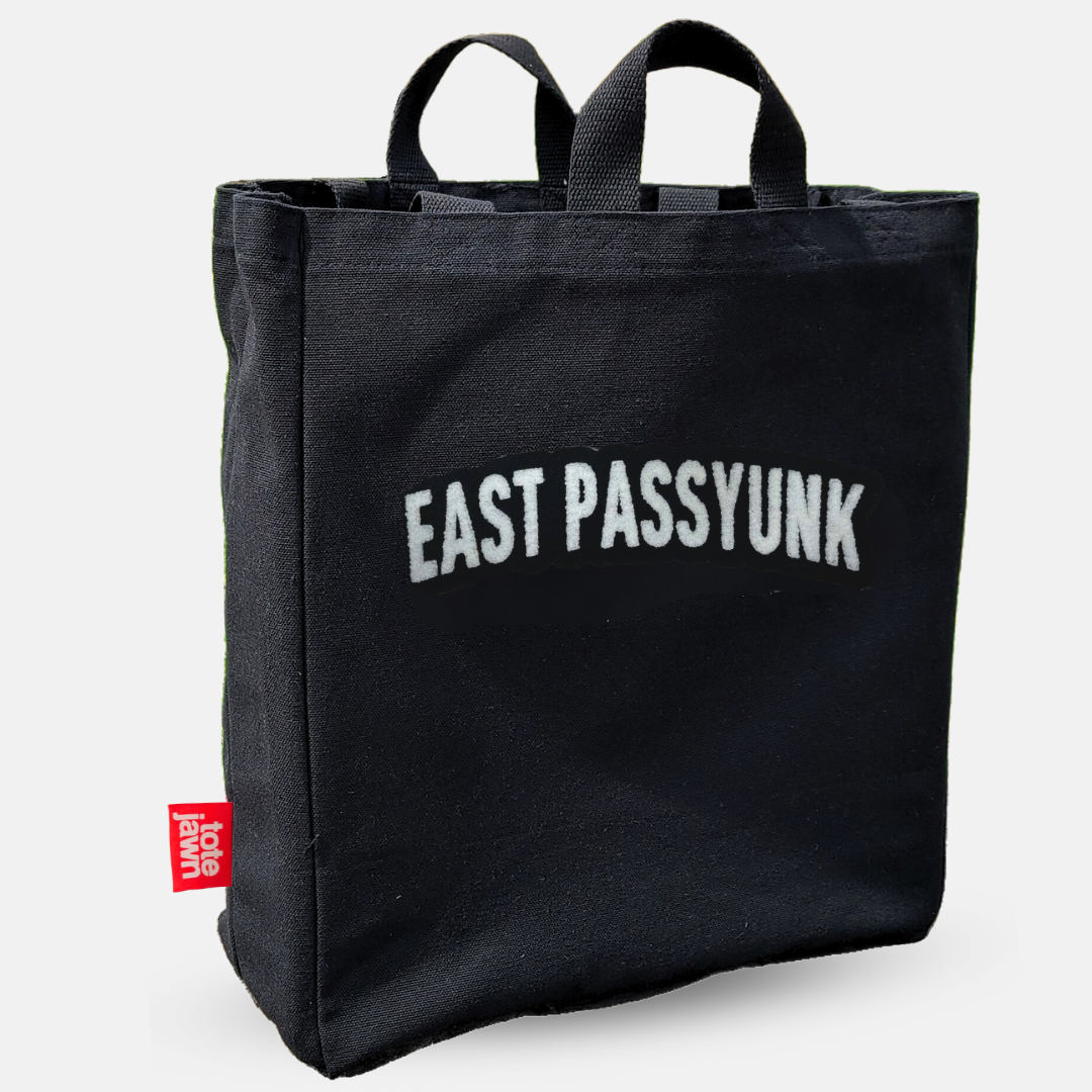 A medida que crece el movimiento para prohibir las bolsas de plástico de un solo uso, sabemos que la gente necesitará una bolsa mínima y moderna que combine con su estilo. Nuestras bolsas cosidas a mano cuentan con asas dobles para llevar al hombro, codo o mano, un fondo plano para máxima capacidad de carga, un bolsillo interior, un llavero y un fuelle lateral de 7". Los clientes pueden llenarlas y usarlas para compras, equipo de gimnasio, ropa de playa, bocadillos para niños, artículos esenciales de mano, etc. Y ahora, después de muchas solicitudes, nuestros icónicos parches bordados de chenilla de tacto suave están disponibles en camisetas, sudaderas y sudaderas con capucha. Somos un negocio propiedad de mujeres y de personas negras, dirigido por una costurera de cuarta generación. Bolsas personalizadas están disponibles. Jawn: sustantivo (rima con "lawn"). Palabra de jerga de Filadelfia que significa lo que quieras. "¿Vas de compras? No olvides tu Tote Jawn (bolsa)." "¿Necesitas nuevas bolsas para tu tienda? Vi algunas jawns (unas) geniales en Faire." Sirviendo con orgullo a comerciantes de todas partes... excepto Dallas.