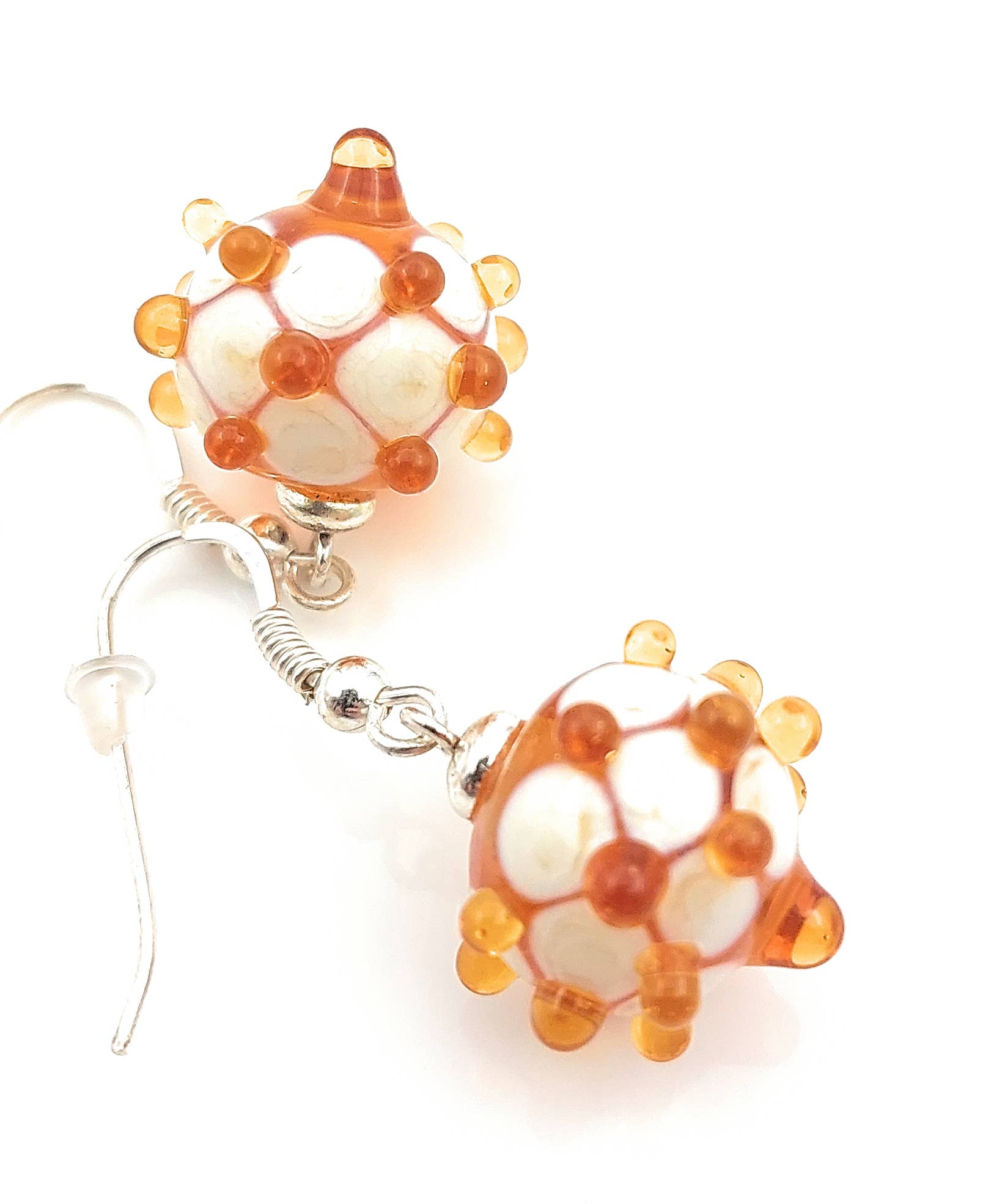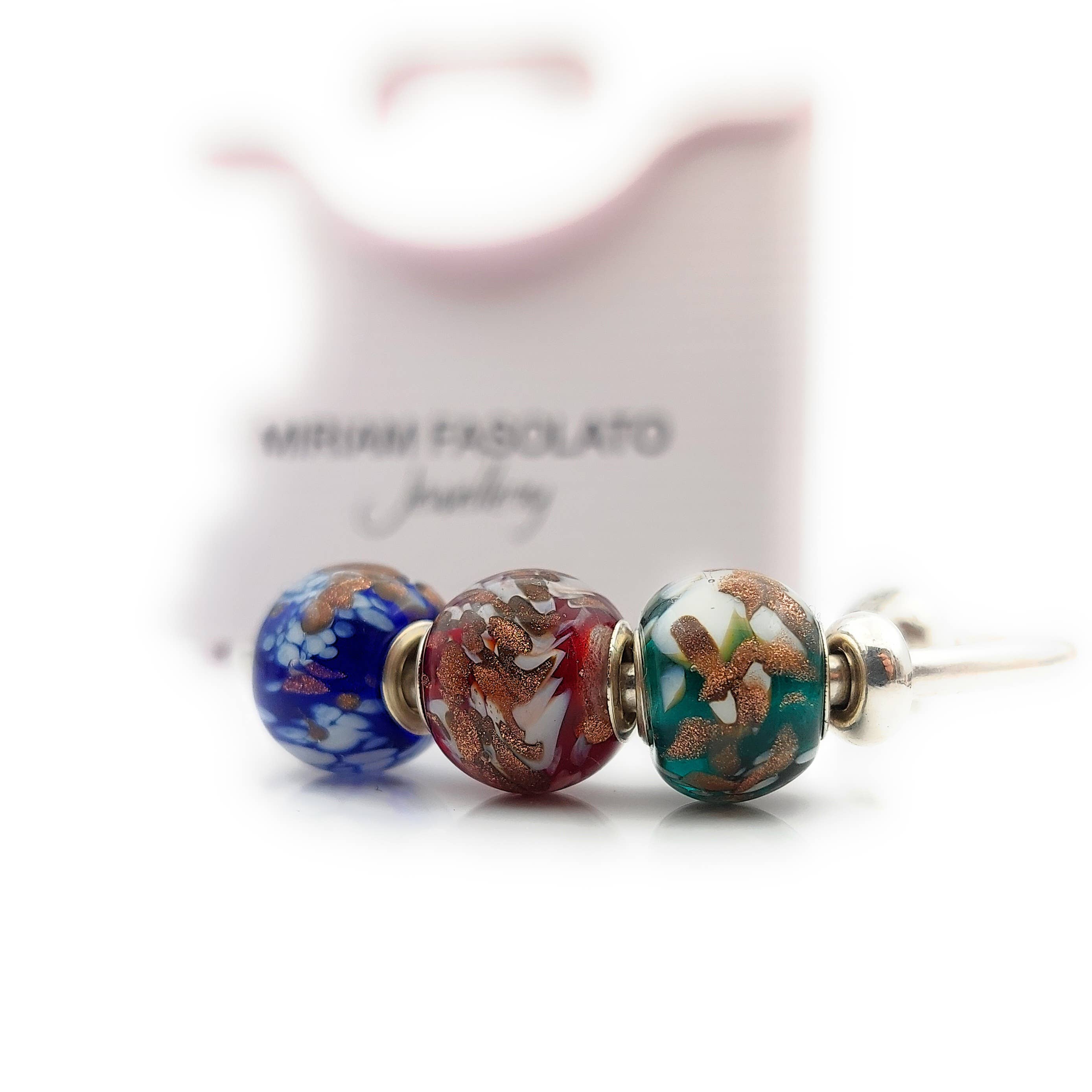 Una LUME... ese es el nombre de la especie antigua (1600) que nació en Venecia y que se utiliza para estas perlas. Las barras de cristal de Murano se funden, se enrollan en varillas de metal y se moldean La perla terminada pasa una noche en un horno templado antes de limpiarla y convertirla en joyería con plata 925. Fuego, cristal, plata y... ¡pasión! Las perlas trabajadas en lume son Patrimonio de la Humanidad y están protegidas por la UNESCO desde 2020