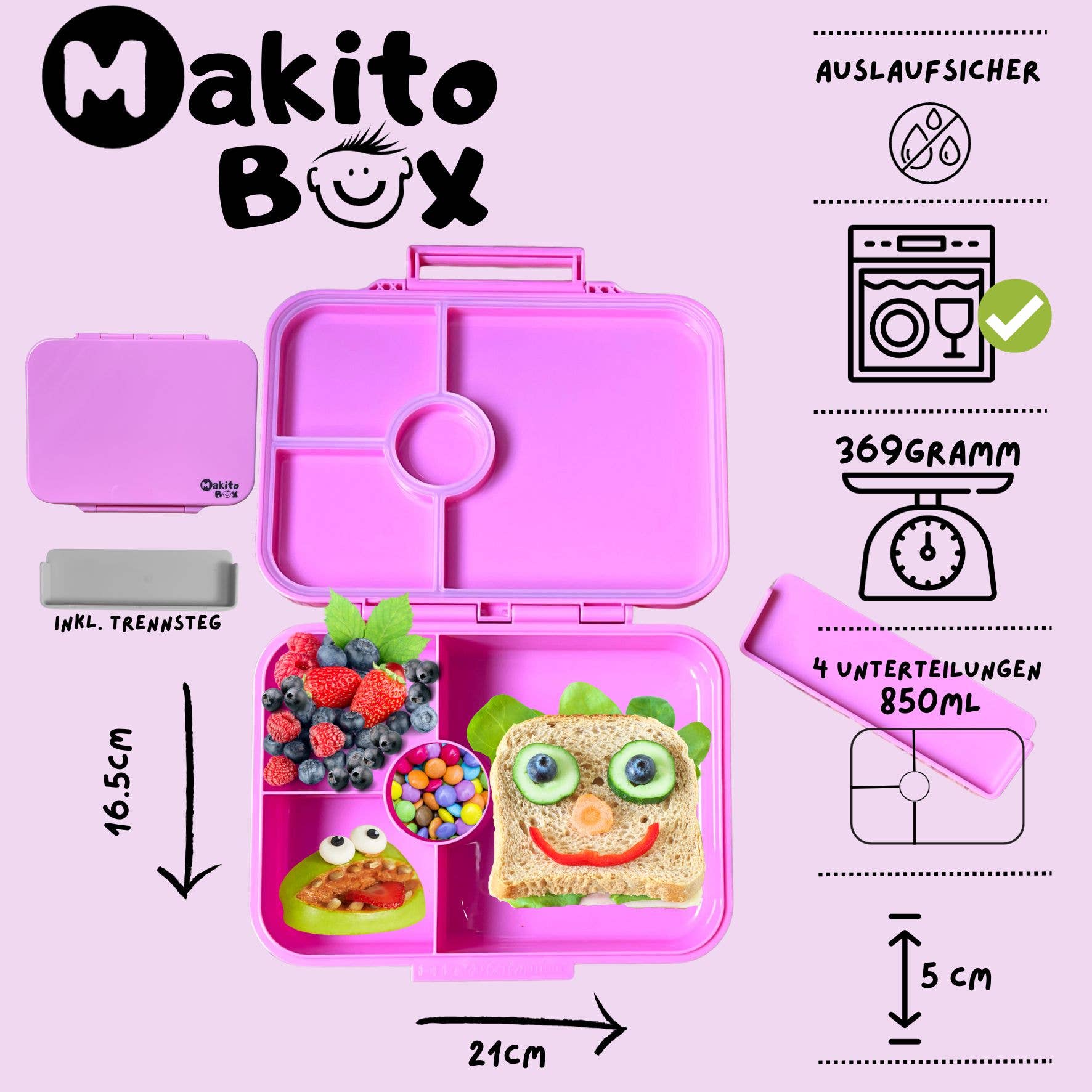 Bienvenido al colorido mundo de Makito, donde la alegría y la creatividad se encuentran con prácticos ayudantes cotidianos. Makito, con una variedad de productos coloridos y amigables para los niños para el jardín de infancia, la escuela o excursiones, tiene la solución perfecta para las necesidades de los pequeños. Artículos de la caja Makito: estas loncheras a prueba de fugas y robustas son un verdadero atractivo y mantienen la comida de sus hijos fresca y deliciosa. Descubra las diferentes loncheras, que no solo son prácticas, sino también coloridas y versátiles. Ofrecen suficiente espacio para una comida equilibrada y están diseñadas para que los niños puedan abrirlas y cerrarlas fácilmente. Únase a Makito y sumérjase en un mundo tan colorido y lleno de alegría como la propia infancia.