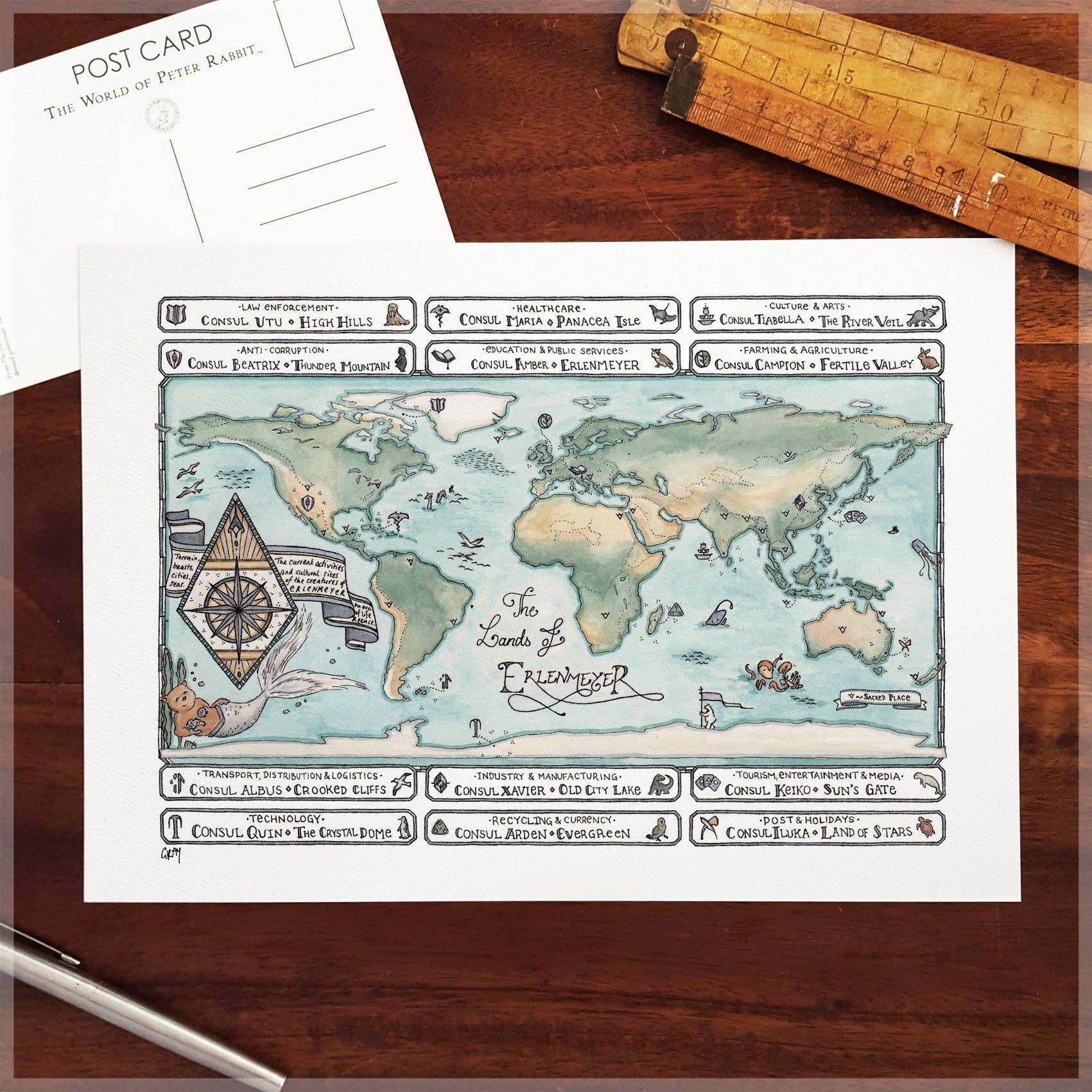 Erlenmeyer es un pequeño negocio de papelería establecido en 2015, que opera en Australia y el Reino Unido. La gama de productos incluye: - tarjetas de felicitación - naipes - impresiones artísticas, todos los cuales presentan el trabajo de la artista australiana Stephanie Avila Gray. Avi se especializa en pinturas con pluma de tinta fina y acuarela. Su amor por la lectura y el dibujo despertó una pasión por contar historias y crear personajes con mundos mágicos propios. Sus temas favoritos incluyen animales, música, arquitectura y pasatiempos. Erlenmeyer es también el nombre del reino animal narrativo de Avila Gray; una utopía futurista donde criaturas sensibles viven en armonía a lo largo de 12 ciudades en la Tierra. Todas las composiciones de su gama ilustrativa representan instantáneas de esta historia; su obra muestra los personajes animales que colorean el mundo de Erlenmeyer, así como su cultura, valores y cómo viven. En Erlenmeyer Art estamos comprometidos con la sostenibilidad y el respeto al medio ambiente. ¡Se acabaron los días de las tarjetas desechables! Nuestros diseños de tarjetas de felicitación son ilustraciones sin palabras que pueden ser atesoradas y exhibidas como obras de arte mucho después de haber sido entregadas originalmente.
