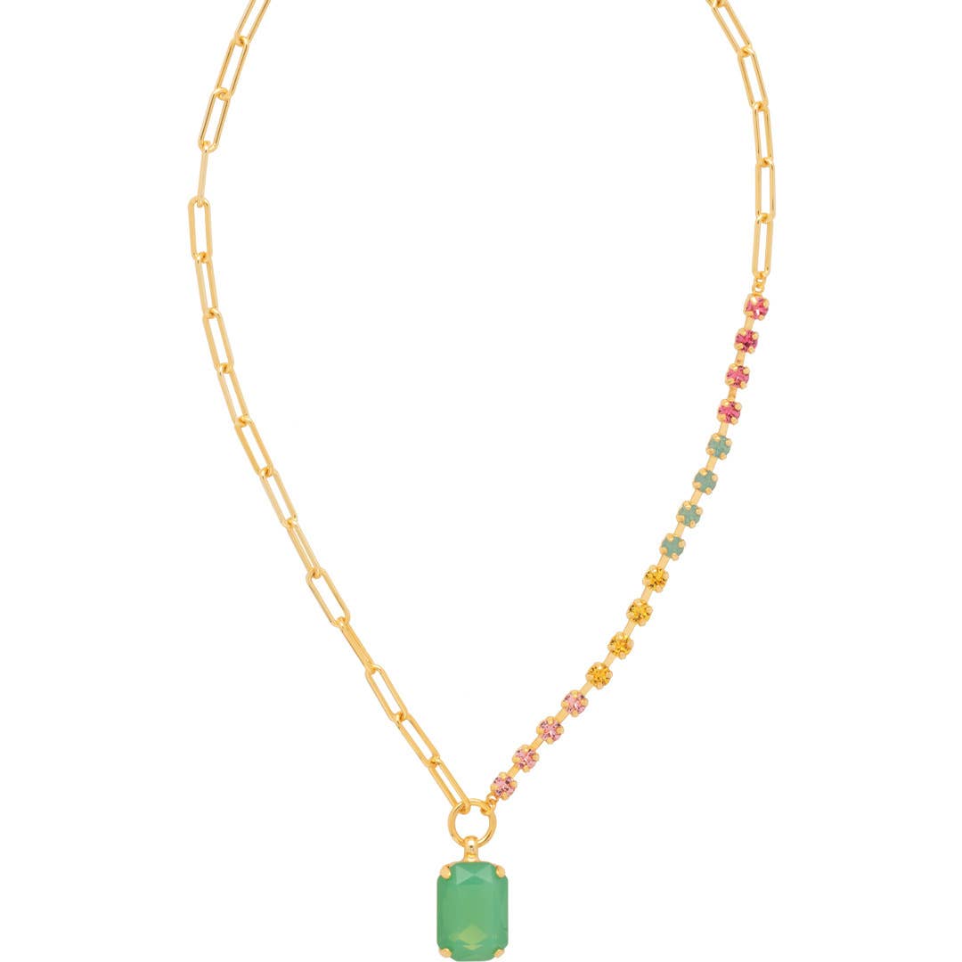 Hecho a mano para durar toda la vida DISEÑOS ÚNICOS Y ORIGINALES: -Desde 1983, la fundadora Lisa Oswald comenzó a diseñar y crear piezas de estilo heredado para que ella y sus amigas las usaran en fiestas de Nueva York. -Hoy, utilizando pronósticos de tendencias de la industria y datos de ventas, Lisa y el equipo de diseño crean combinaciones de colores estacionales y clásicos cotidianos. MATERIALES DE CALIDAD: -Base de latón chapada con oro de 10K o paladio. -Cristales especialmente seleccionados de todo el mundo. -Perlas naturales de agua dulce y piedras semipreciosas. HECHO A MANO: -Artesanos capacitados elaboran cada pieza a mano en nuestra instalación de producción. -Los componentes metálicos se sueldan, incluidos los eslabones de la cadena. -Todos los cristales y piedras se colocan a mano. NUESTRA PROMESA: -Respaldamos la calidad de nuestras joyas y creemos que las piezas deben usarse durante años, no solo unas pocas veces. -La Promesa Sorrelli es una garantía de artesanía de calidad y cubre reparaciones por desgaste diario, incluyendo: piedras faltantes, agrietadas o sueltas, pequeñas roturas de soldadura (en un solo punto), roturas básicas de cadena, postes de pendientes perdidos, y cierres y broches.