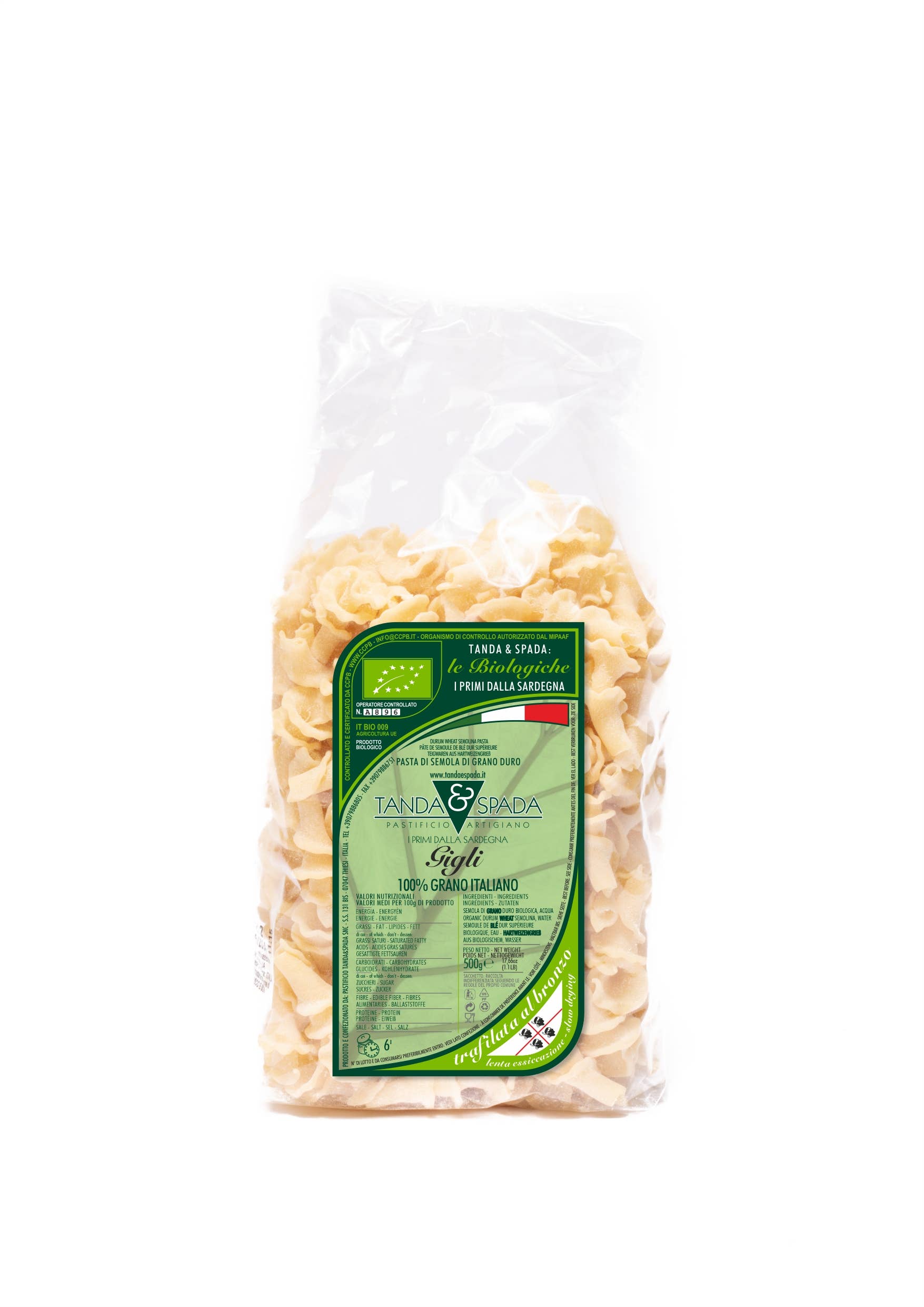 Desde 1990, Tanda & Spada produce pasta seca de alta calidad, con un enfoque particular en las especialidades regionales de Cerdeña. La planta de producción cuenta con 3 líneas de producción modernas y 4 celdas de secado estático a baja temperatura. Estas características, junto con la selección de las mejores sémolas y la extrusión rigurosamente en bronce, permiten la realización de un producto con características nutritivas y gustativas de alta calidad. En febrero de 2022 se inauguró la nueva planta que alberga el Molino al servicio de la fábrica de pasta. La marca Tanda & Spada se distribuye en el mercado italiano y tiene una cuota de exportación del 20% realizada en 20 países. La gama de productos está estructurada para posicionarse en la gama alta.