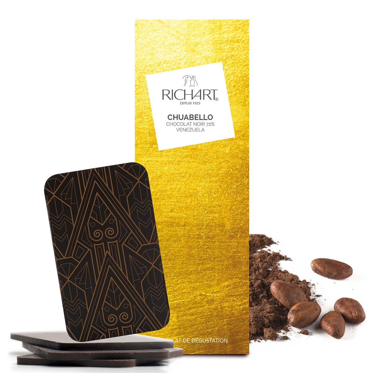 Si bien la fábrica de chocolate familiar existe desde 1925, después de 3 generaciones, la pauta sigue siendo la misma. La combinación esencial de lo bello y lo bueno está en la base de cada creación. Todos los productos de Maison RICHART se imaginan y desarrollan para seducir a una clientela de aficionados que rompen con los códigos tradicionales de la elaboración del chocolate y buscan nuevas sensaciones. El diseño, la fabricación y la venta de chocolates pueden aportar estética, innovación y una verdadera dimensión artística. Este concepto se materializa mediante la búsqueda de los mejores ingredientes y recetas para obtener la máxima calidad gustativa y mediante una preocupación permanente por la diferenciación y la funcionalidad, tanto en términos del producto como de su estuche. Así es como se creó la colección de barras de chocolate RICHART. 30 sabores para satisfacer todos los deseos gourmet. Las originales barras de chocolate de cacao grand cru, las tabletas con aromas clásicos o inusuales, un nuevo formato, un empaque colorido y evocador harán que esta colección sea un éxito entre sus clientes.