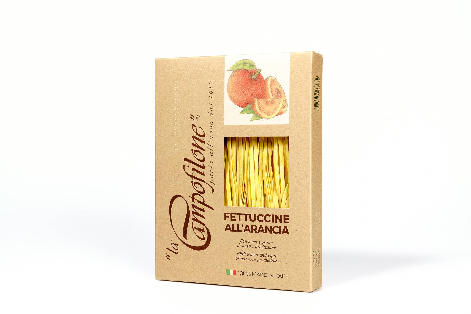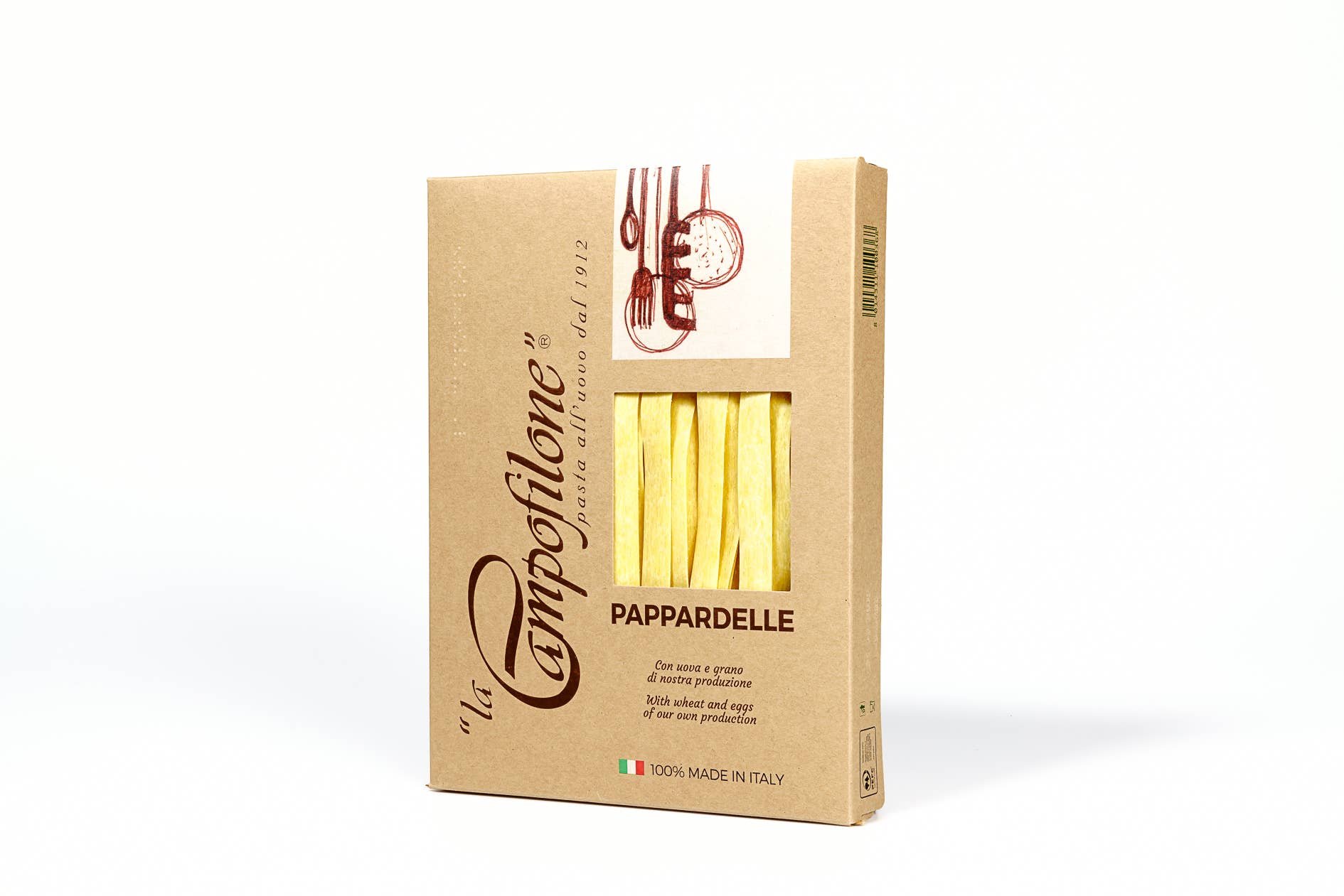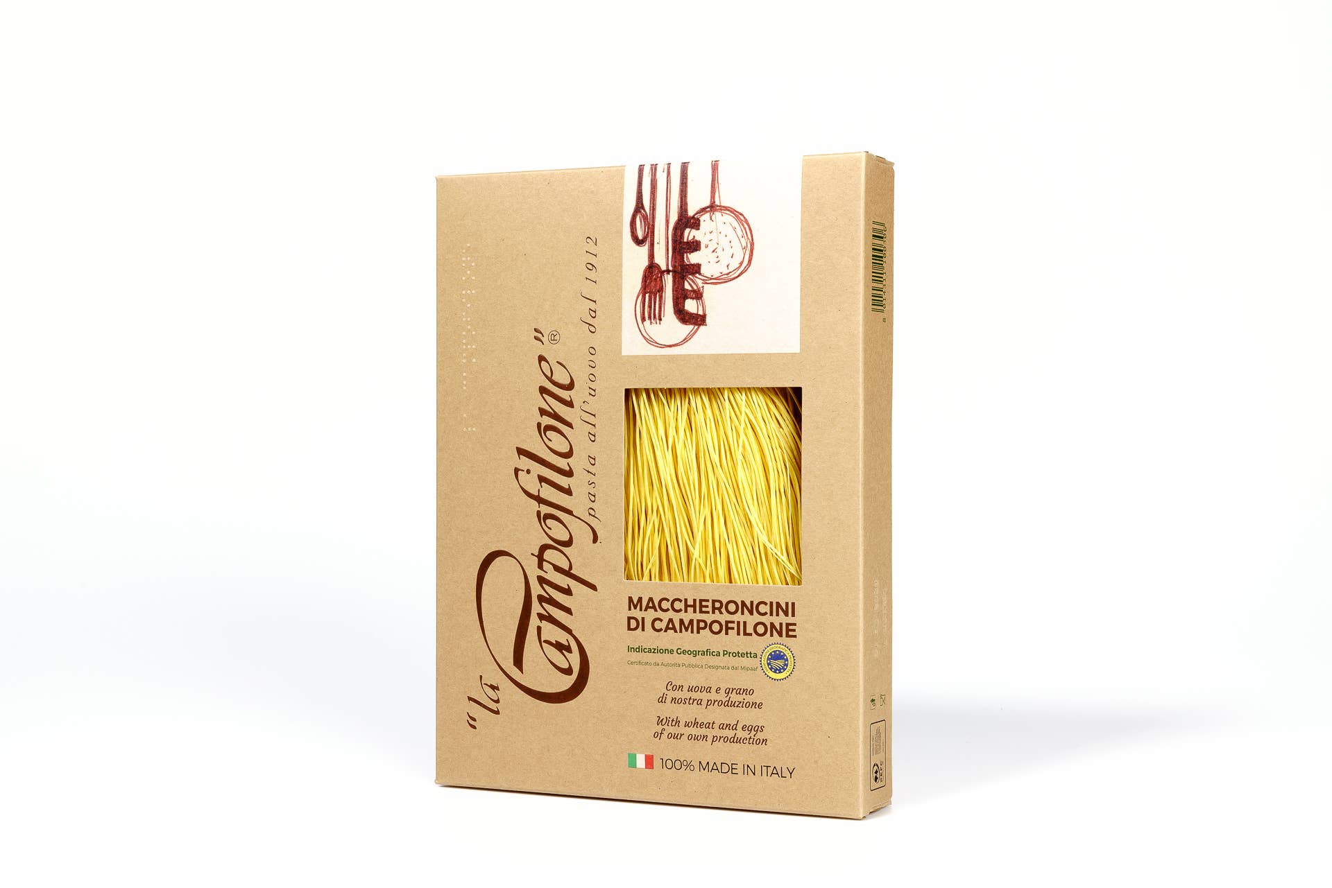 Granjeros antes de que yo pastizara. Histórica fábrica de pasta y la más antigua fundada en 1912 en Campofilone, el distrito de pasta al huevo más grande de Italia, «La Campofilone» es tanto una fábrica de pasta como una granja: todas las materias primas necesarias se producen en una cadena de suministro circular propiedad exclusiva de la empresa, exclusivamente en el territorio del sur de Las Marcas. El cultivo de trigo y los gallineros propiedad de la empresa se extienden a lo largo de 150 hectáreas distribuidas en los alrededores de la fábrica de pasta, donde se aplican técnicas de agricultura regenerativa sin el uso de pesticidas ni antibióticos, con el máximo respeto por la tierra y los animales. Las materias primas se transforman en pasta en un laboratorio artesanal donde la técnica de descamación sigue el método de la campofilona, que nos permite obtener una lámina delgada con porosidad natural. Con el uso de bajas temperaturas y diferentes fases de secado que duran de 24 a 48 horas, obtenemos una pasta única, con un sabor intenso y un peso muy ligero.