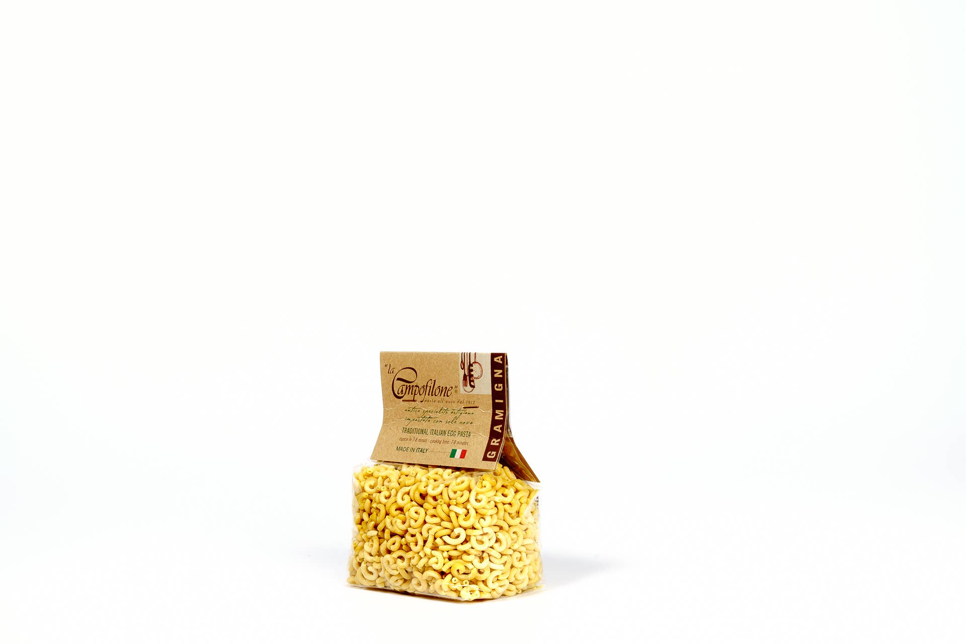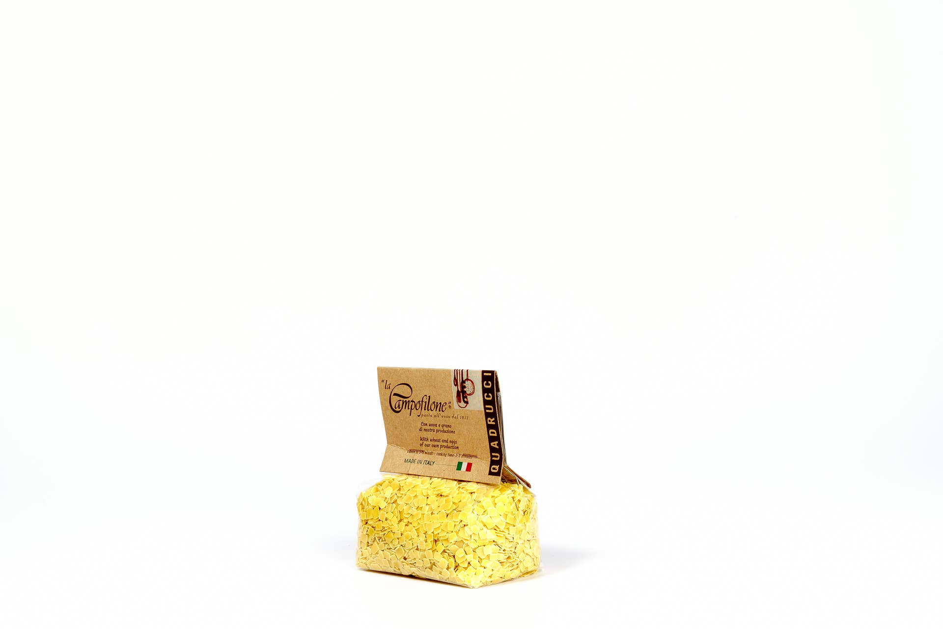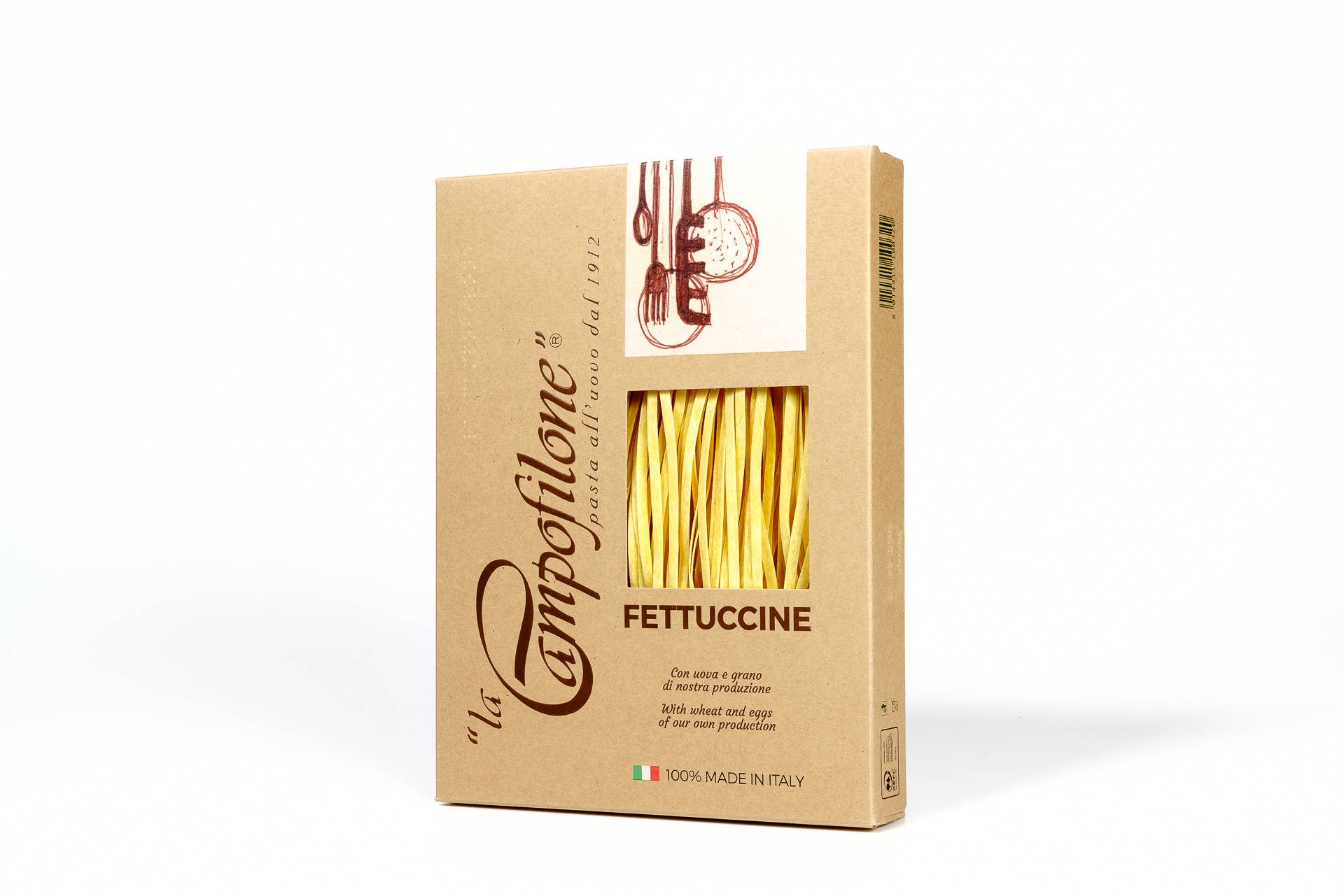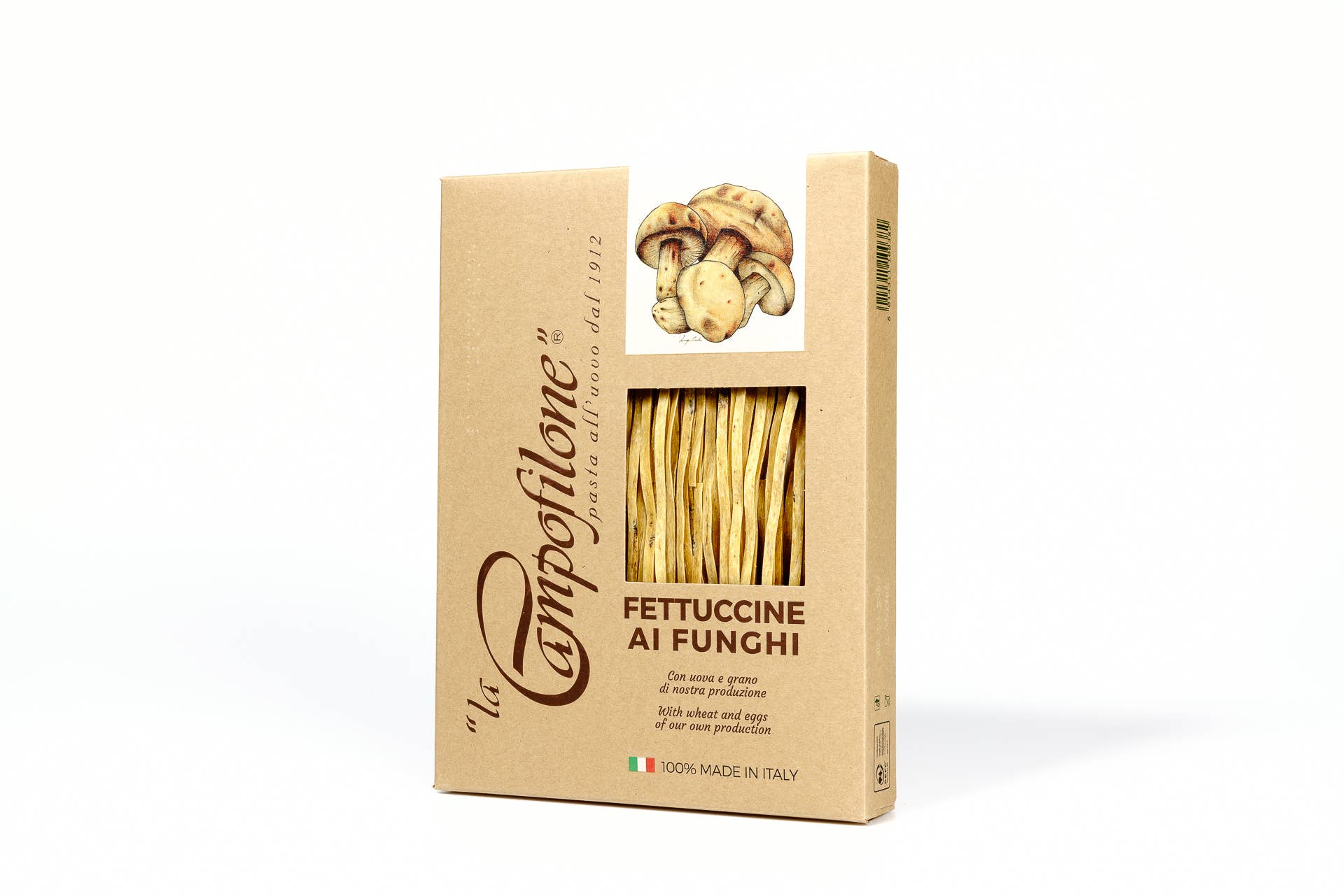 Granjeros antes de que yo pastizara. Histórica fábrica de pasta y la más antigua fundada en 1912 en Campofilone, el distrito de pasta al huevo más grande de Italia, «La Campofilone» es tanto una fábrica de pasta como una granja: todas las materias primas necesarias se producen en una cadena de suministro circular propiedad exclusiva de la empresa, exclusivamente en el territorio del sur de Las Marcas. El cultivo de trigo y los gallineros propiedad de la empresa se extienden a lo largo de 150 hectáreas distribuidas en los alrededores de la fábrica de pasta, donde se aplican técnicas de agricultura regenerativa sin el uso de pesticidas ni antibióticos, con el máximo respeto por la tierra y los animales. Las materias primas se transforman en pasta en un laboratorio artesanal donde la técnica de descamación sigue el método de la campofilona, que nos permite obtener una lámina delgada con porosidad natural. Con el uso de bajas temperaturas y diferentes fases de secado que duran de 24 a 48 horas, obtenemos una pasta única, con un sabor intenso y un peso muy ligero.