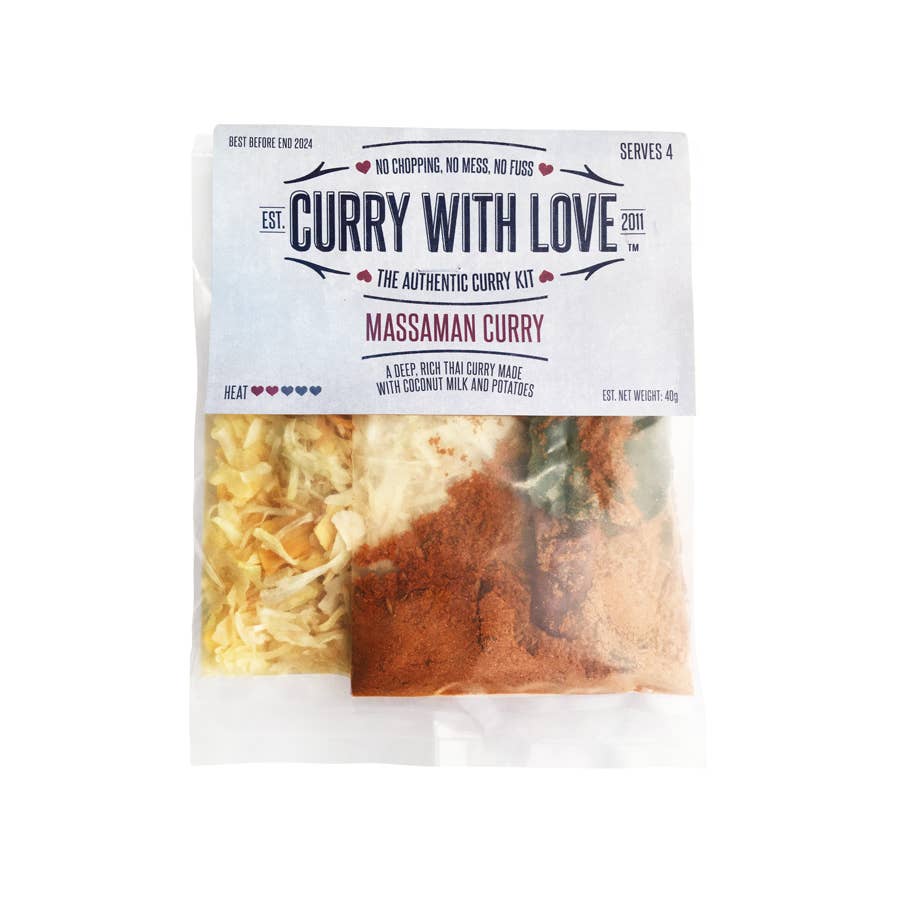 Curry with Love es una creación de madre e hija Recuerdo claramente cuando era niña, pasar horas en la cocina, cocinar con mi madre. Fue aquí donde aprendí la importancia de cocinar desde cero. No solo era saludable y sabroso, sino que fue el amor que se dedicó a hacer el plato, ¡lo que lo hizo tan especial! Así que, naturalmente, en 2011, cuando me apetecía un cambio de carrera, mi madre fue la primera persona a la que acudí en busca de inspiración, y juntas se creó «Curry with Love». ¿Por qué curry? Es sencillo... A los dos nos apasiona. Nos encantan las especias molidas que se pueden mezclar a mano para crear sabores únicos, las especias enteras que se agregan para garantizar la profundidad del sabor y lo mejor de todo. El olor de esas especias aromáticas que borbotean en la estufa es difícil de superar. Sabíamos que hacer un curry auténtico desde cero podía llevar horas y sabíamos que debía haber una forma más fácil. Así que nos pusimos a tratar de crear un kit de curry único y, después de muchas, muchas horas en la cocina de Curry with Love, ¡creo que lo logramos!