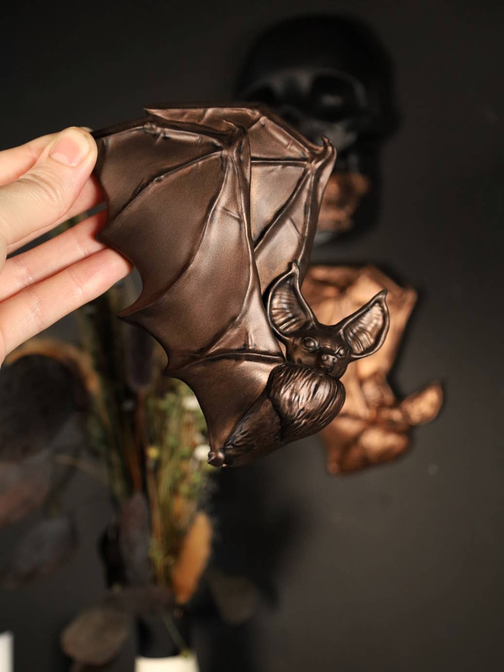 Somos un equipo de marido y mujer que ha creado artículos para el hogar inspirados en el horror y el gótico durante los últimos 5 años. Diseñamos todo nosotros mismos a través de la escultura o el diseño 3D. Luego moldeamos, fundimos y pintamos a mano nuestros colgantes de pared/ornamentos y bustos. Estos diseños incluyen nuestra interpretación de íconos del horror, convirtiéndolos en artículos que no puedes encontrar en ningún otro lugar.