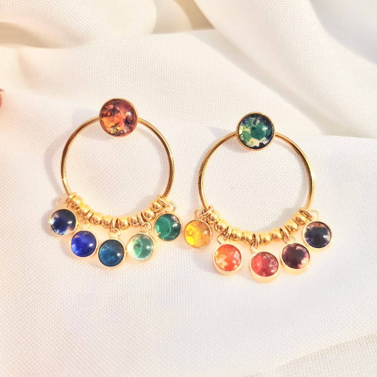 Cendres Bleues es una marca artística y familiar que ofrece joyas originales con detalles de colores inspirados en la iluminación medieval. Las piezas son personalizables con más de 30 colores a elegir, y los motivos pintados también pueden ser adaptados y personalizados bajo pedido. Las piezas están hechas a mano con hoja de oro de 24 quilates. Las monturas son de acero inoxidable o chapadas en oro.