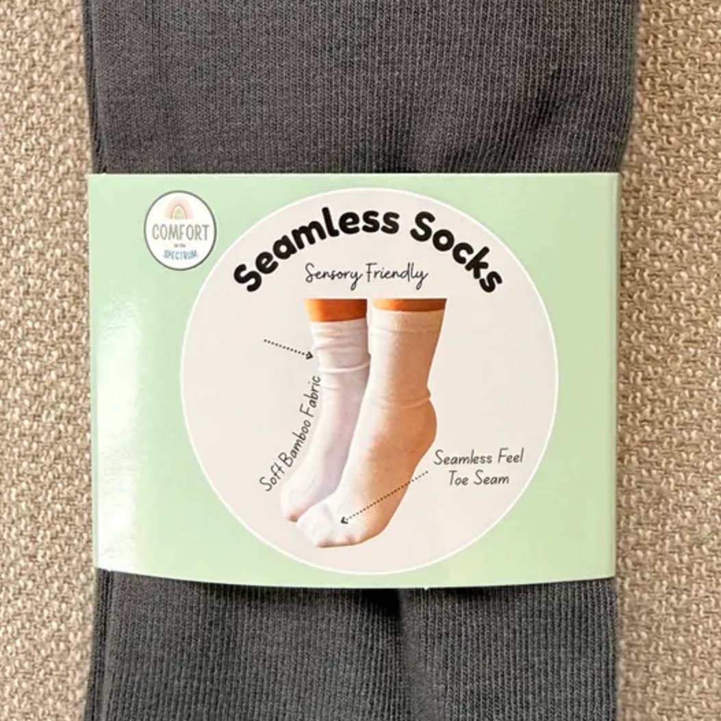 Comfort on the Spectrum nació de la misión personal de ofrecer una marca de ropa genuina y respetuosa con los sentidos para las personas que enfrentan desafíos sensoriales. Creemos que todo el mundo tiene derecho a sentirse cómodo y seguro de sí mismo, y nuestro objetivo es ofrecer productos fiables y dignos de confianza a nuestra comunidad. Nuestro enfoque se basa en una comprensión profunda de los sentidos del cuerpo. Utilizamos la tela de bambú más suave, costuras planas y eliminamos todos los elementos irritantes, como las etiquetas, los botones, las cremalleras y los gráficos de plástico. Esto hace que nuestra línea de productos sea adecuada para todos, incluidas las personas con autismo, trastornos del procesamiento sensorial, TDAH o piel sensible. Nuestra marca apuesta por la inclusividad, y nos esforzamos por hacer que vestirnos sea una experiencia cómoda y agradable a la vez que nos veamos fabulosos. Impulsados por los comentarios de los clientes, desarrollamos nuestros calcetines sensoriales Soothe Step para satisfacer una necesidad específica de nuestra comunidad.