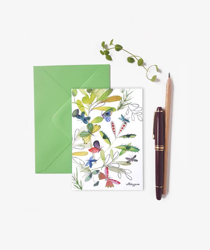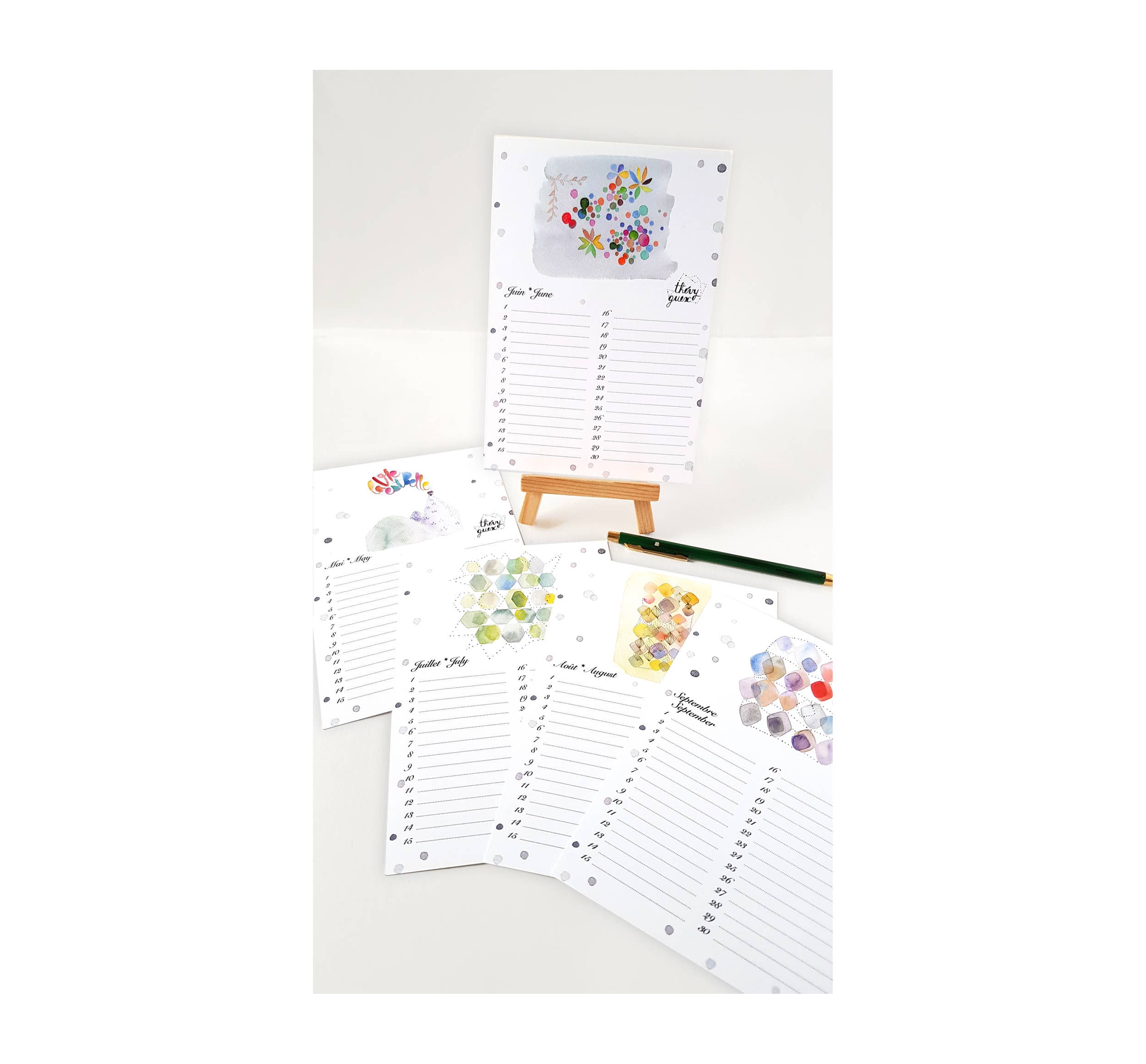 Thévy Guex es una artista e ilustradora parisina. Desarrolla colecciones inspiradas en la botánica y la geometría. Su universo artístico se basa en una reinterpretación de la naturaleza y los detalles arquitectónicos con un espíritu colorido y poético. Thévy ofrece creaciones de objetos ilustrados derivados de sus ilustraciones originales. También crea joyas a partir de elementos antiguos reciclados o piedras naturales. Los modelos están diseñados y fabricados a mano, en su taller parisino, en Francia o en Italia. Preocupado por la protección del planeta y fanático del reciclaje, utiliza materias primas respetuosas con el medio ambiente en la medida de lo posible para hacer sus creaciones: papel etiquetado como FSC (Forest Stewardship Council) o PEFC (Programa para el Reconocimiento de Certificaciones Forestales) para la fabricación y valoración responsable del papel elementos vintage moteados y reciclados en una perspectiva de cero residuos (perla, purpurina, cuero...).