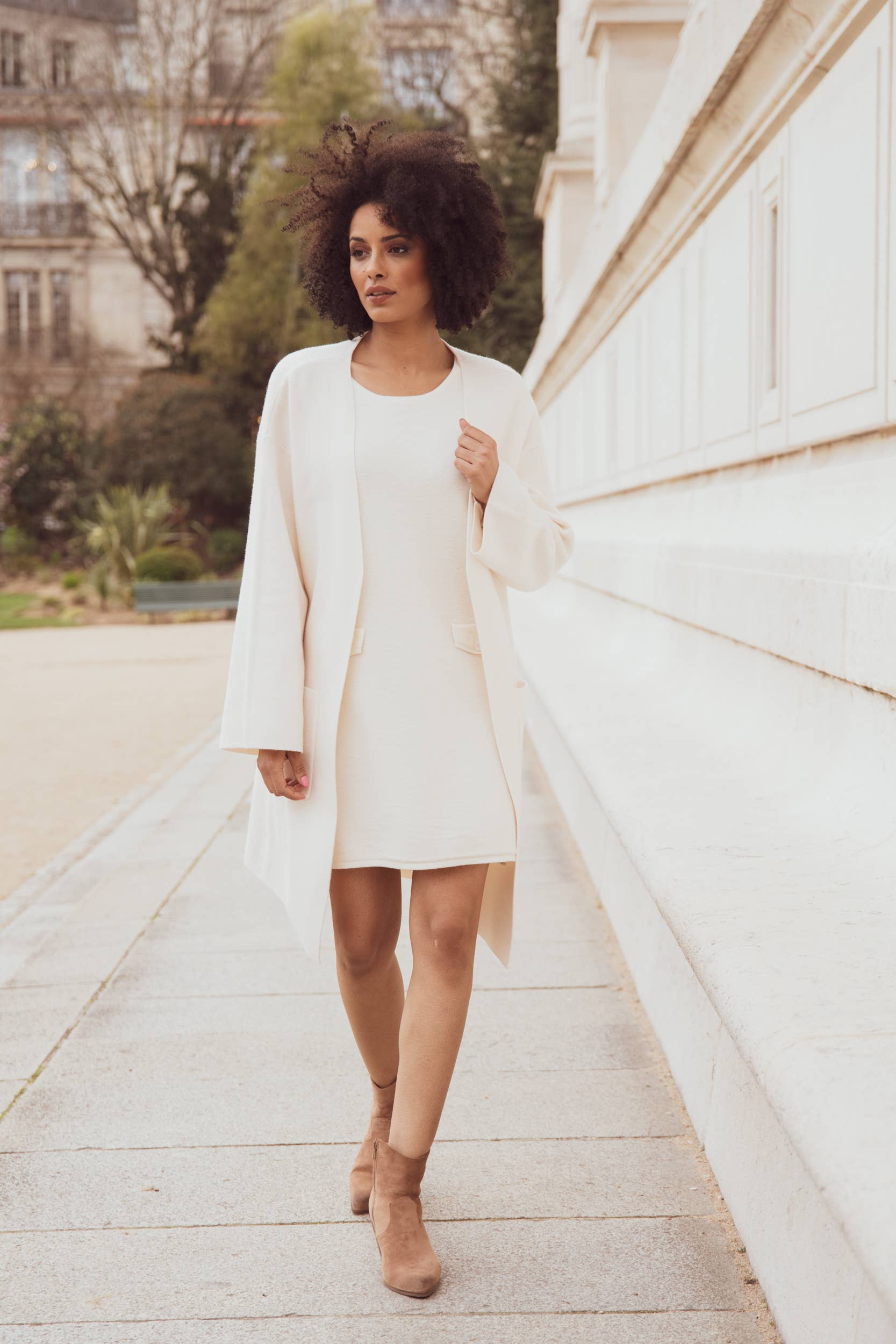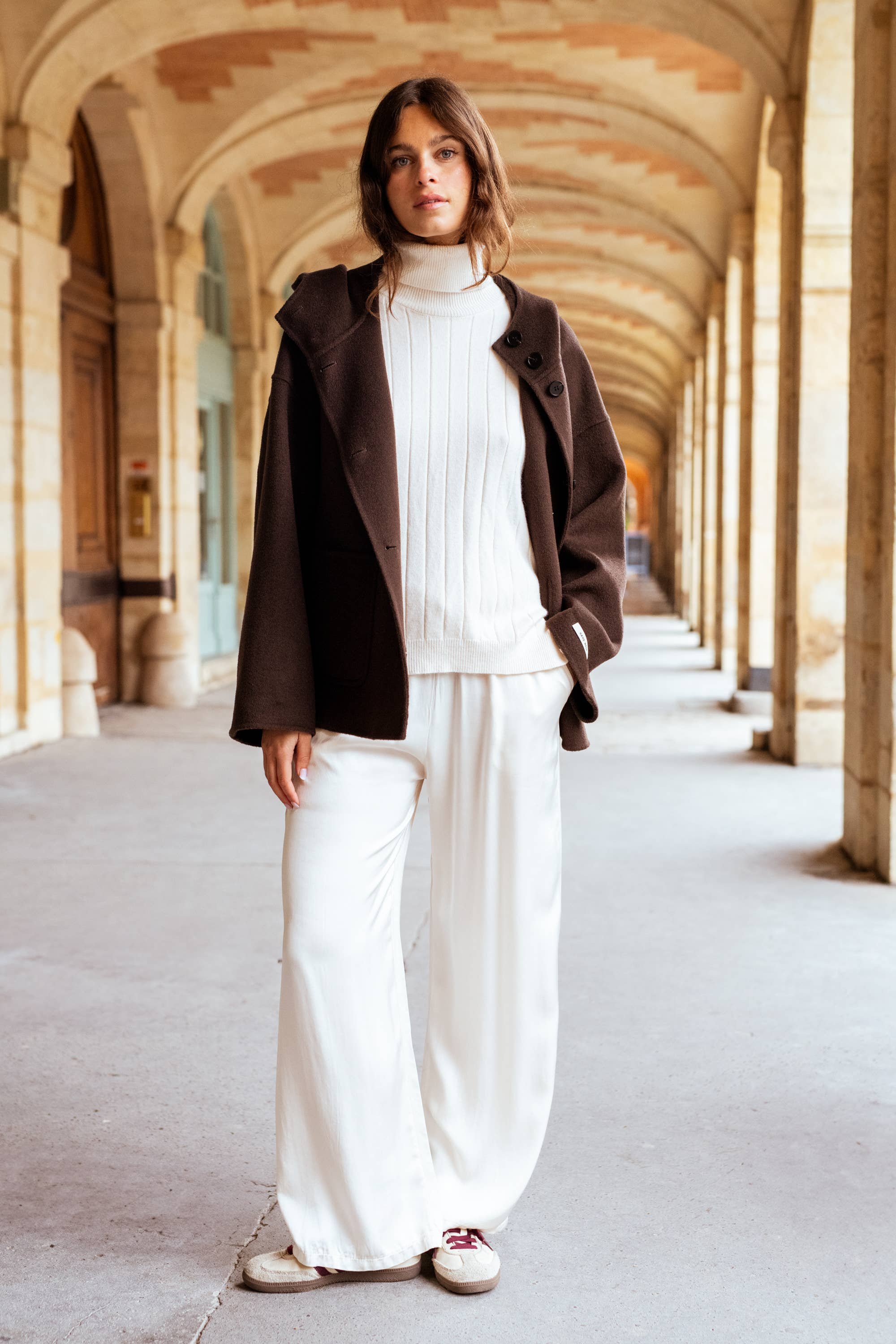 Sunny Studio es una casa francesa, especializada en la confección de abrigos hechos a mano y tejidos excepcionales. Pensadas con cuidado, nuestras piezas combinan saber hacer y diseño depurado para acompañar a las mujeres en su día a día con gracia y confianza. Nuestro vestuario se ancla en una estética minimalista, urbana y elegante. Cada creación se inscribe en una paleta de tonos neutros y refinados, diseñada para durar y atravesar las estaciones sin nunca pasar de moda. Aquí, no hay dictados de la moda: solo piezas atemporales que realzan a las mujeres, día tras día. Desde nuestros inicios, ponemos todo nuestro corazón, nuestra exigencia y nuestra pasión en cada colección. Creemos en una moda más personal, más verdadera. Una moda que revela la esencia de cada mujer en lugar de disfrazarla. Sunny Studio es una invitación a sentirse fuerte, libre y bella sin artificios. Es el deseo profundo de hacer nacer la emoción a través del tacto de una malla perfecta, el corte de un abrigo justo, la suavidad de una prenda en la que uno se siente uno mismo. Ofrecer a cada mujer la posibilidad de brillar, con confianza y serenidad.