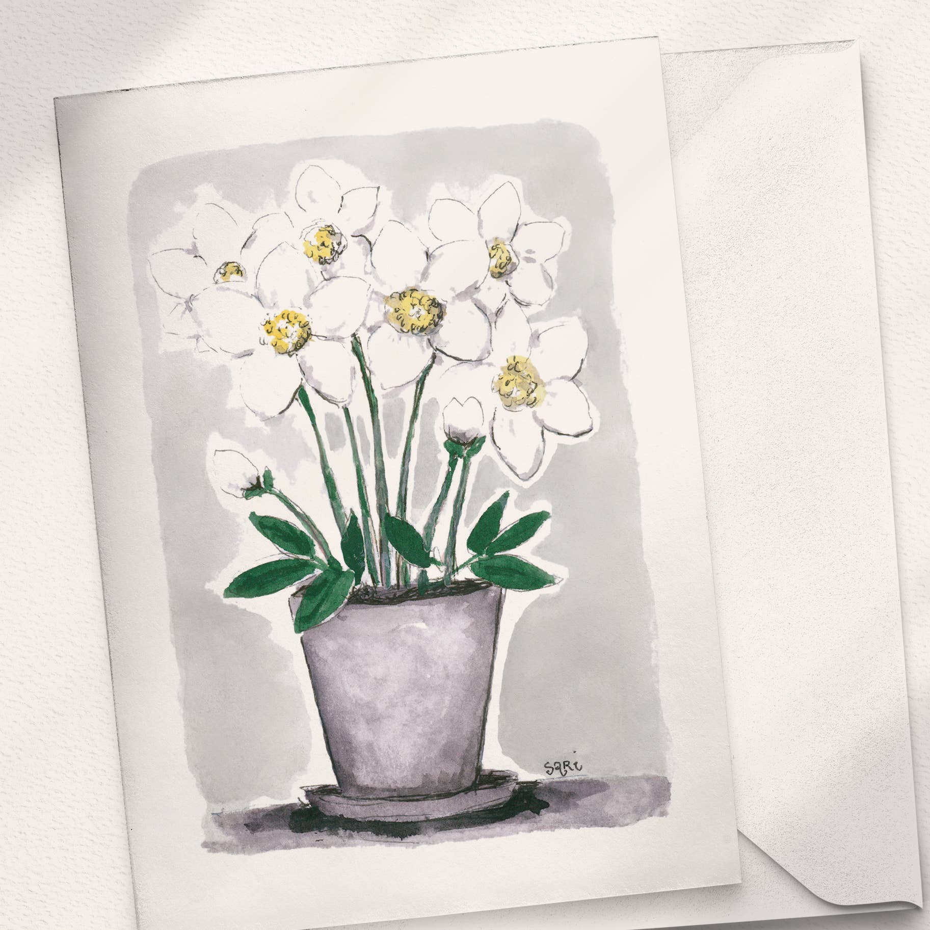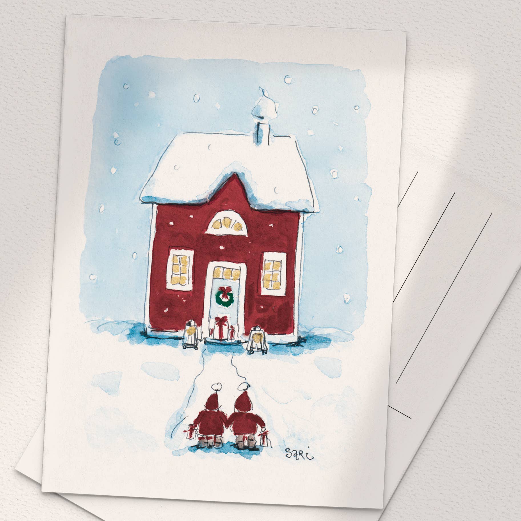 Sari es una artista finlandesa, estudió arte en la escuela de arte local de Pori y se graduó en 1995. Luego se trasladó al Círculo Polar Ártico y fundó su negocio allí en Rovaniemi en 1998, pero hoy en día vive en su lugar natal Ulvila. Desde el inicio de su negocio hace más de 20 años ha pintado cientos, si no miles de acuarelas, con las que desea traer felicidad y alegría a la gente. Hay muchos tipos diferentes de diseños y tamaños de tarjetas para elegir, para todo tipo de momentos de la vida, como el nacimiento de un niño, la boda y la graduación. Todo el tiempo tiene nuevas ideas apareciendo en su cabeza para llevar un poco de arte a la vida cotidiana.
