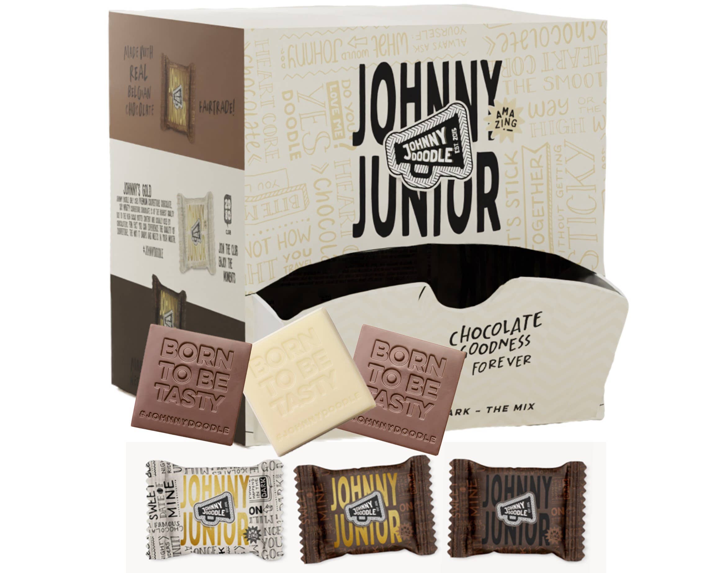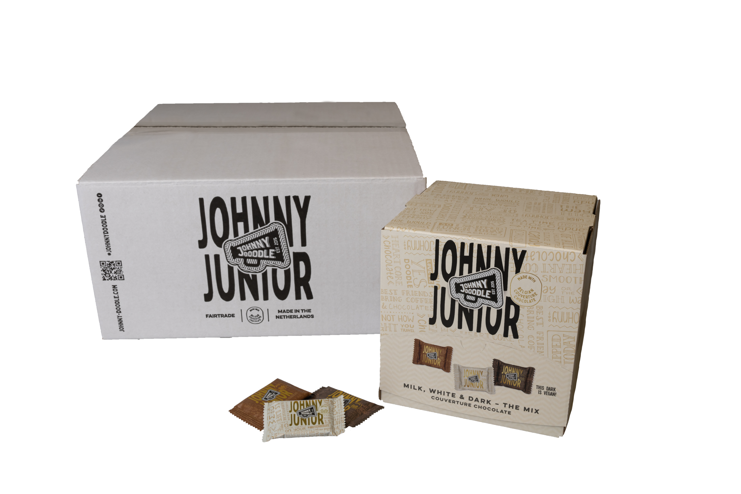 Solo atrévete. Hazlo. Abordar. Llámalo típicamente holandés, llámalo testarudo. Lo llamamos Johnny Doodle. Emprendimiento e innovación culinaria en un solo paquete. Johnny es un gran trabajador, no un denunciante, ad rem, autocrítico y extasiado. Hecho a sí mismo, crudo, honesto y directo. Lo que ves es lo que obtienes. Johnny Doodle no solo quiere decir que hace las cosas de forma diferente, sino que también quiere mostrarlo. Compartiendo su pasión por la comida, los sabores y la máxima calidad de la manera que más le convenga. Al decirnos de dónde viene Johnny Doodle y dónde se encuentra ahora. La prueba de que puedes crecer siendo tú mismo. Que puedes hacer realidad tu sueño haciendo todo lo posible. Sin concesiones. Siempre anteponiendo el sabor y la calidad. Porque lo que Johnny hace es «hacer un chocolate buenísimo». Johnny no es solo el nombre de nuestra marca, también es el nombre de nuestro fundador. Un hombre de carne y hueso que compró una fábrica de chocolate en Rotterdam en 2015. Simplemente por su amor y pasión por la buena comida. ¡Aquí empezó la aventura! Su visión: el chocolate podría ser mejor y más sabroso. Johnny Doodle es propiedad de VS Food, una verdadera empresa familiar de Rotterdam.
