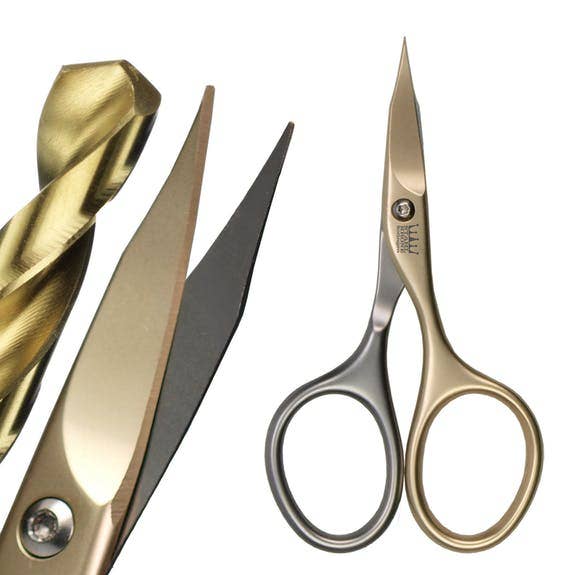 Tijeras autoafilables y resistentes al desgaste de Solingen: ¡una primicia mundial! Desde la creación de las tijeras, ¡el nuevo desarrollo más exclusivo de STAHLKRONE! El recubrimiento de nitruro de titanio coloreado de alta resistencia de la mitad de las tijeras crea un efecto de autoafilado, ya que la superficie de la mitad recubierta de las tijeras es aproximadamente dos veces más dura que la de la mitad sin recubrimiento de las tijeras. Como resultado, la mitad más dura es mucho más resistente al desgaste y vuelve a elevar la rebaba de corte de la otra mitad más blanda con cada apertura/cierre (diseño protegido). Este tipo de recubrimiento, que se utiliza principalmente en la industria de herramientas, extiende la retención del borde de sus tijeras de uñas de corona de acero varias veces más que la de las tijeras de manicura comunes. El nuevo tipo de conexión por tornillo también contribuye a esta longevidad.