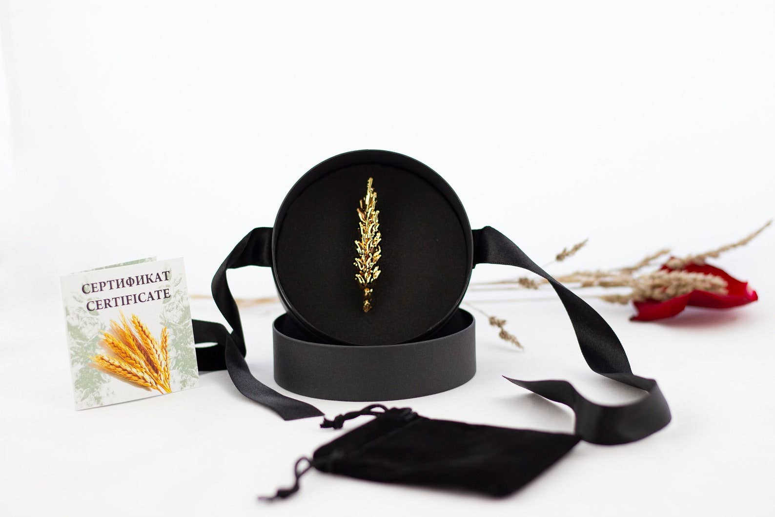 La Madre Naturaleza ha creado esta flor... tan única como tú... Hemos envuelto cuidadosamente su tierna majestuosidad en oro de 24 quilates con nuestra tecnología. Cada producto de La Magia de la Rosa Búlgara es único. La rosa es una de las plantas más antiguas de la tierra, honor y amor que han sobrevivido a través de los siglos. Cultivada por primera vez en Asia Central, la patria de los antiguos búlgaros, hoy la "reina de las flores" sigue asombrando con su elegancia, fragancia y beneficios para la salud. Cantada como un regalo de Dios, las rosas decoraban las cámaras reales o las bellezas amadas. Incluso existía una antigua ley aria que decía que cualquiera que llevara una rosa al gobernante de un país, podía pedirle cualquier cosa.