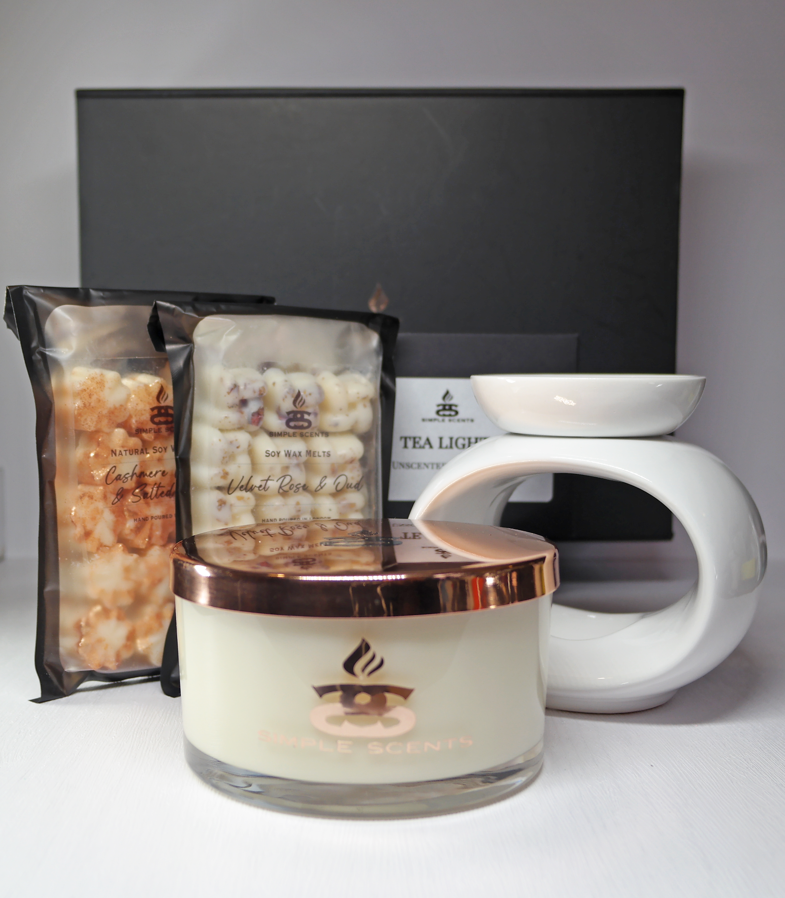 Simple Scents de Simpleness Collection es una marca de fragancias para el hogar y velas de soja de lujo fabricada en el Reino Unido que ofrece productos perfumados hechos a mano contemporáneos pero elegantes, que incluyen difusores, cera para derretir y accesorios para derretir cera. Establecido a partir de una base de terapias holísticas y un interés verificado en fragancias y perfumes finos; cada elemento de la gama de productos Simple Scents ha sido cuidadosamente seleccionado y diseñado para elevar la estética de sus ubicaciones de colocación y promover un viaje sensorial aromático para el usuario. El envase atrevido, sofisticado y elegante complementa el espíritu detrás de la marca, garantizando una experiencia de regalo de lujo sin importar el destinatario.
