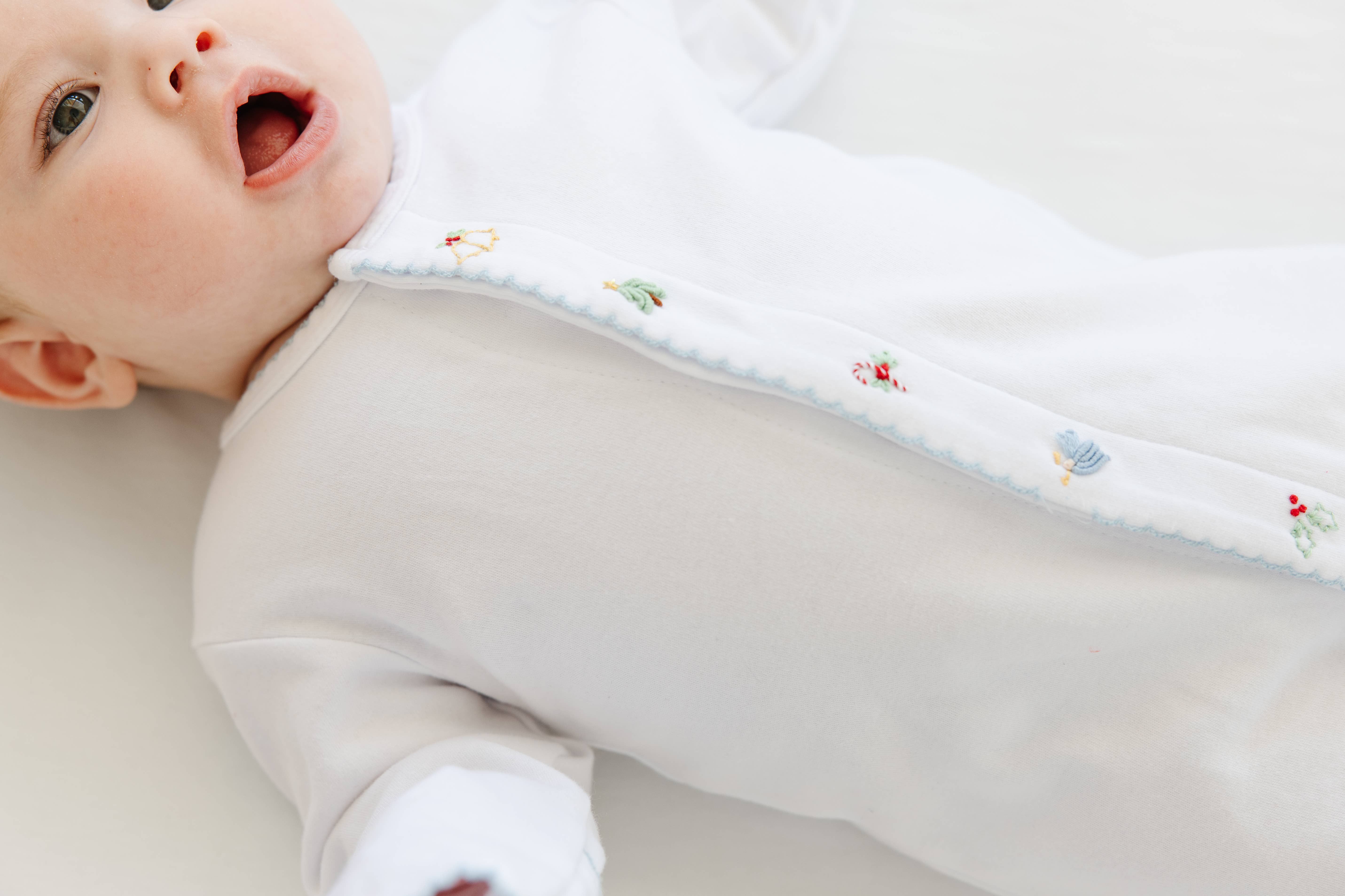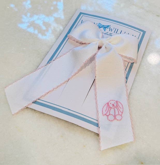 Dos hermanas haciendo lazos bordados a mano.