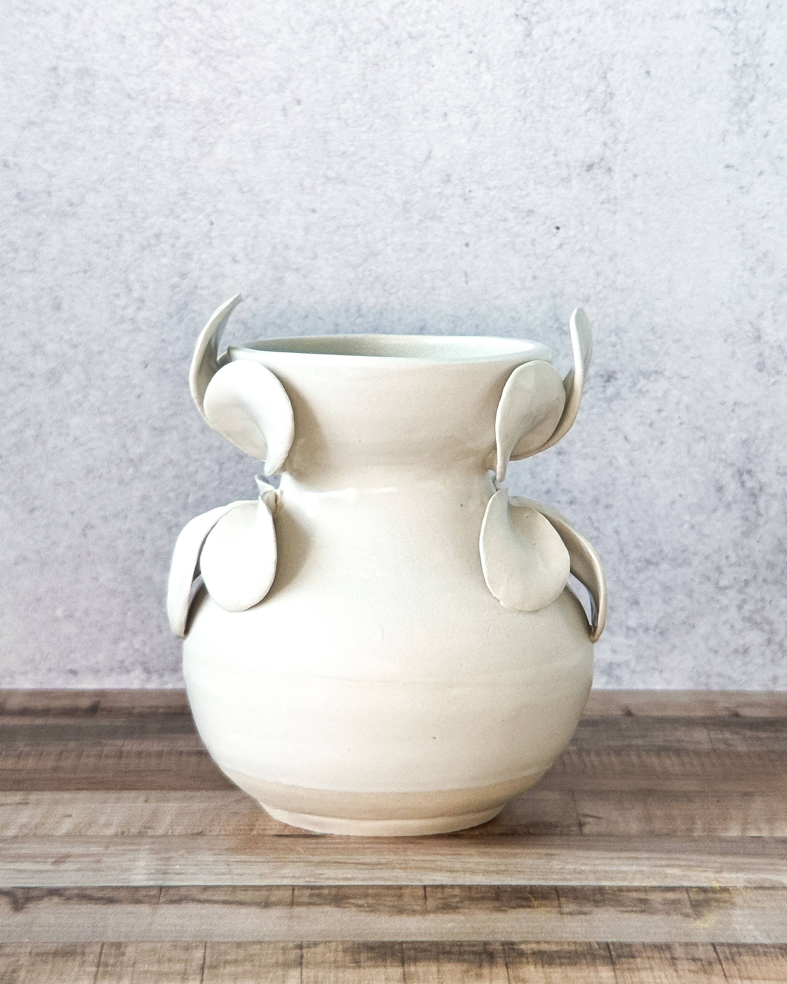 En 2020, Erin se retiró de la industria de la moda y comenzó su camino en la cerámica. Inspirada por el estilo de vida relajado de la costa de California y sus viajes por el mundo, crea piezas de cerámica únicas mediante técnicas de torno y modelado a mano en su estudio en casa. Su colección incluye cuencos, jarrones, platos y jarras formados a mano, con algunas piezas que presentan flores hechas a mano, pétalos, diseños pintados a mano y patrones tallados. Estos detalles añaden un toque único a cada artículo, logrando un equilibrio entre individualidad y simplicidad.