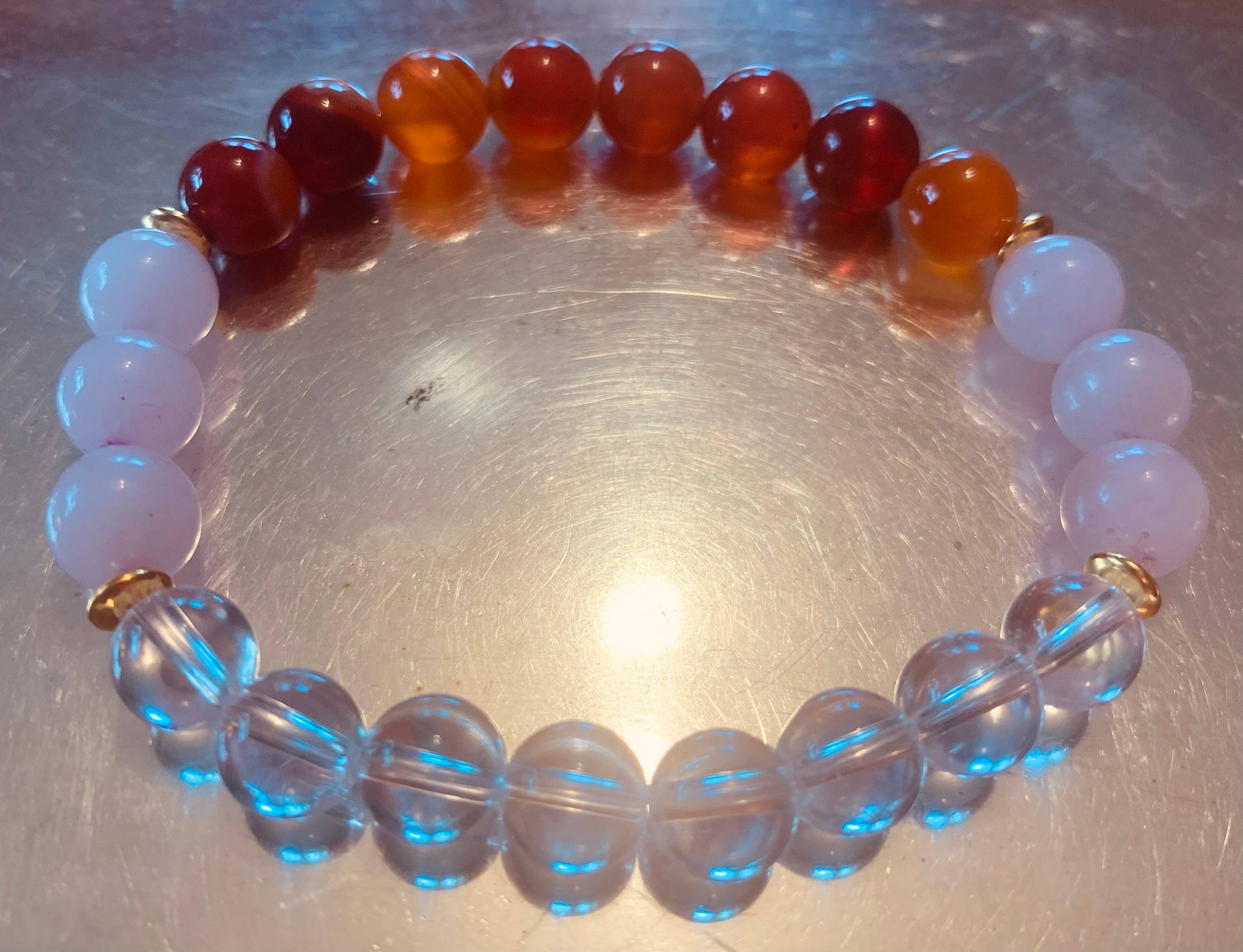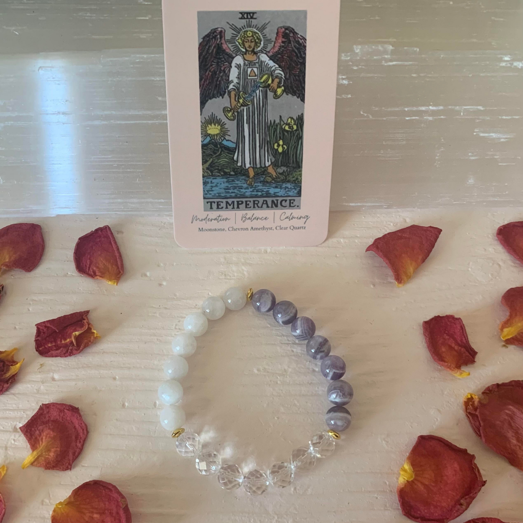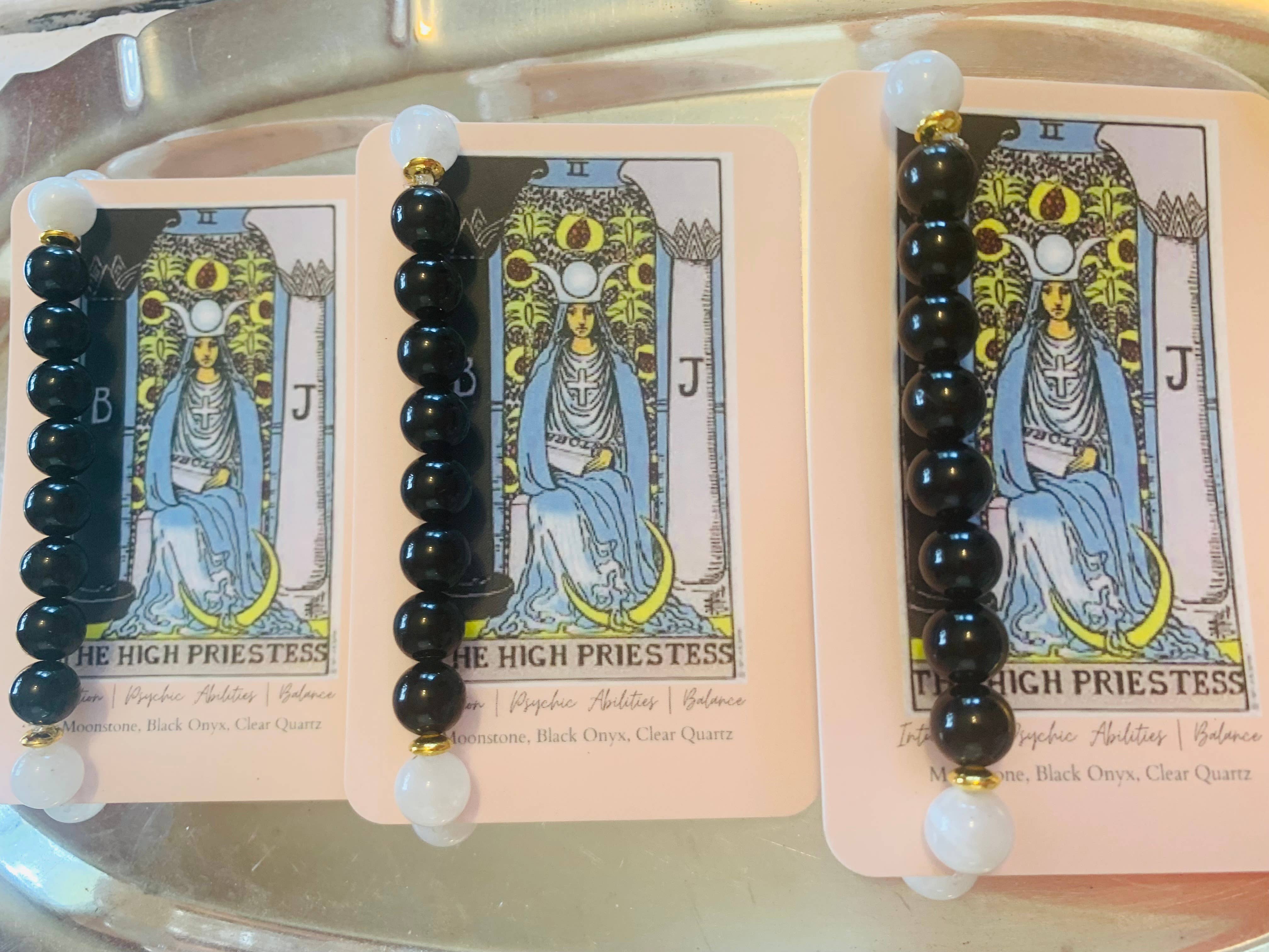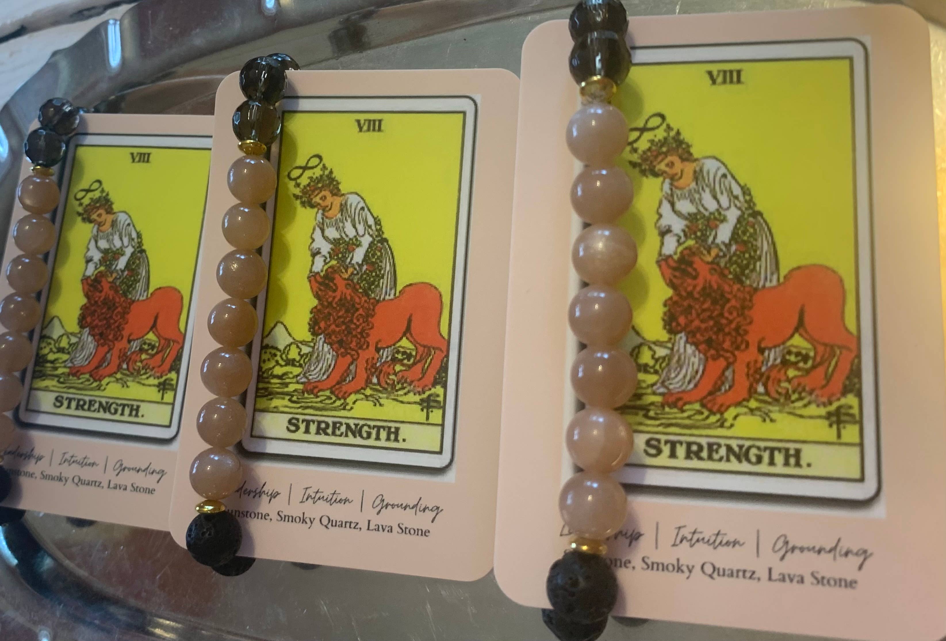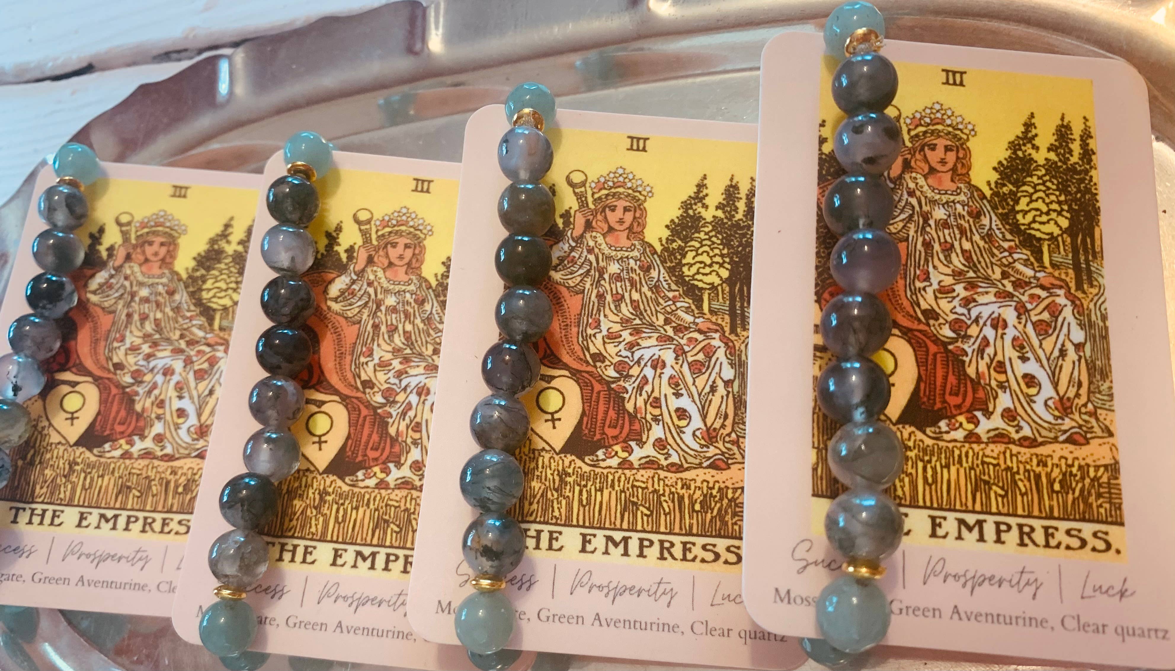 Raizel Liebowitz se especializa en brazaletes de gemas. Cada pulsera está hecha a mano, diseñada intencionalmente y limpiada energéticamente con paquetes de hierbas y selenita.
