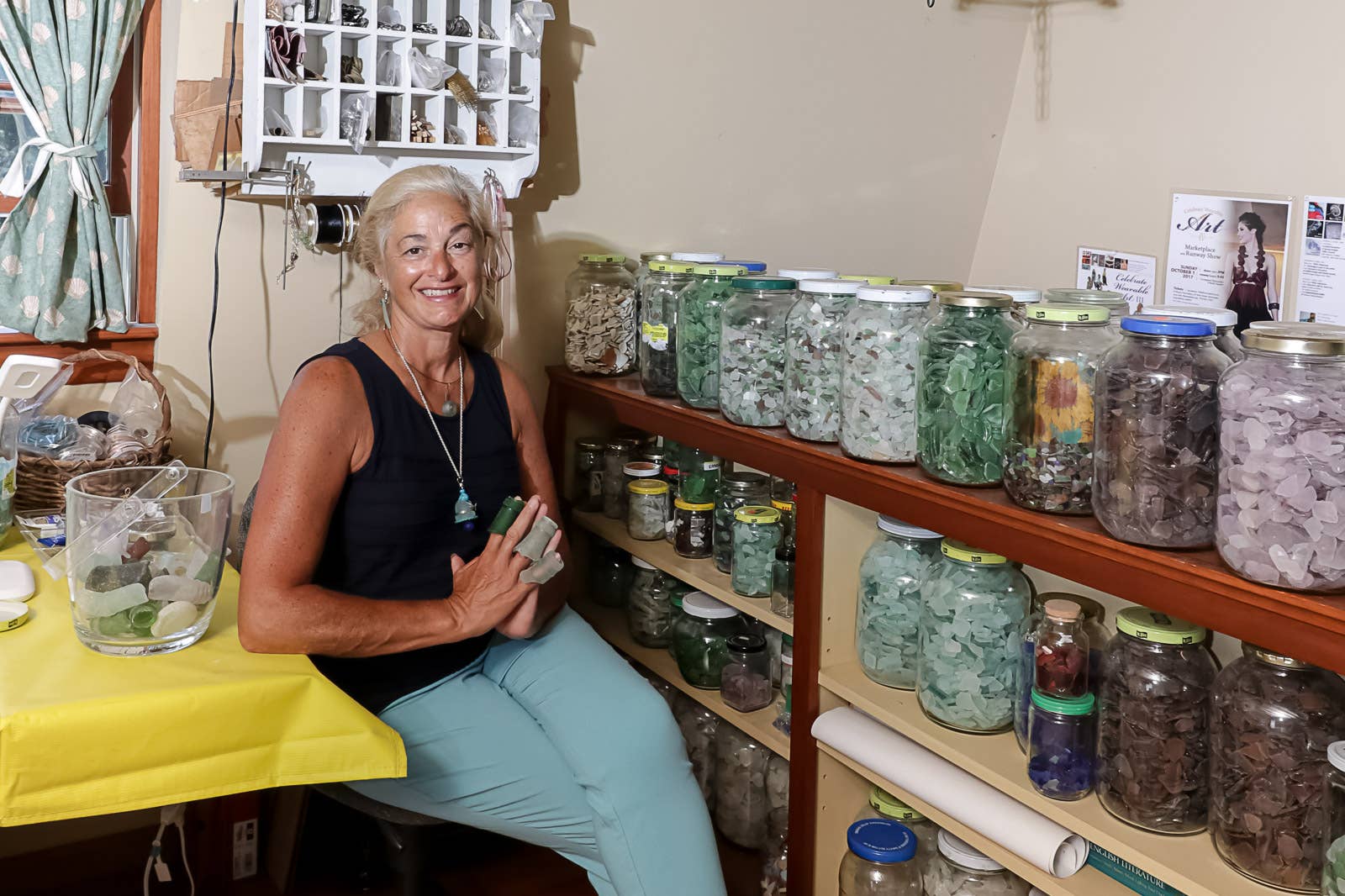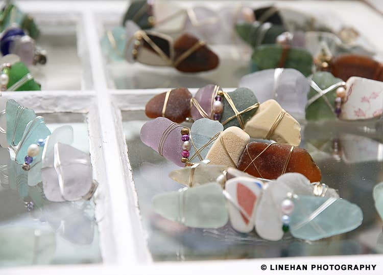 Jacqueline se aventuró en el mundo del arte portátil en 2003 y exhibió su obra por primera vez en el Sea Glass Festival de octubre de 2004, que se inició en Rockport, Massachusetts. Inspirada por su esposo Michael y su pasión mutua por la historia y el coleccionismo de vidrio antiguo, decidió combinar sus habilidades empresariales y creativas. Al darse cuenta de que los accesorios para el cabello de alta calidad y diseñados a medida quedaban vacíos, comenzó a juntar piezas de vidrio marino y cerámica encontradas a lo largo de las costas de Cape Ann. Desde entonces, ha creado una colección completa de accesorios para el cabello y joyas.